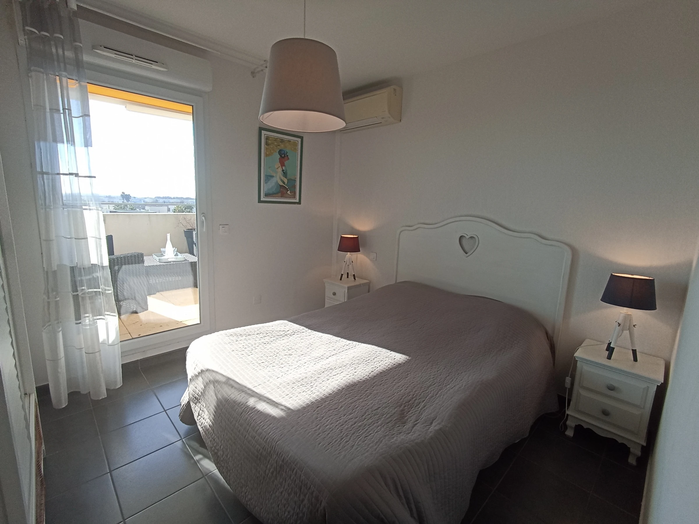 Alquiler vacacional en Sète: En una residencia de lujo con piscina (abierta del 15 de junio al 15 de septiembre), cerca de los comercios y de la playa, distrito de Villeroy, magnífico apartamento de 4 habitaciones, en el último piso con ascensor orientado al Este / Sur y Oeste. Este confortable apartamento dispone de una terraza muy grande de 69m², con una preciosa vista abierta, vista al mar y vista a la cuenca de Thau. En el salón tendrás un sofá, TV, trastero, acceso a internet. Una cocina abierta al salón (placa de inducción, frigorífico-congelador, microondas, horno, lavavajillas), una suite principal con su baño (ducha y lavabo), una cama de 160 cm y trastero, el segundo dormitorio tiene una cama de 140 cm y trastero, el tercer dormitorio: 2 camas de 90 cm, trastero y escritorio. Un baño (bañera, lavabo doble) separado del inodoro (con lavadora). Apartamento totalmente climatizado con plaza de aparcamiento privada protegida por puerta automática. Apartamento 3* para 6 personas. No se admiten mascotas. Posibilidad de llegada tardía: 50€ (contáctanos para más detalles)