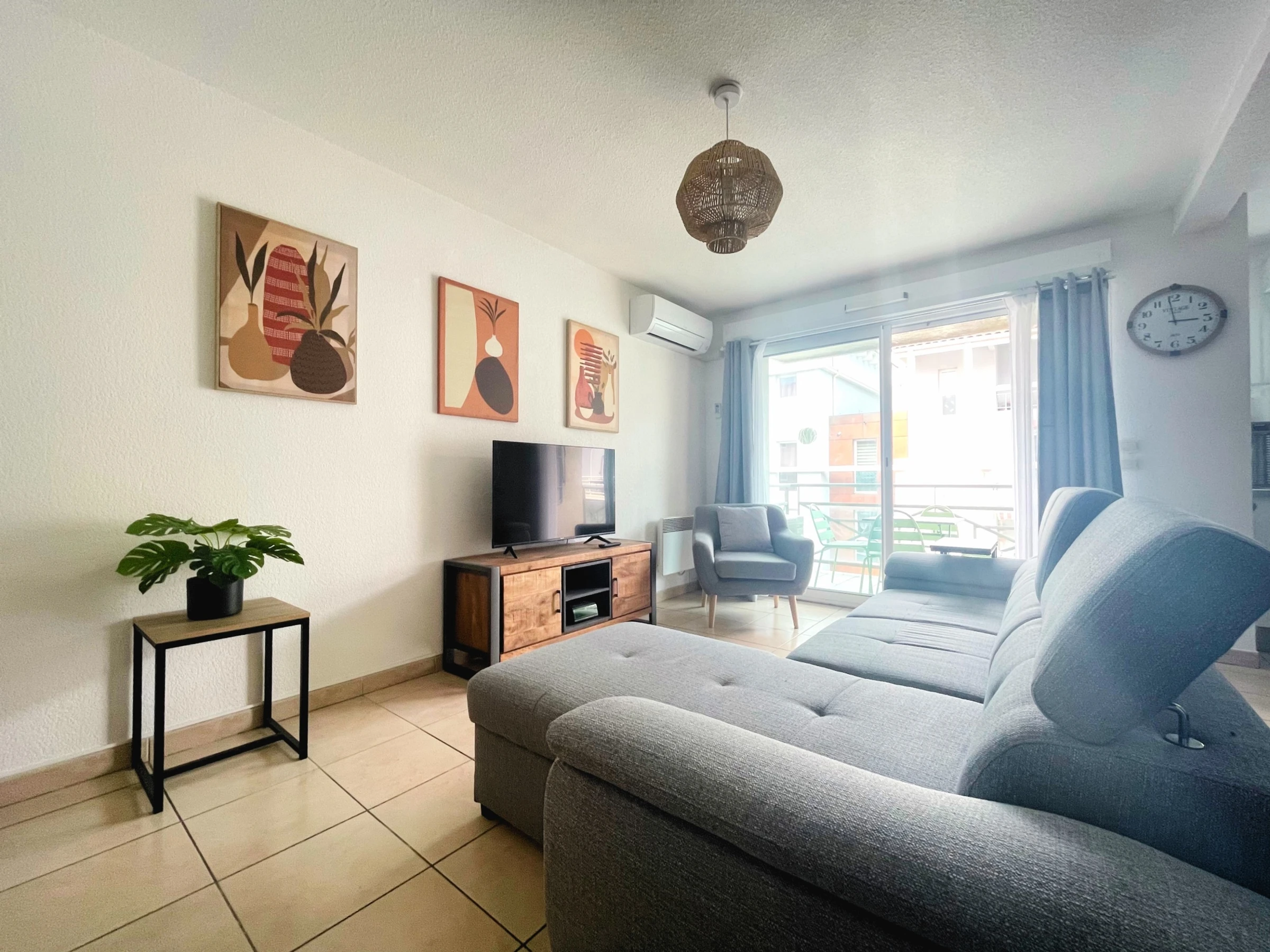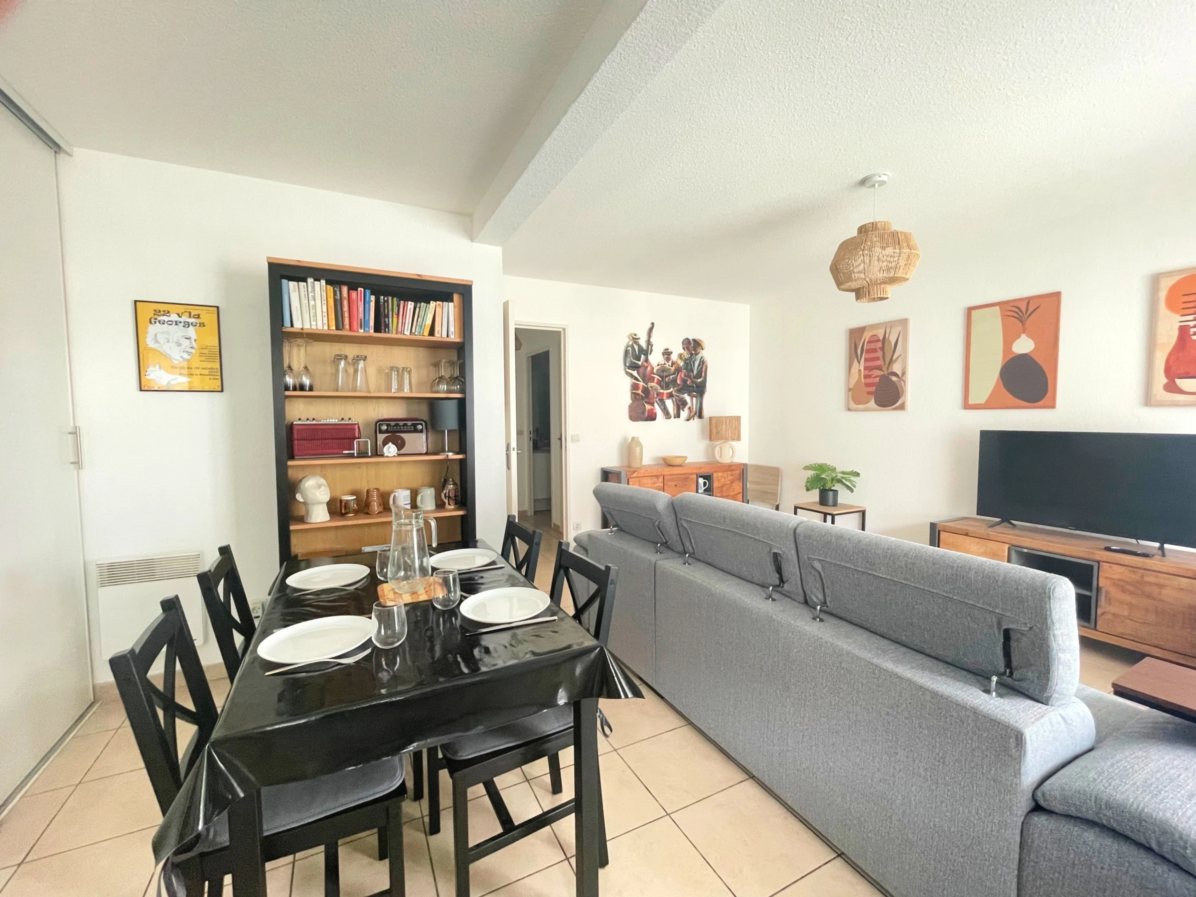 Apartamento vacacional en Sète: Encantador apartamento de un dormitorio de 40 m² con una logia de 5 m², situado en la cuarta planta (con ascensor). Este moderno apartamento ofrece todas las comodidades. El centro de la ciudad se encuentra a 900 m a pie. El salón cuenta con sofá, televisión, mesa y una cocina americana equipada con vitrocerámica, frigorífico-congelador, microondas, lavadora y lavavajillas. El dormitorio dispone de cama de matrimonio (140 cm), armario y televisión. El baño (bañera, lavabo) está separado del aseo. El apartamento tiene aire acondicionado. Hay una plaza de aparcamiento disponible en el garaje subterráneo número 58. Categoría 2 estrellas para 2 personas. No se admiten mascotas. Posibilidad de llegada tardía por 50 € (consúltenos para más detalles).