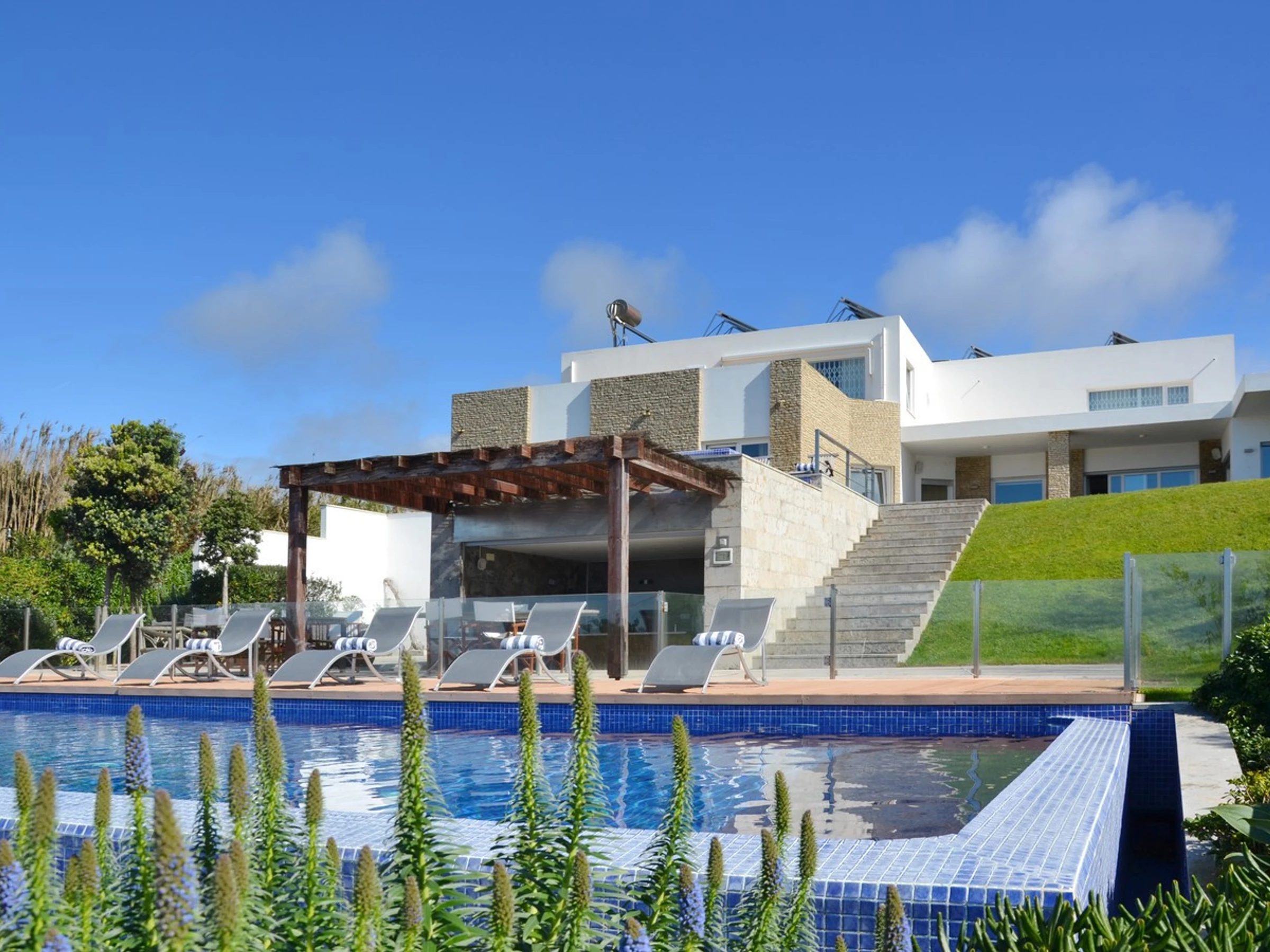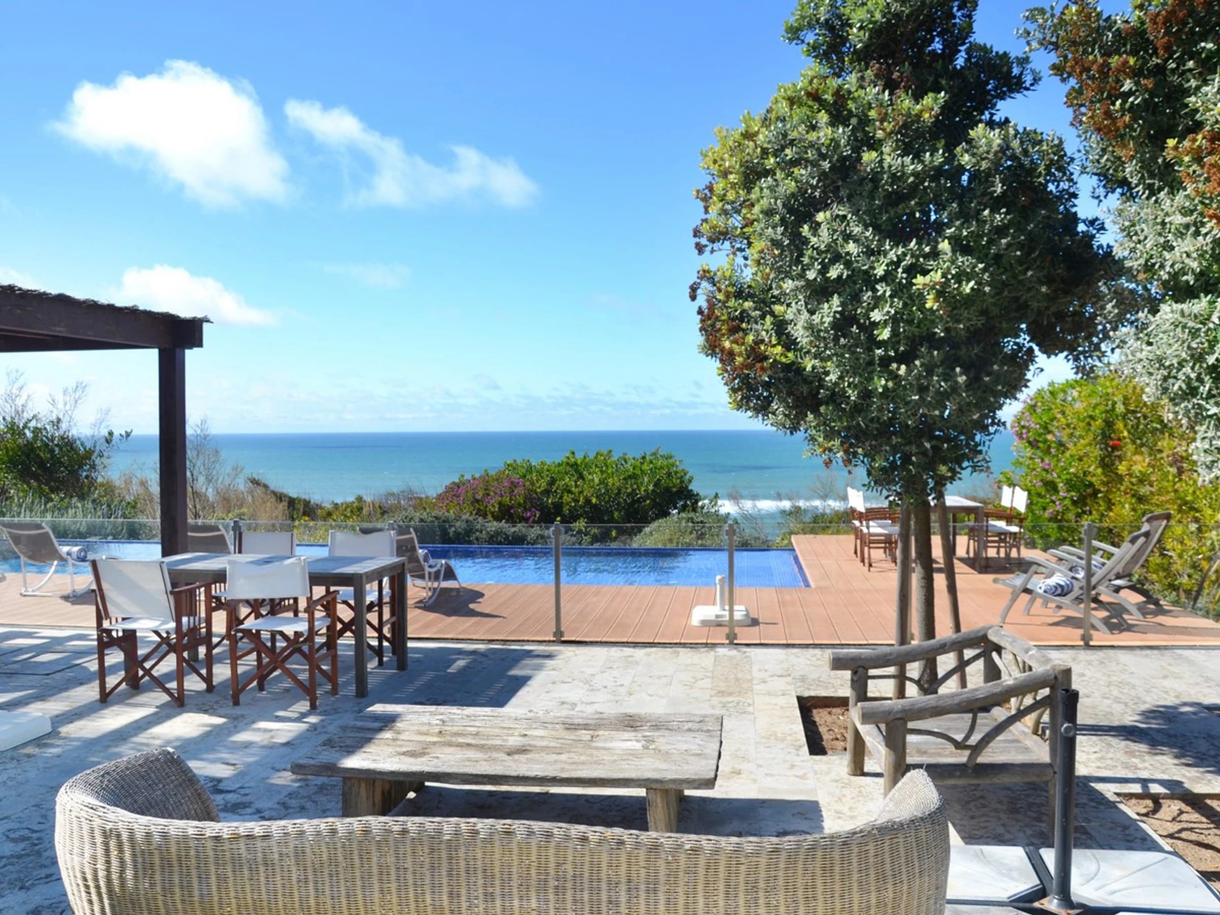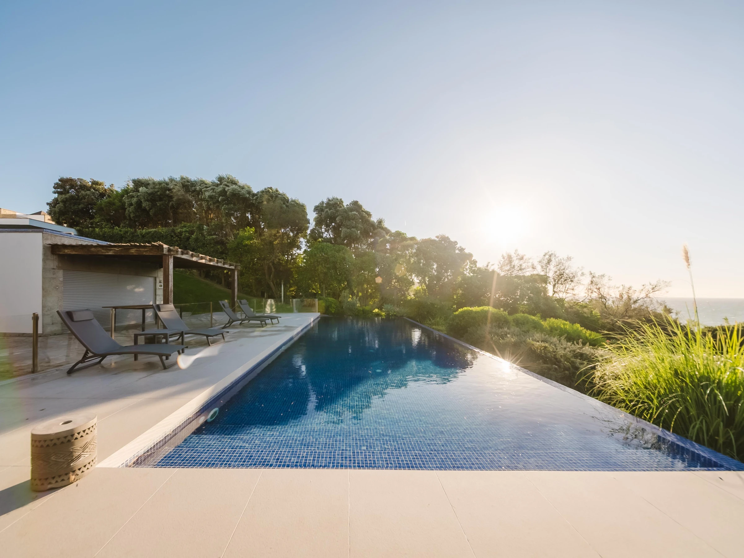 Con dos piscinas y terrazas en desnivel, goza de una vista privilegiada del mar y permite contemplar la puesta de sol sobre las aguas turquesas del Atlántico.