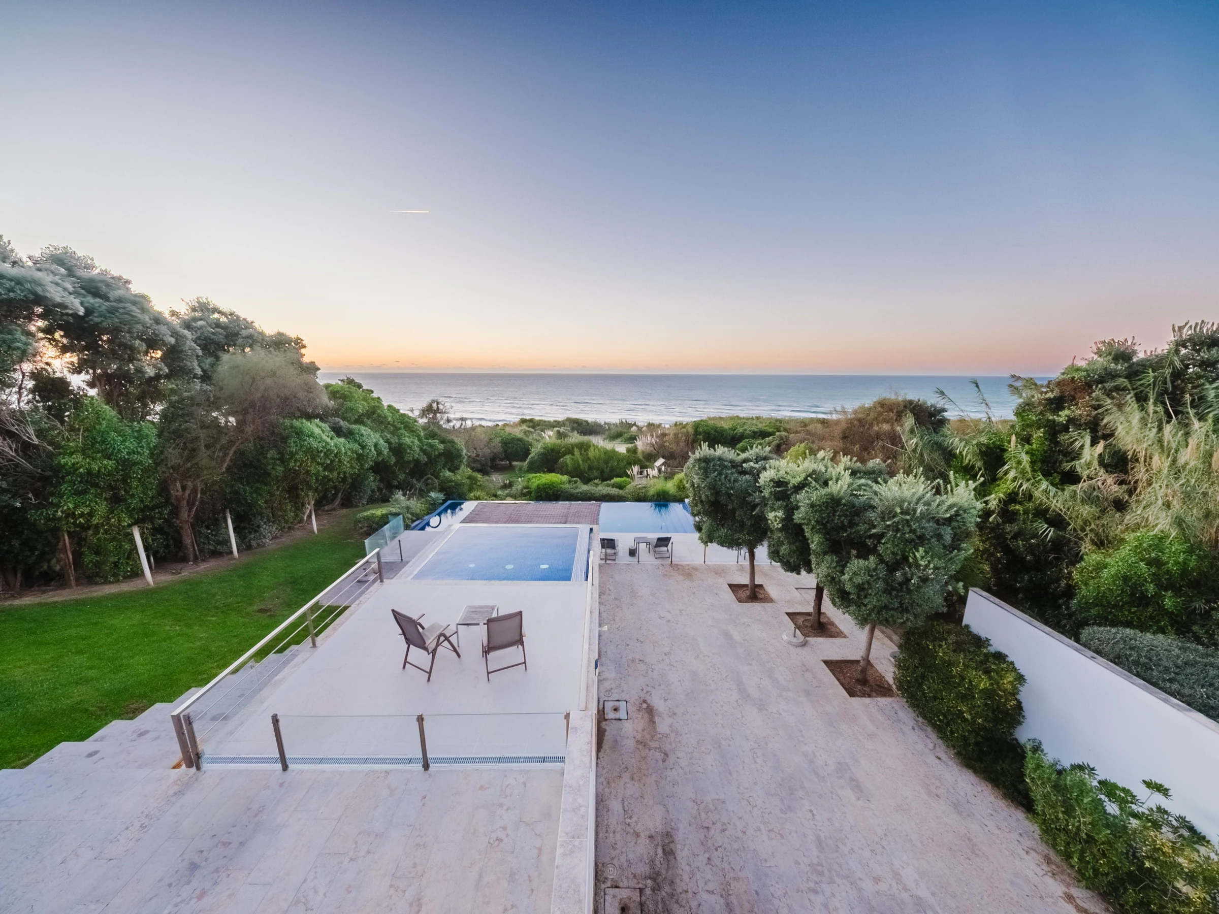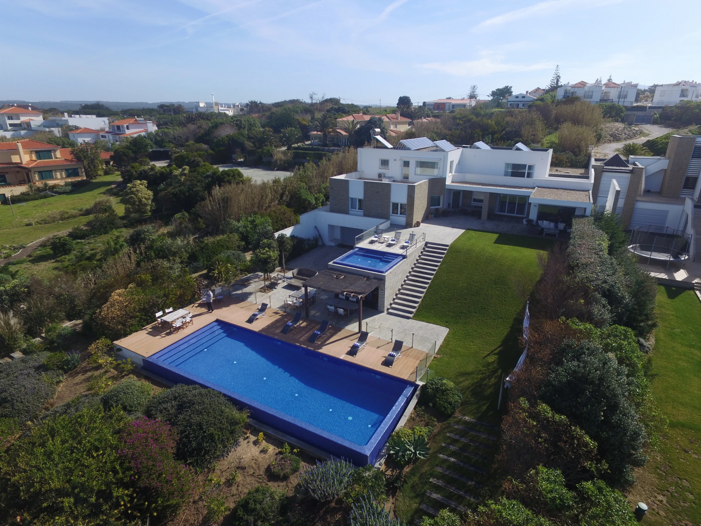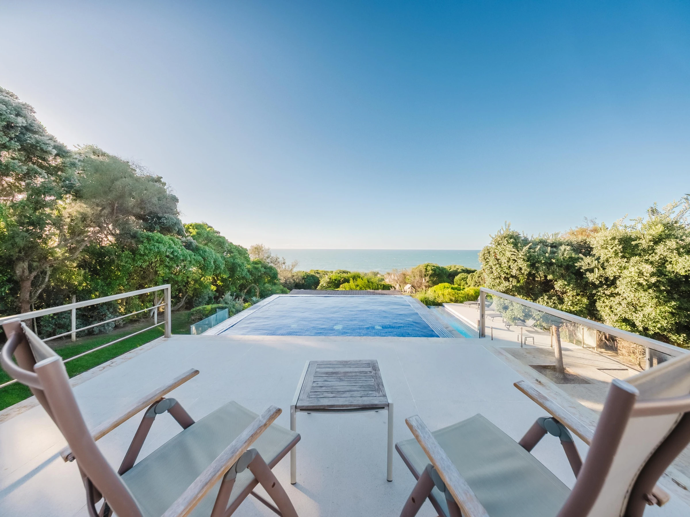 Con dos piscinas y terrazas en desnivel, goza de una vista privilegiada del mar y permite contemplar la puesta de sol sobre las aguas turquesas del Atlántico.