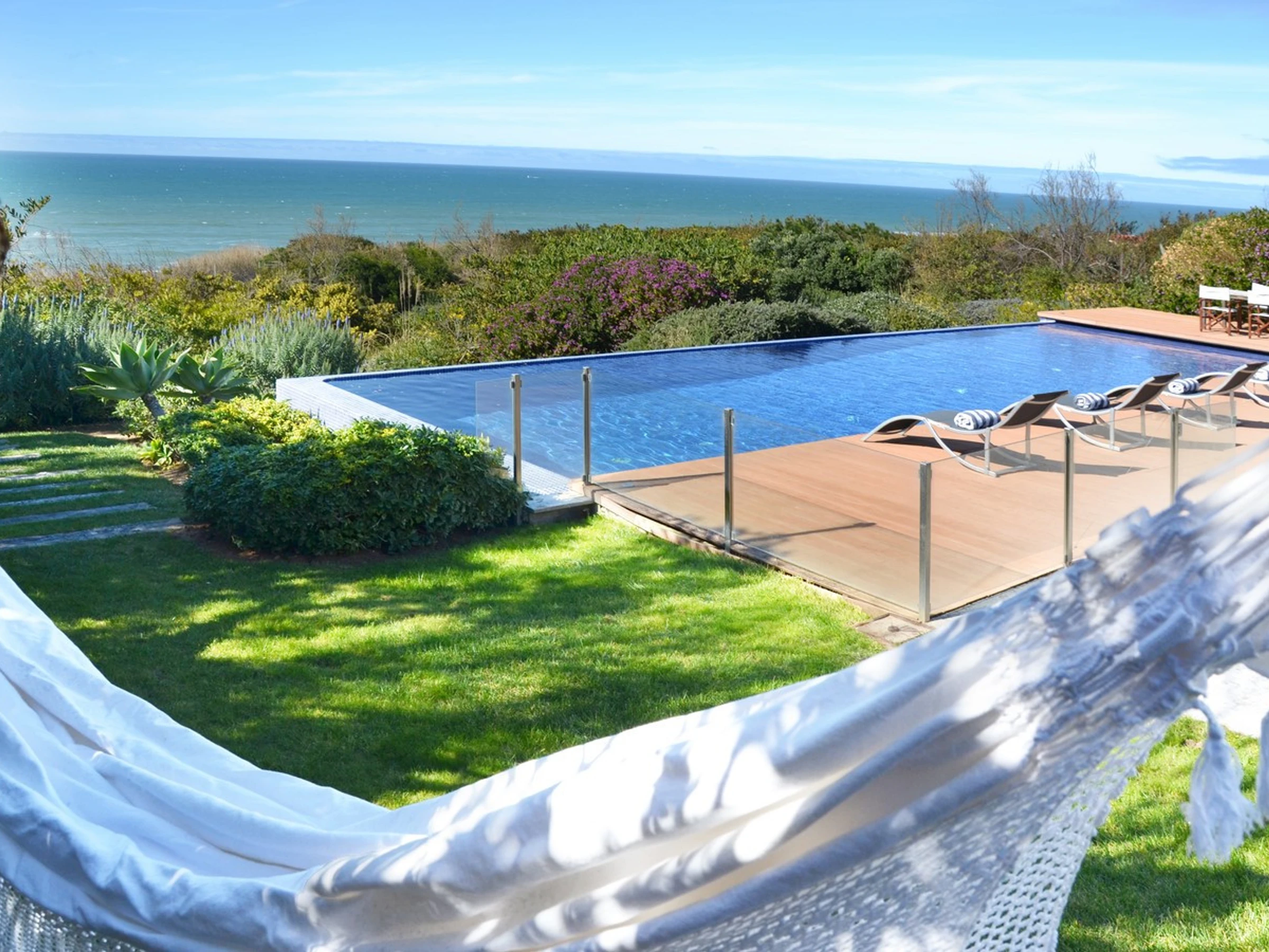 Hay espacios para sentarse, columpiarse y relajarse mientras se disfruta de la brisa y la banda sonora del mar.