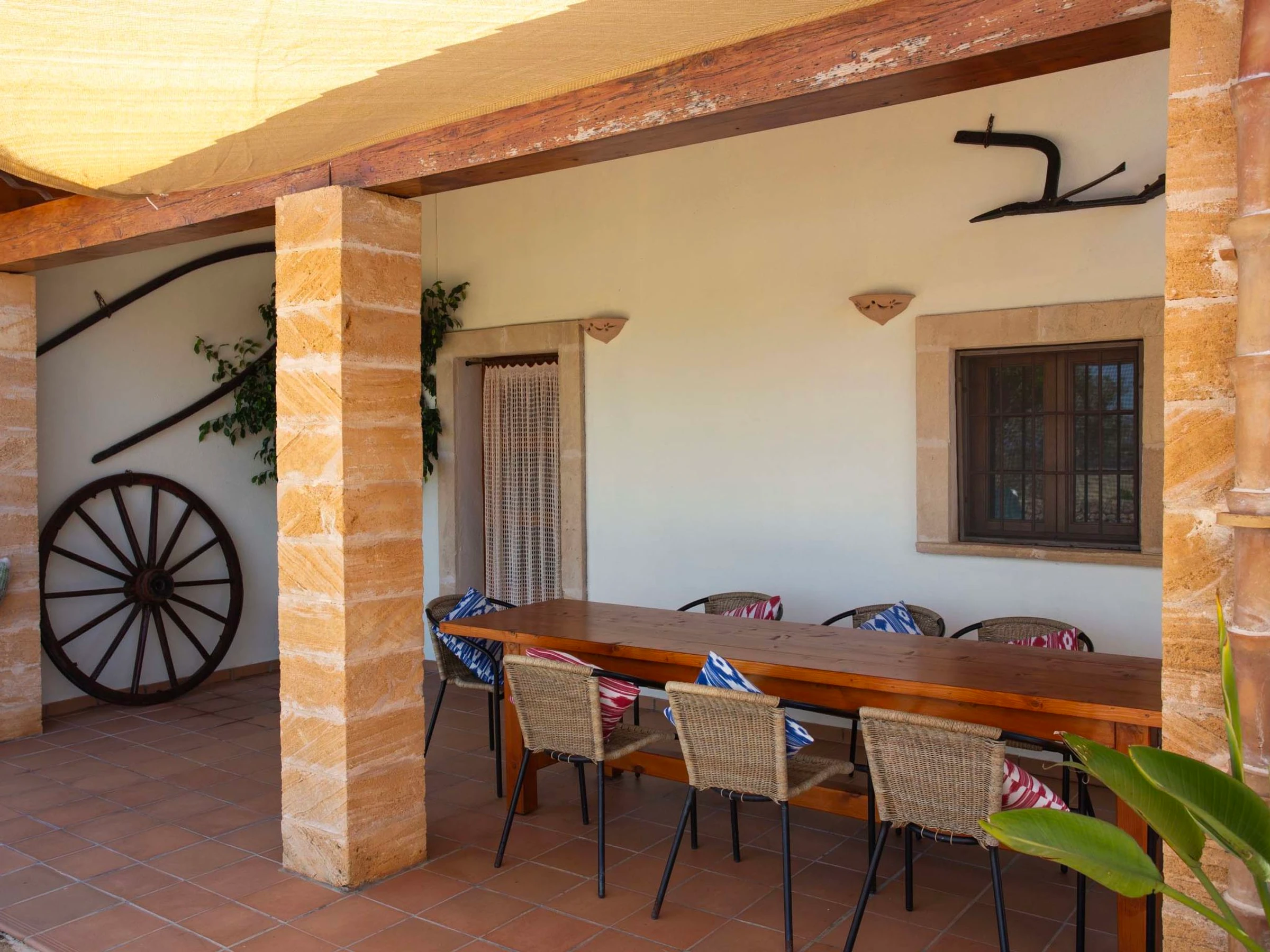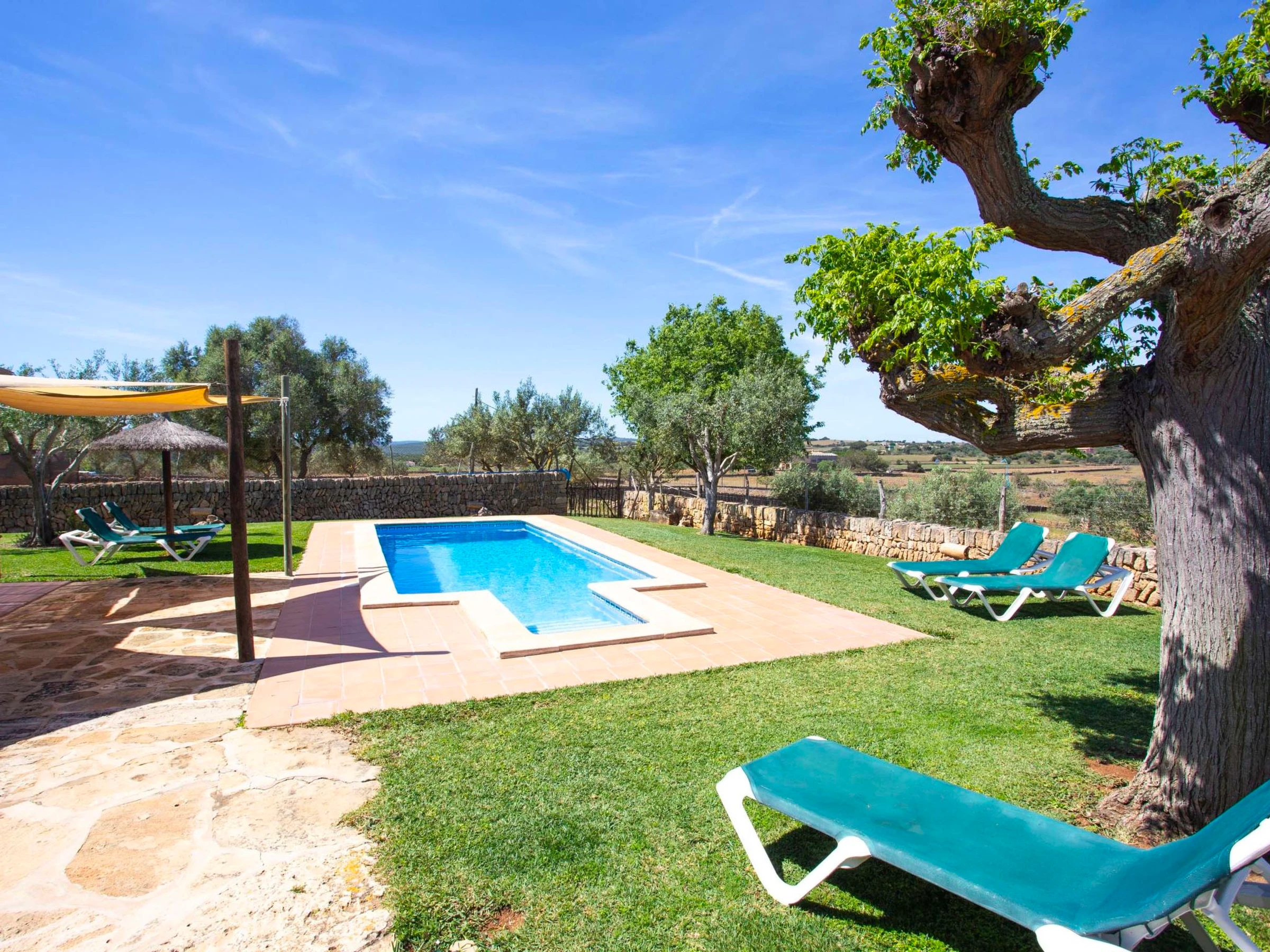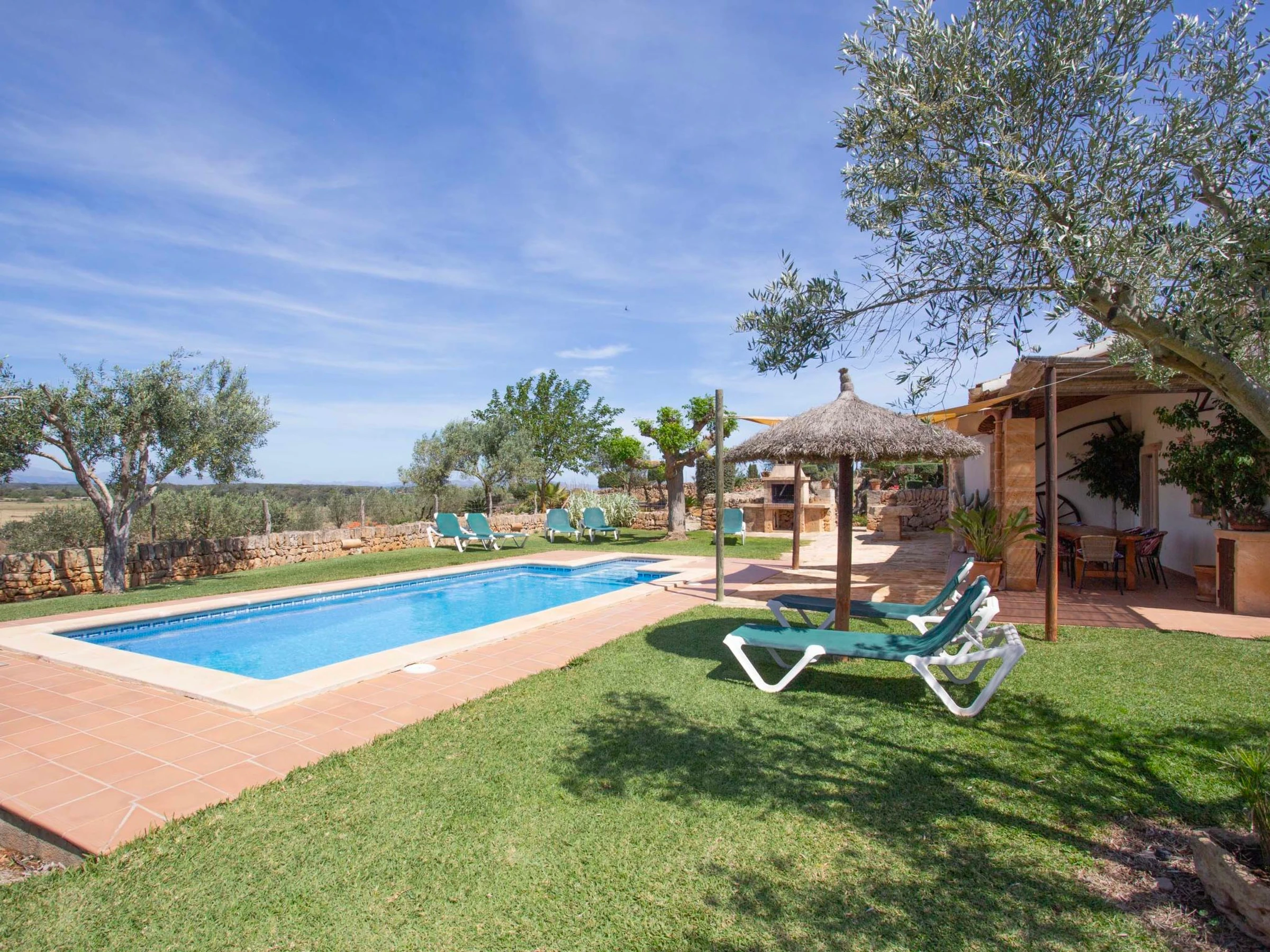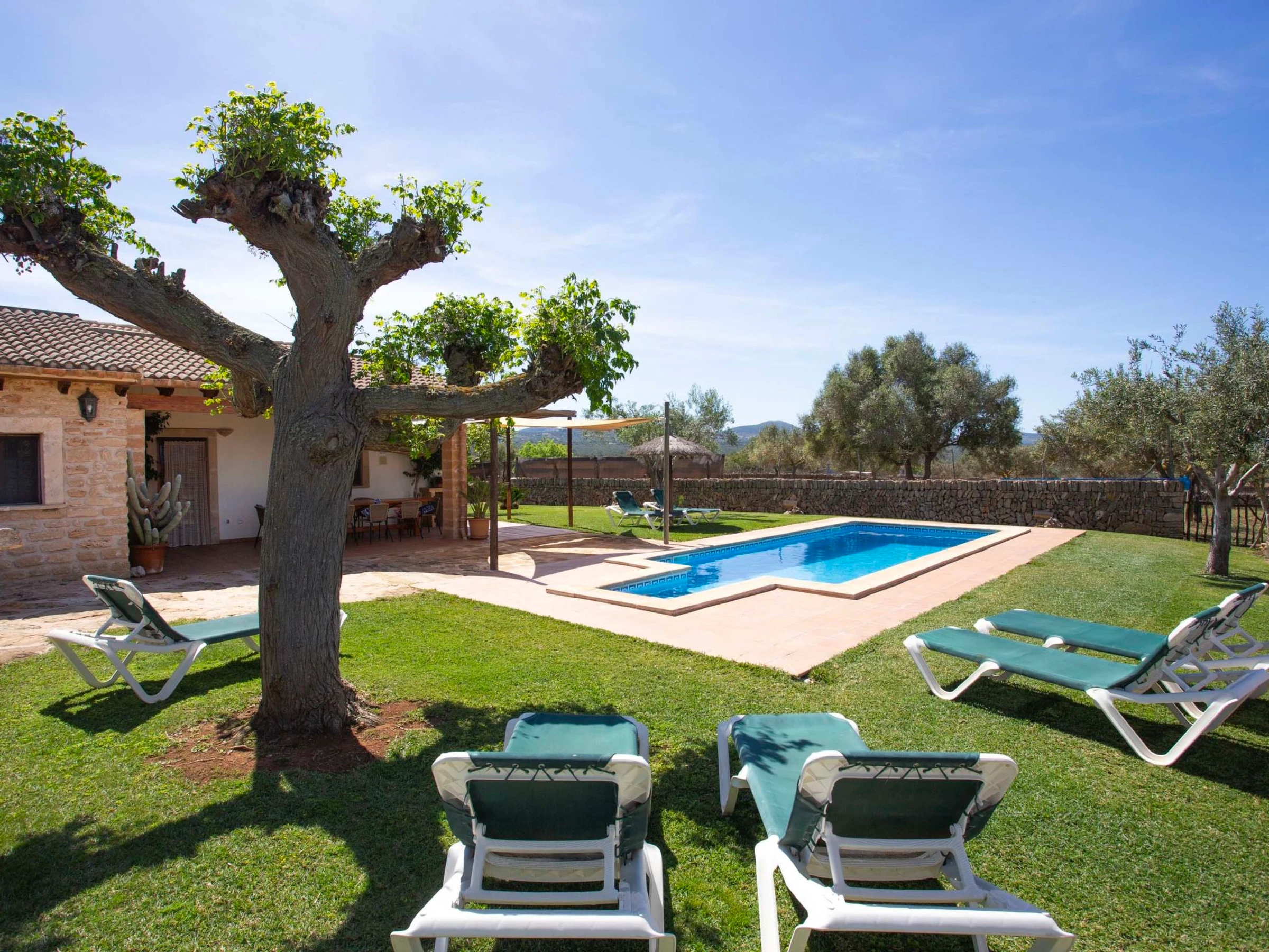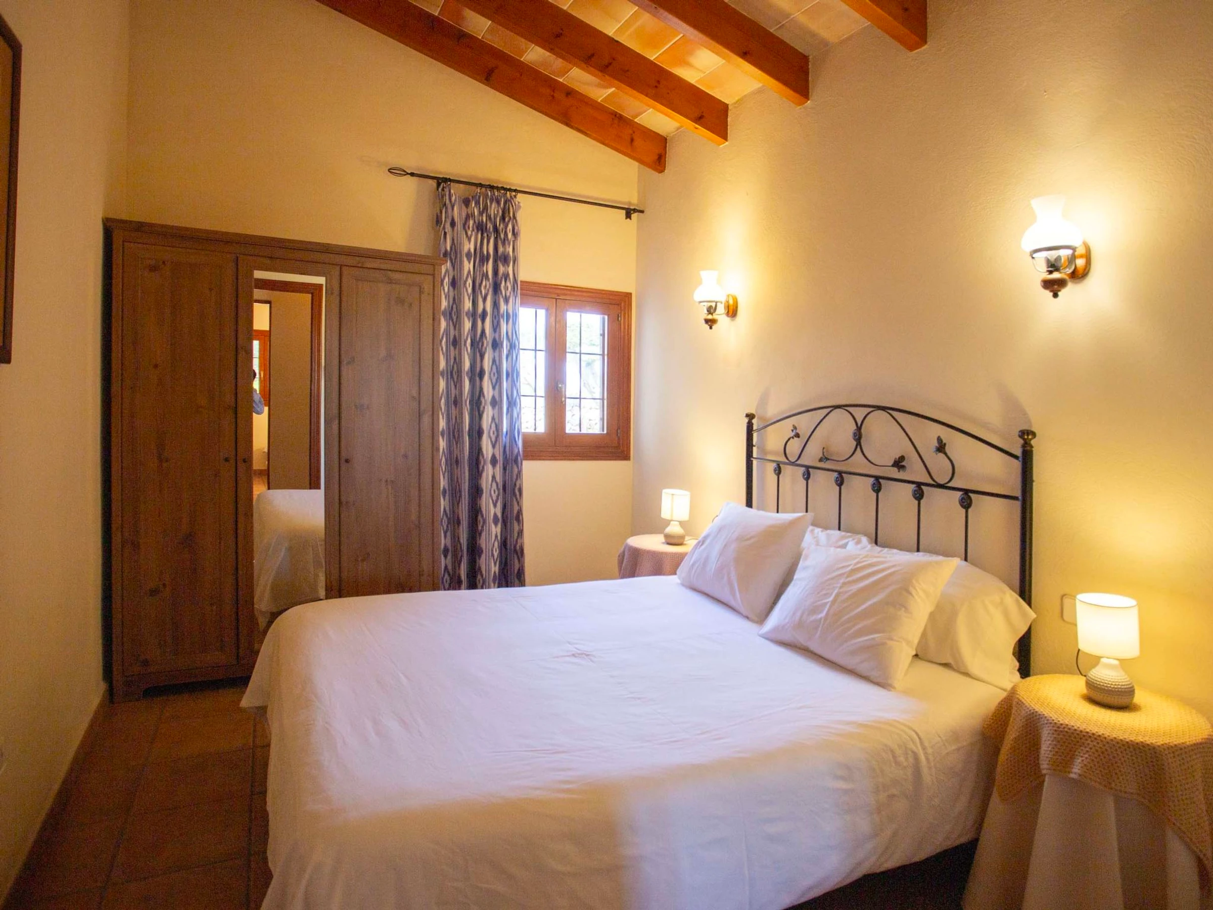 "Ca na Ines", casa 5 estancias 185 m2. Vivienda adecuada para 8 adultos. Espacioso, con mobiliario funcional y confortable: salón-comedor. 1 dorm. doble con 2 camas (90 cm, 190 cm de longitud), aire acondicionado y bomba de calor, caliente. 25 m2, Estudio con 2 camas (90 cm, 190 cm de longitud), ducha/WC, aire acondicionado y bomba de calor, caliente. 1 dorm. doble con 1 cama de matrimonio (1 x 135 cm, 190 cm de longitud), aire acondicionado y bomba de calor, caliente. 1 dorm. doble con 1 cama de matrimonio (1 x 150 cm, 190 cm de longitud), aire acondicionado y bomba de calor, caliente. Grande cocina (4 fogones, horno, lavavajillas, tostadora, hervidor de agua eléctrico, microondas, cafetera eléctrica). Baño/WC, ducha/WC. Aire acondicionado, aire caliente. Calefacción no en todas las estancias. Suelo de piedra natural. Jardín. Muebles de terraza, barbacoa, tumbonas (8), porche. Vista muy bonita al paisaje. El alojamiento dispone de: lavadora, plancha, trona, cuna hasta 2 años, secador de pelo. Internet (Wifi, gratis). Plaza de aparcamiento junto a la casa. Adecuado para familias. [hidden] // Reg. Nr.: ESFCTU00000701100020443800000000000000000000[hidden]6