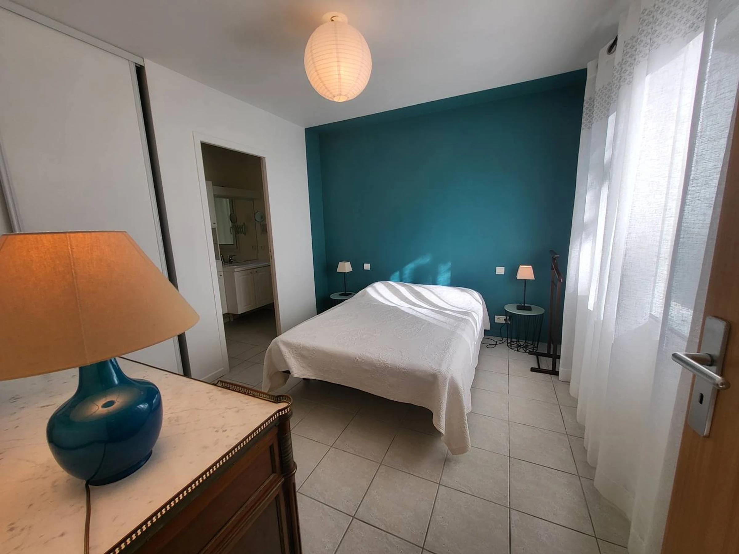 Dormitorio 5: ubicado en la parte trasera de la villa, está equipado con una cama doble (140 cm). Lavadero: ubicado en la parte trasera de la villa, está equipado con lavadora, secadora y ducha para enjuagarse después de la playa.