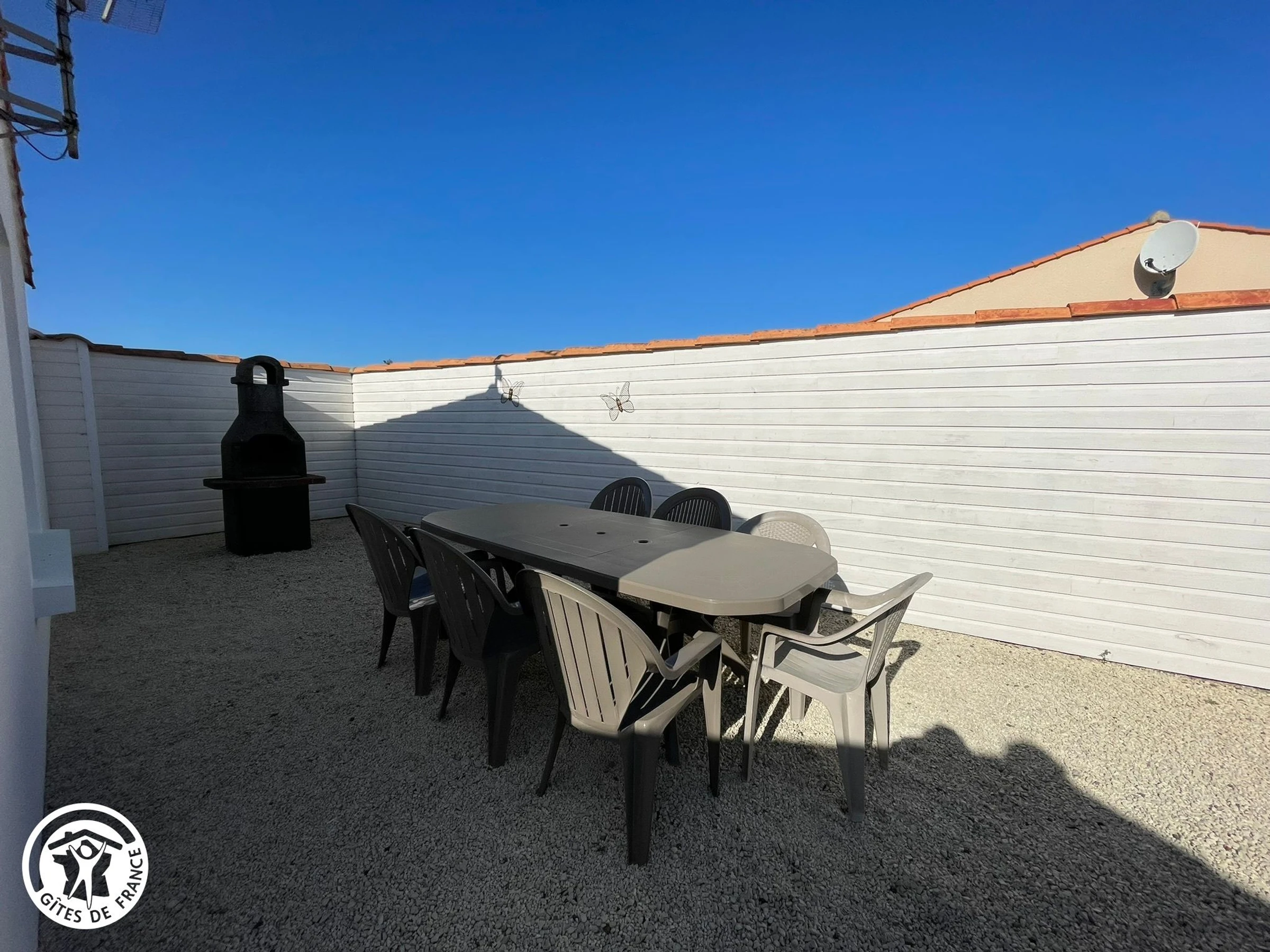 Disfrute de una estancia junto al mar, cerca de los comercios (500 m), del puerto de Bourgenay (700 m) y de la playa de Veillon (1,4 km). Tendrá la oportunidad de perfeccionar su swing en el campo de golf de Bourgenay (1,1 km), visitar el Acuario de Vendée o incluso explorar el parque acuático O'Gliss Park. Esta casa consta de un recibidor, una sala de estar/cocina (acceso por un escalón), dos dormitorios equipados con una cama de 140 cm, dos dormitorios pequeños equipados respectivamente con una cama de 90 cm y dos literas de 80 cm, un cuarto de ducha, un cuarto de ducha/WC y un WC separado. En el exterior encontrará un patio privado de grava con muebles de jardín y barbacoa. Hay una plaza de aparcamiento privada reservada para usted delante de la casa rural. Durante la temporada de verano, hay un refugio disponible para guardar sus bicicletas.