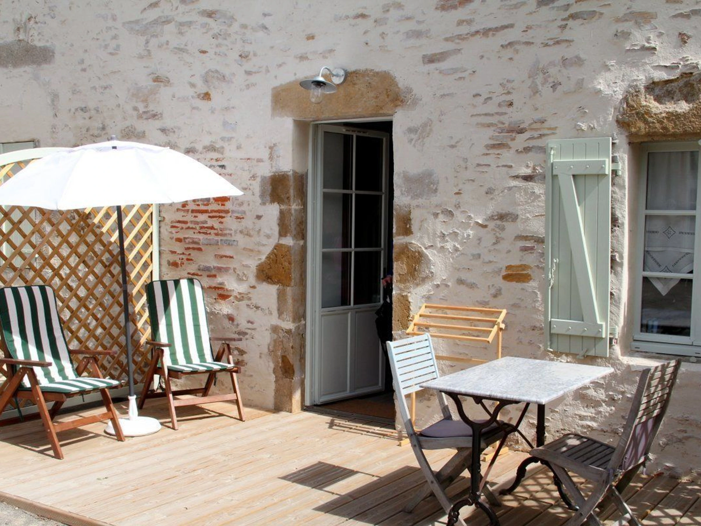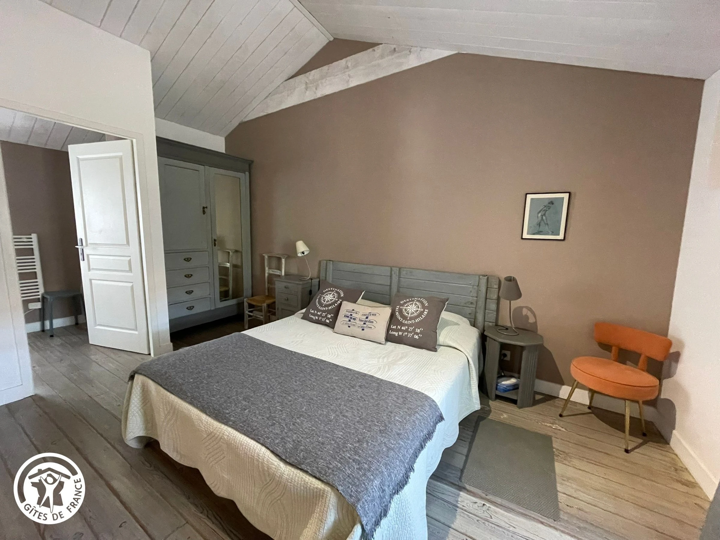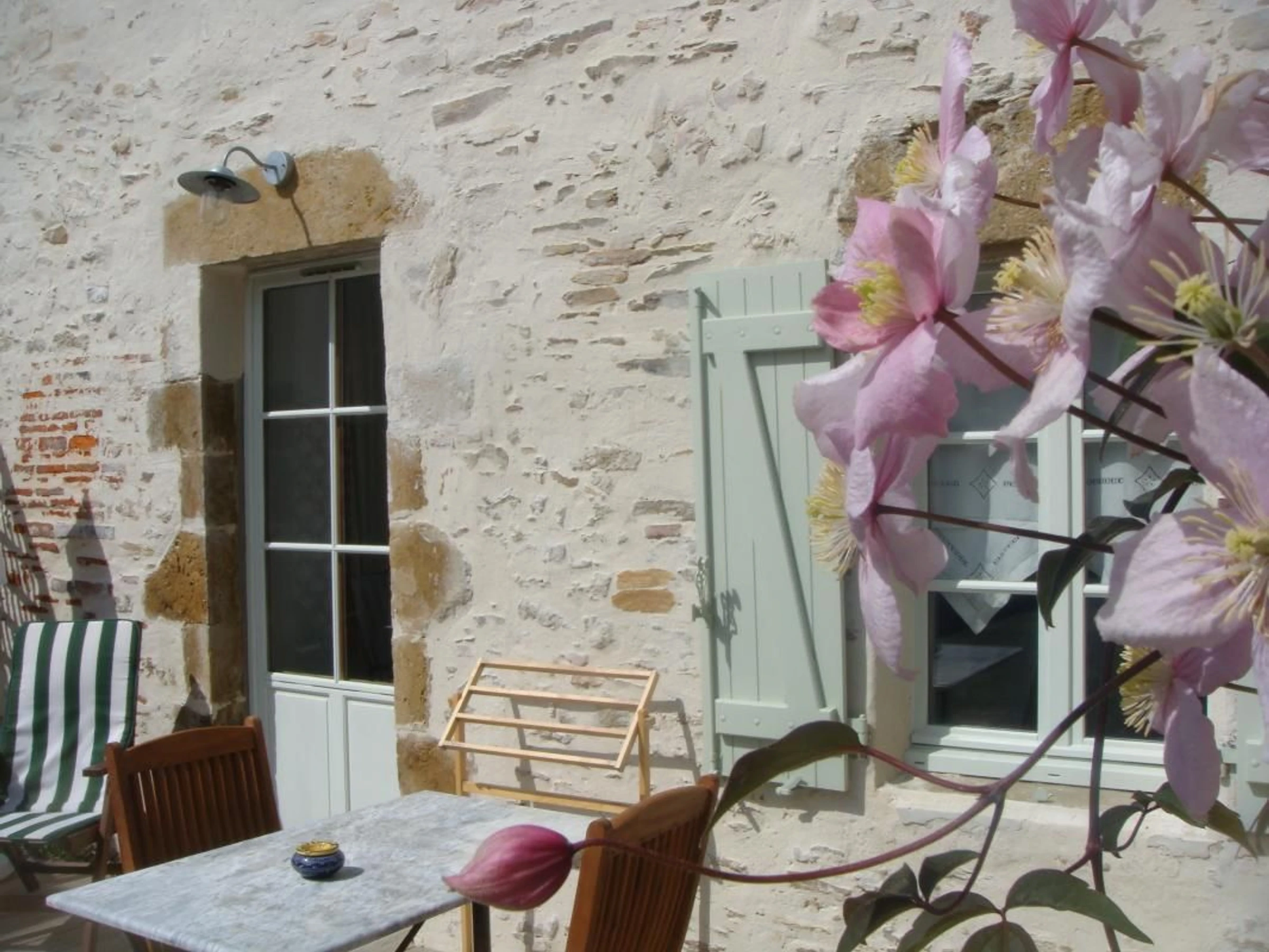 Desde La Roche sur Yon, dirección La Tranche sur Mer, salida Nieul le Dolent. Al llegar a Talmont Saint Hilaire, en la rotonda (cantera), girar a la izquierda, seguir recto, 1.ª calle a la izquierda, rue du Chai (dirección Jard sur Mer), detenerse en la 1.ª puerta grande a la derecha. Gran casa de piedra con contraventanas de color verde suave, entre al patio.