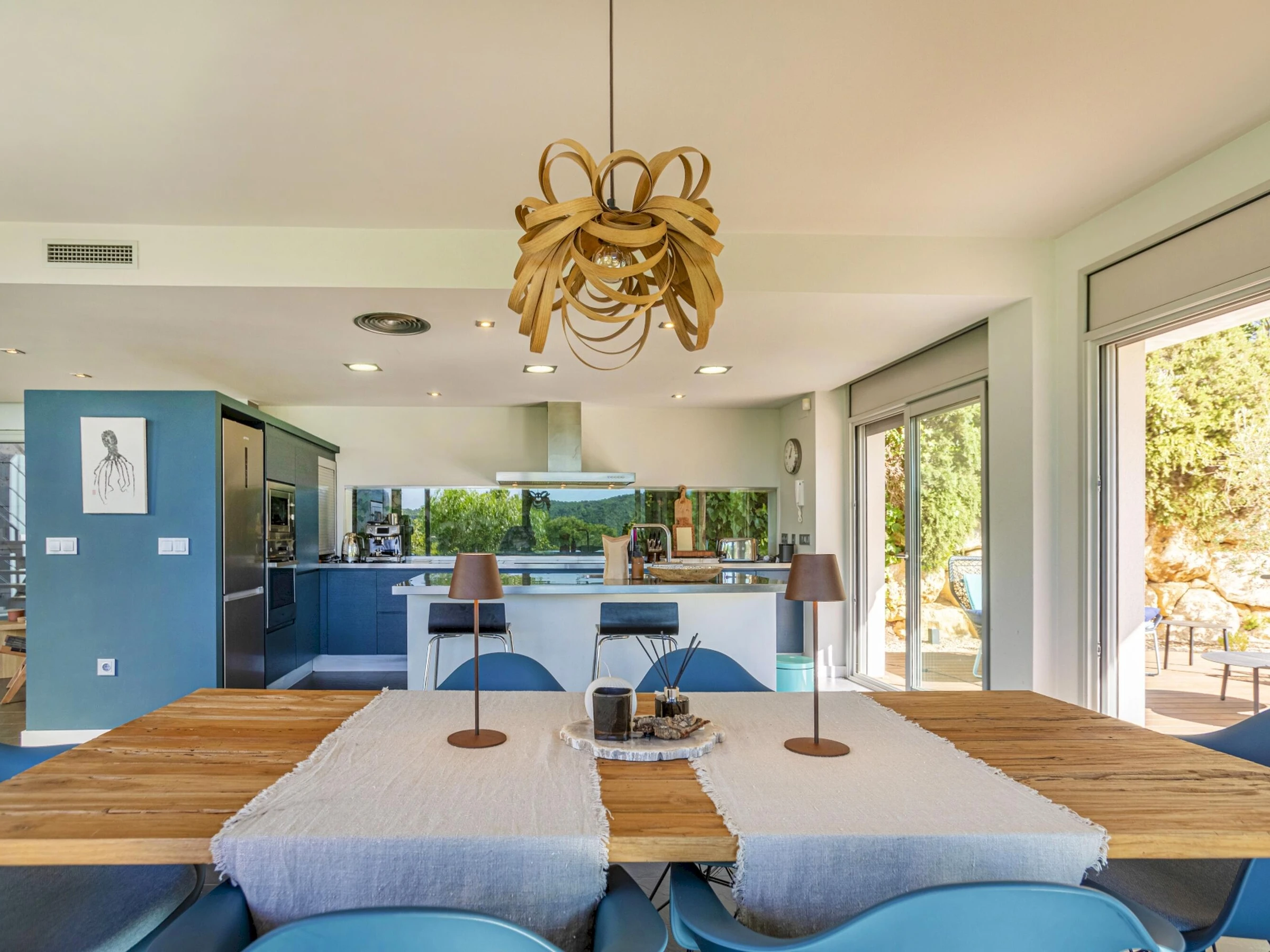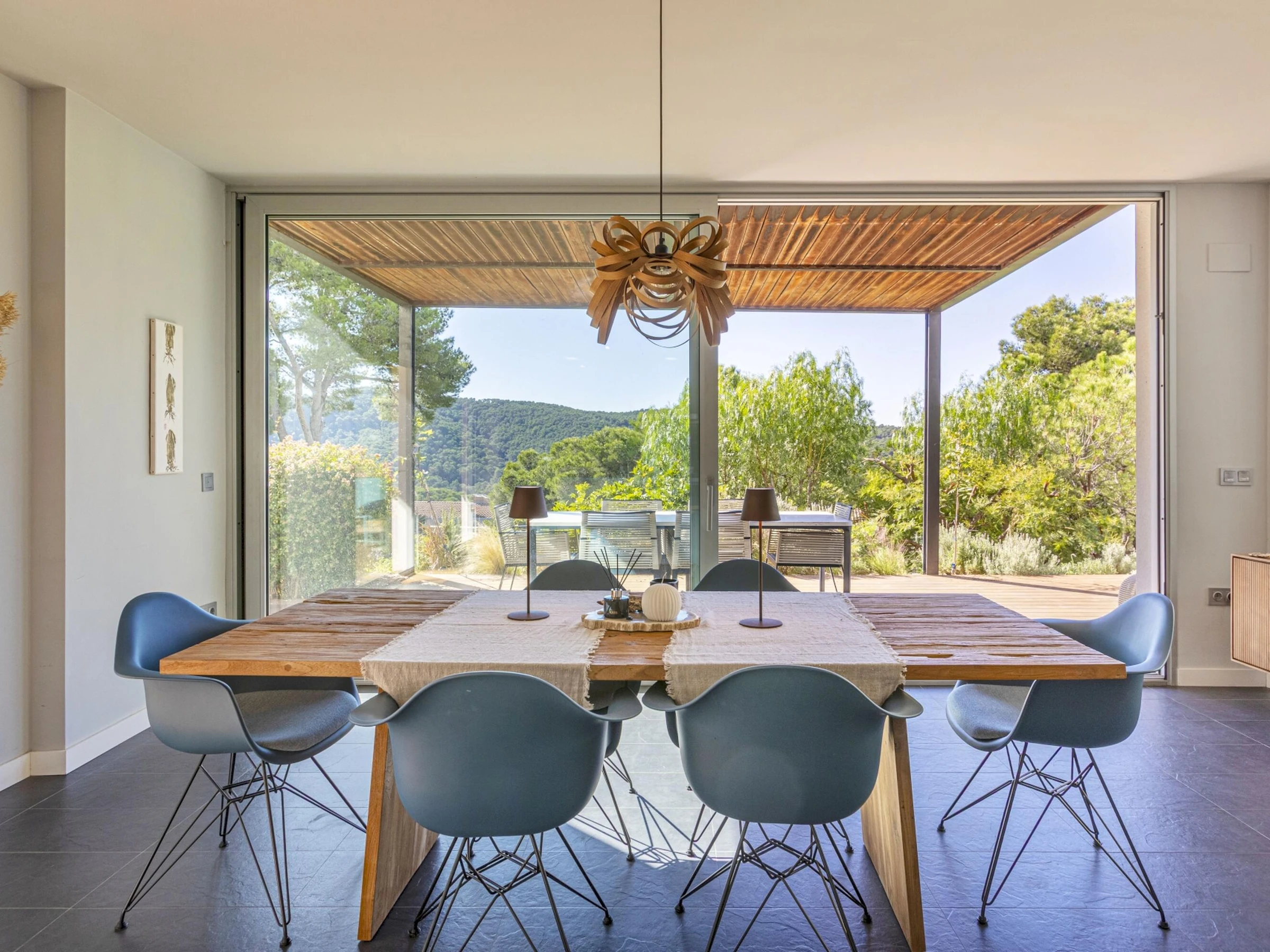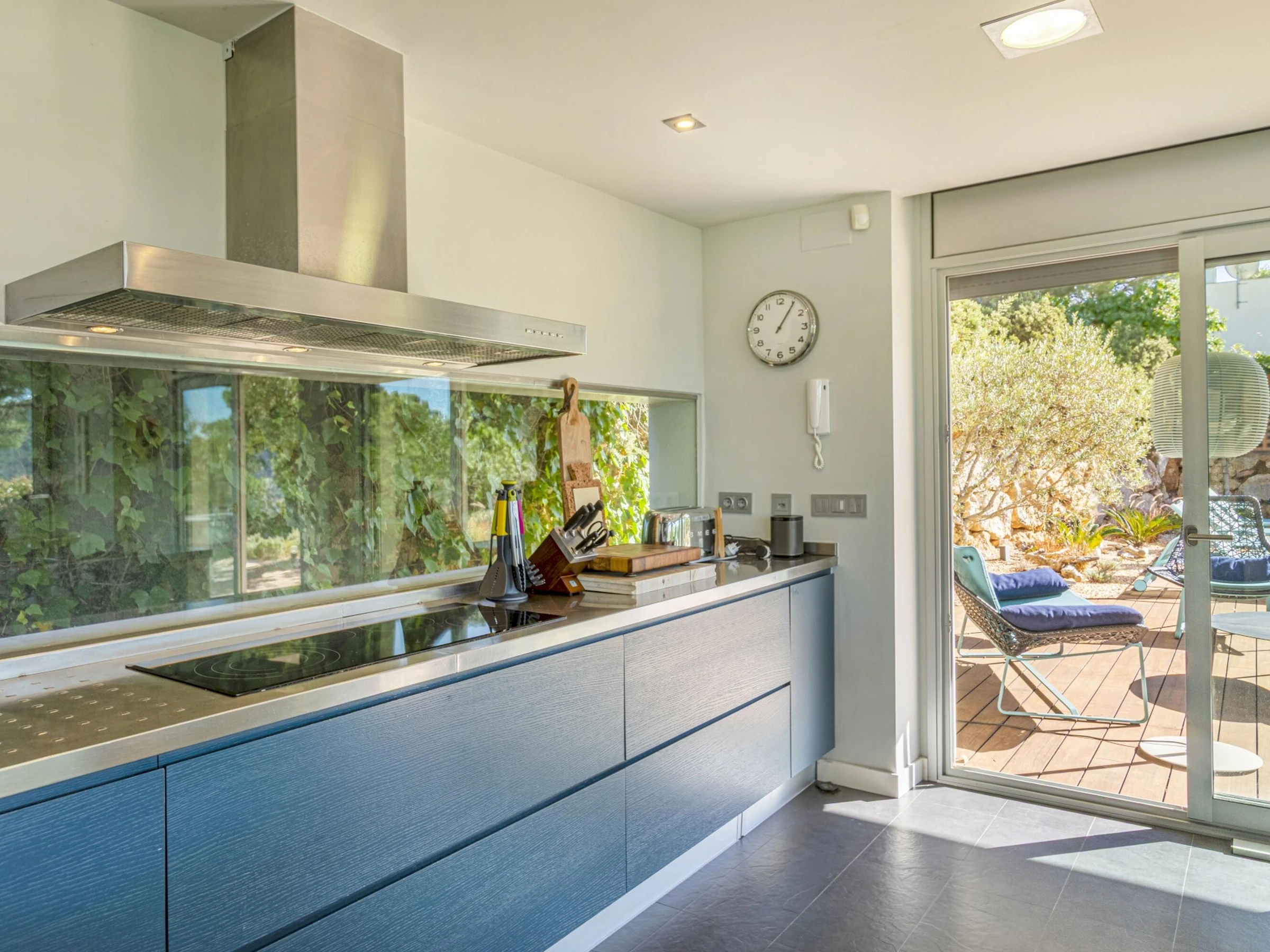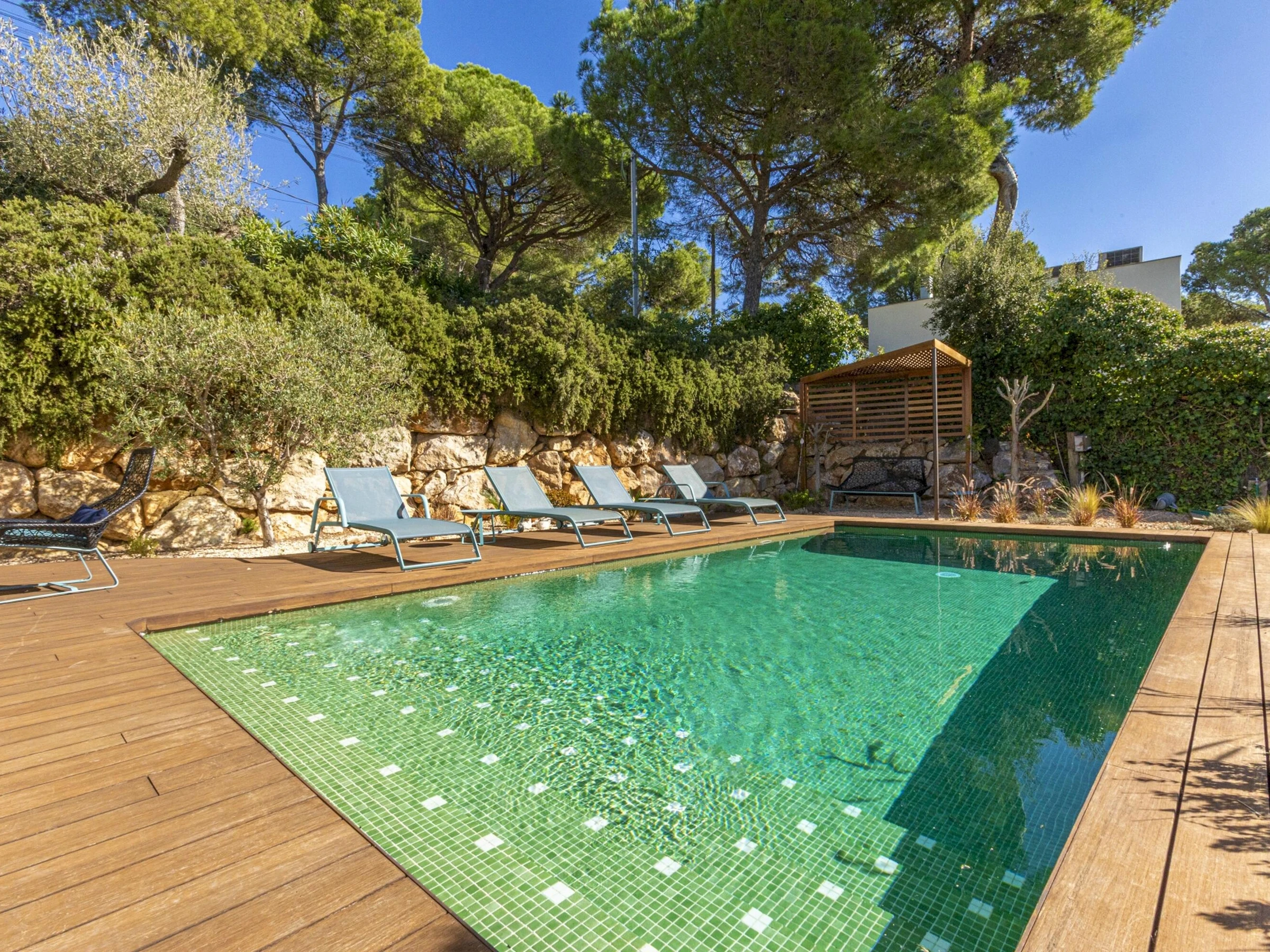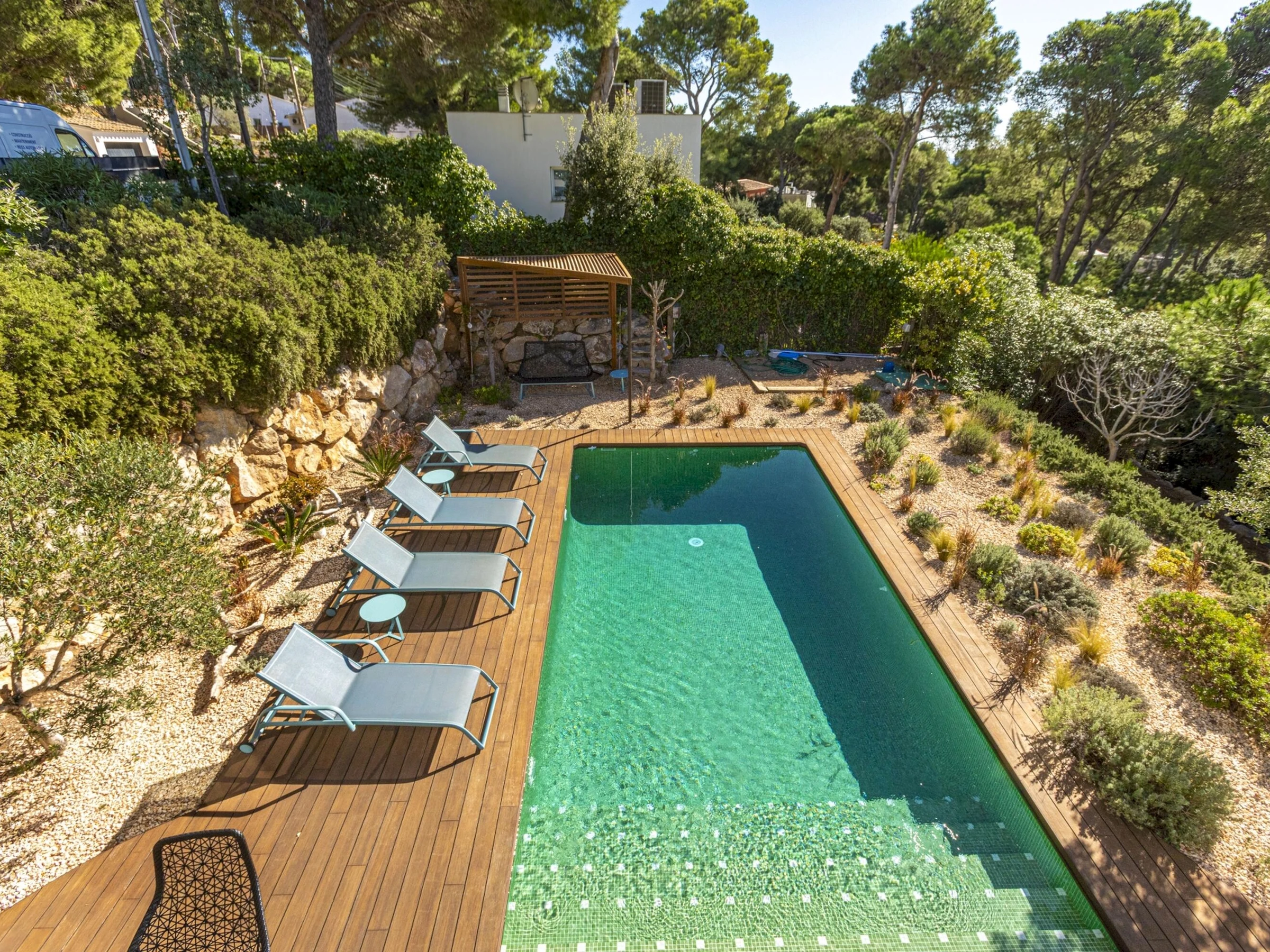 Villa Exmora en Tamariu -Piscina Privada, Jardín Mediterráneo y Diseño Moderno Ubicada en la exclusiva zona residencial de Aigua Gelida, a tan solo 1 km de la playa de Tamariu, esta villa moderna y luminosa ofrece una experiencia única de tranquilidad, naturaleza y confort en la Costa Brava. Orientada al sur y diseñada con grandes ventanales de doble altura, la casa disfruta de luz natural durante todo el día, creando un ambiente amplio, sereno y conectado con la naturaleza. Su arquitectura contemporánea y sus acabados de alta calidad garantizan una estancia relajada y elegante, con perfecta transición entre interior y exterior. El entorno exterior destaca por su espectacular jardín mediterráneo escalonado, piscina privada de agua salada y amplias terrazas, ideales para tomar el sol, descansar y disfrutar de cenas al aire libre con vistas verdes y total privacidad. Distribución de la vivienda Planta baja * Amplio salón-comedor con ventanas de suelo a techo * Cocina abierta totalmente equipada con isla central y sistema de osmosis * Acceso directo al jardín y piscina desde todas las estancias * Dormitorio principal con vestidor y baño en suite (ducha efecto lluvia + bañera independiente) * Acceso privado desde el dormitorio a la terraza soleada * Aseo de cortesía Planta superior * Hall de entrada * Garaje con zona de lavandería (lavadora + secadora) * 3 dormitorios dobles: * 1 dormitorio doble con terraza privada y vistas abiertas al valle * 1 dormitorio doble en suite * 1 dormitorio doble con camas individuales * 2 baños completos renovados recientemente (duchas efecto lluvia) Zona y entorno Aigua Gelida es una de las áreas más exclusivas de Tamariu, rodeada de pinos, tranquilidad y naturaleza. A pocos minutos encontrarás: * Cala Aigua Gelida y playa de Tamariu * Calas como Aiguablava y Llafranc * Senderos del Camí de Ronda * Actividades náuticas, buceo y rutas de senderismo * Pueblos con encanto: Begur, Calella de Palafrugell, Pals Un lugar ideal para quienes buscan privacidad, naturaleza y mar en uno de los enclaves más deseados del Empordà. Información adicional * Capacidad: 8 personas * Habitaciones: 4 * Baños: 4 * Parcela: 1.100 m² * Piscina: Privada (agua salada) * Vistas: Naturaleza / valle * Garaje y aparcamiento privado * Ubicación: Tamariu — Aigua Gelida * Licencia turística: [hidden] Condiciones * Estancia mínima: 3 noches * Suplemento limpieza: 100 € en estancias inferiores a 1 semana (no incluido en el precio)