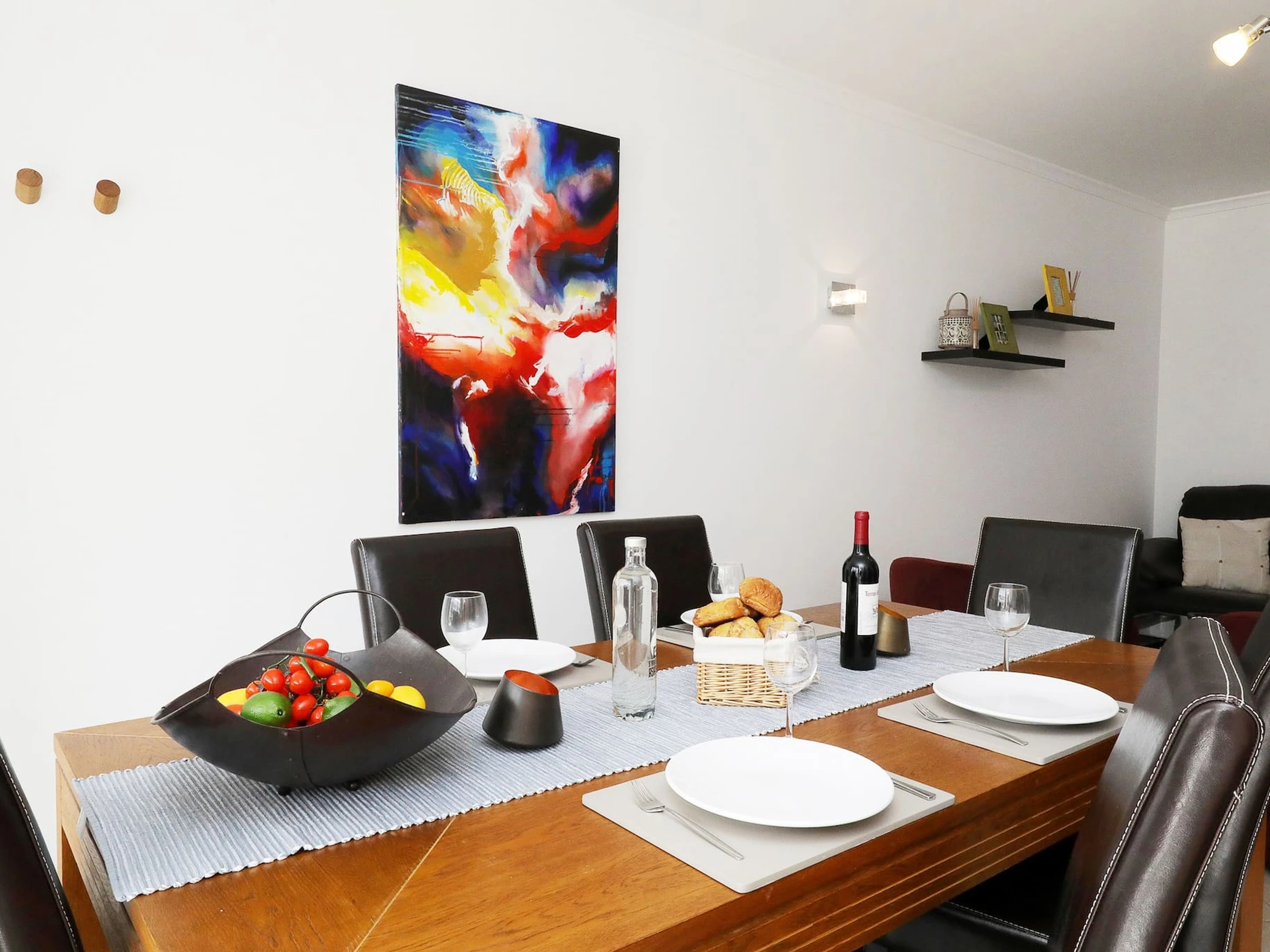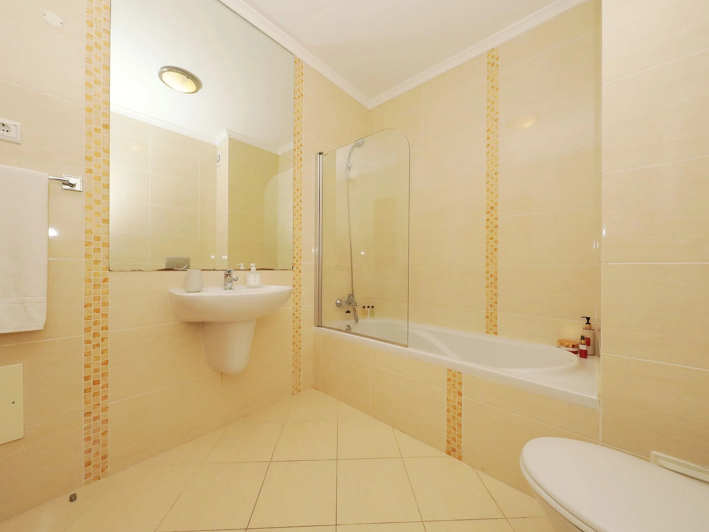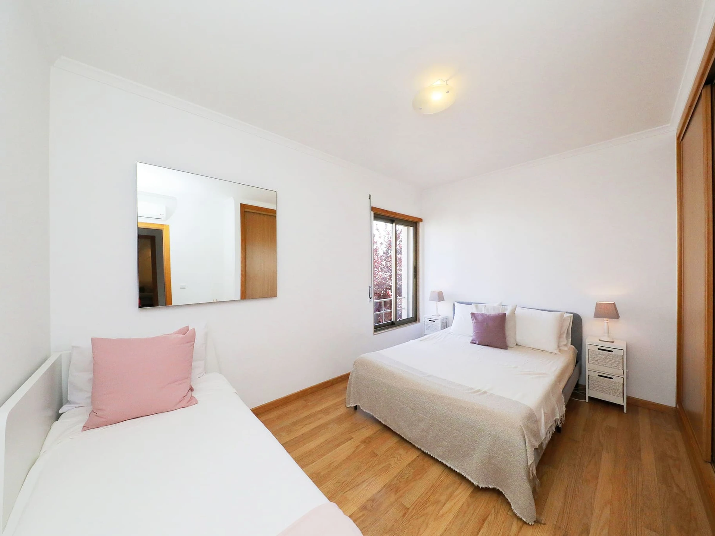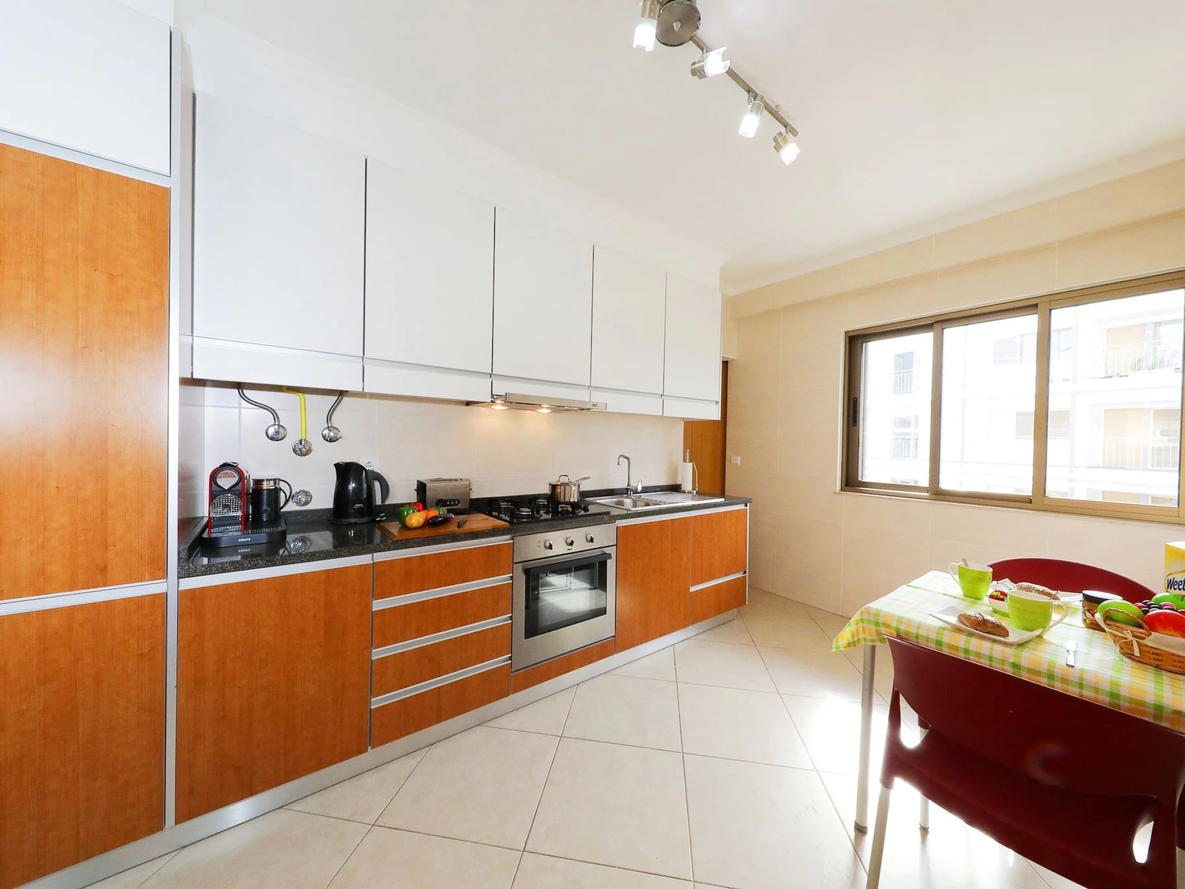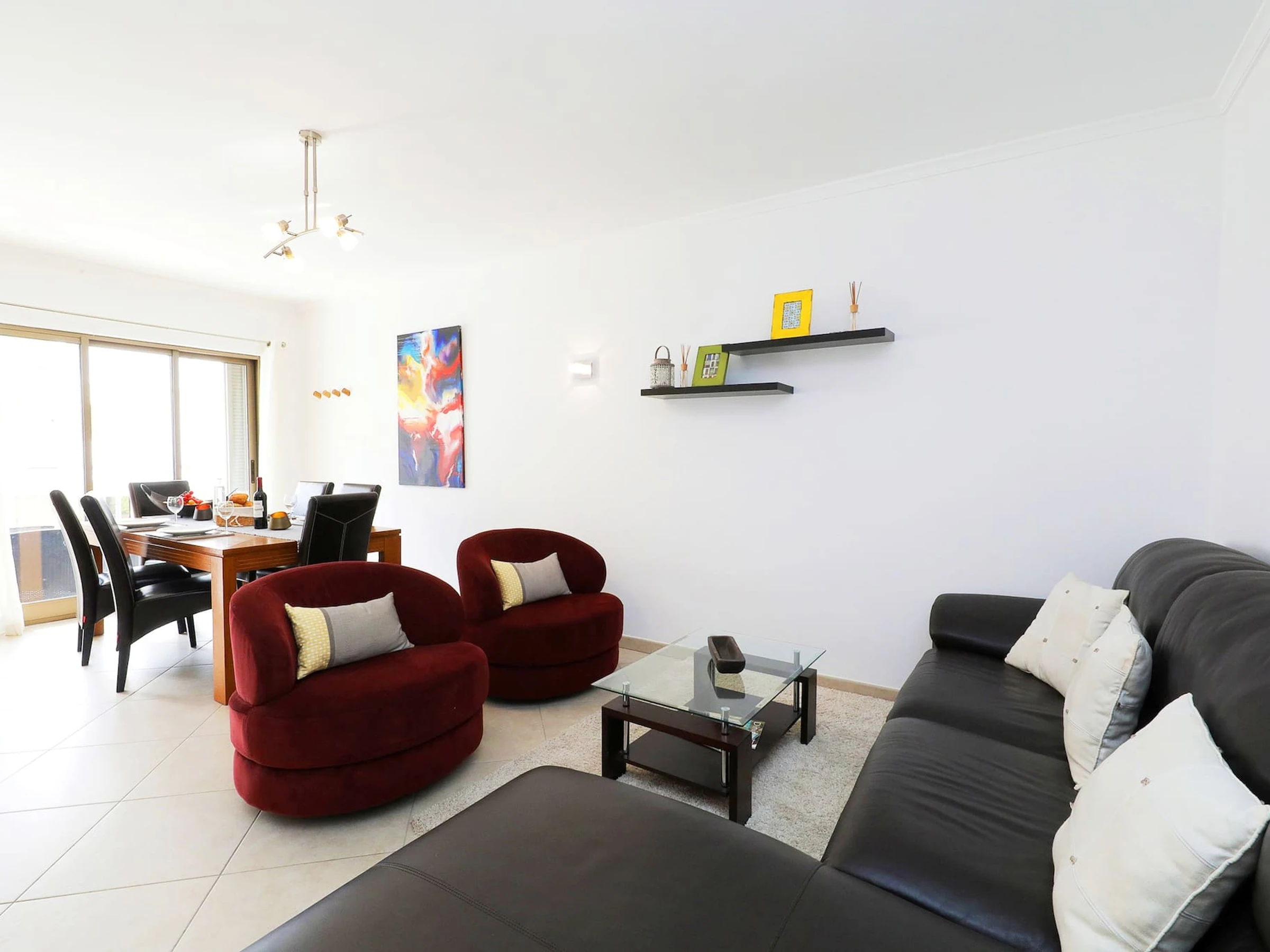 Este acogedor apartamento de primera planta ubicado en el condominio seguro de Horta Poço do Bispo es ideal para una familia o dos parejas. El apartamento cuenta con dos dormitorios, uno con una cama king size y el otro con una cama doble y una individual, ambos con armarios empotrados. El baño familiar compartido está equipado con bañera y ducha de mano. La espaciosa cocina incluye lavavajillas y lavadora y conduce a áreas de estar bellamente amuebladas que comprenden un salón y comedor de planta abierta con asientos cómodos y un gran televisor con canales nacionales e internacionales. Por la tarde, relájese en el soleado balcón ubicado en la parte delantera del apartamento, con sus sofás y mesa de café que proporcionan el lugar perfecto para la relajación, o dé un refrescante chapuzón en la piscina de los residentes.