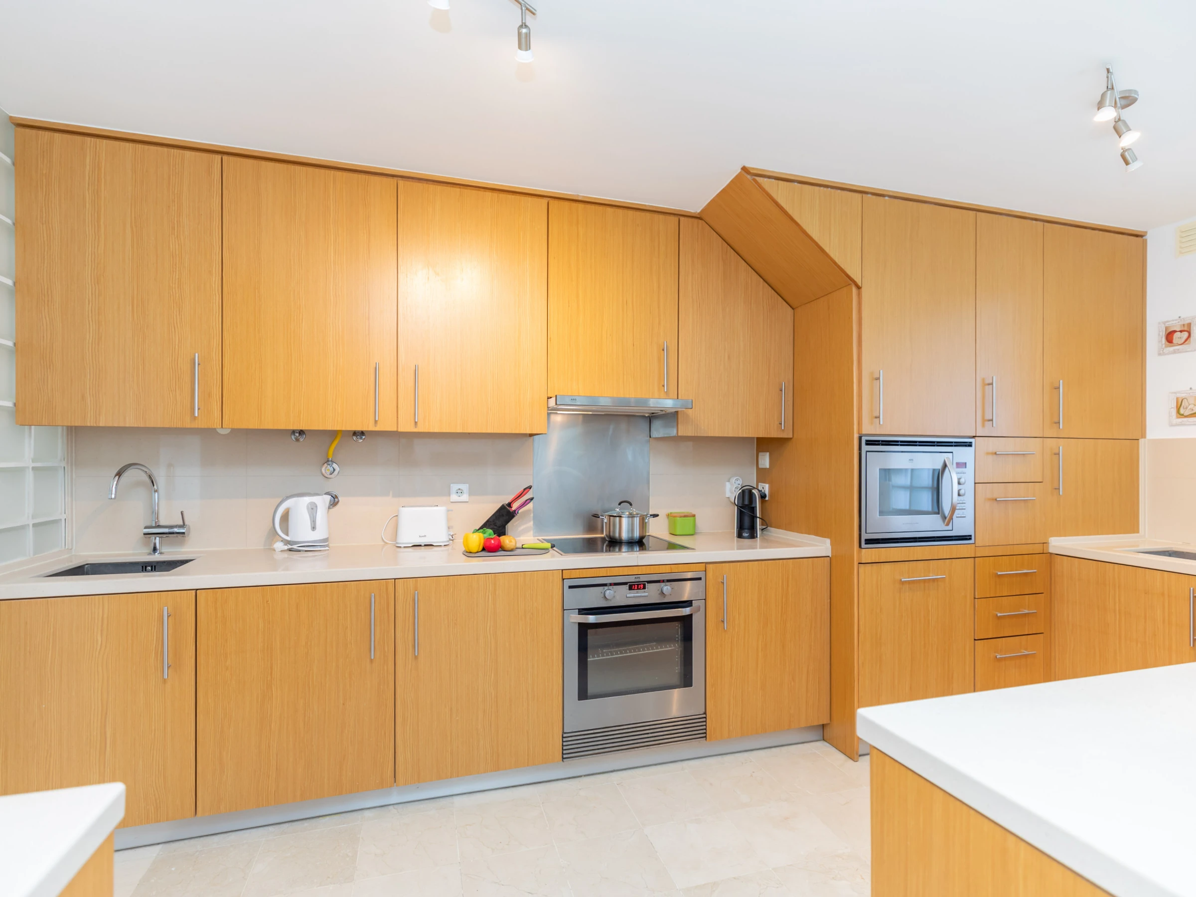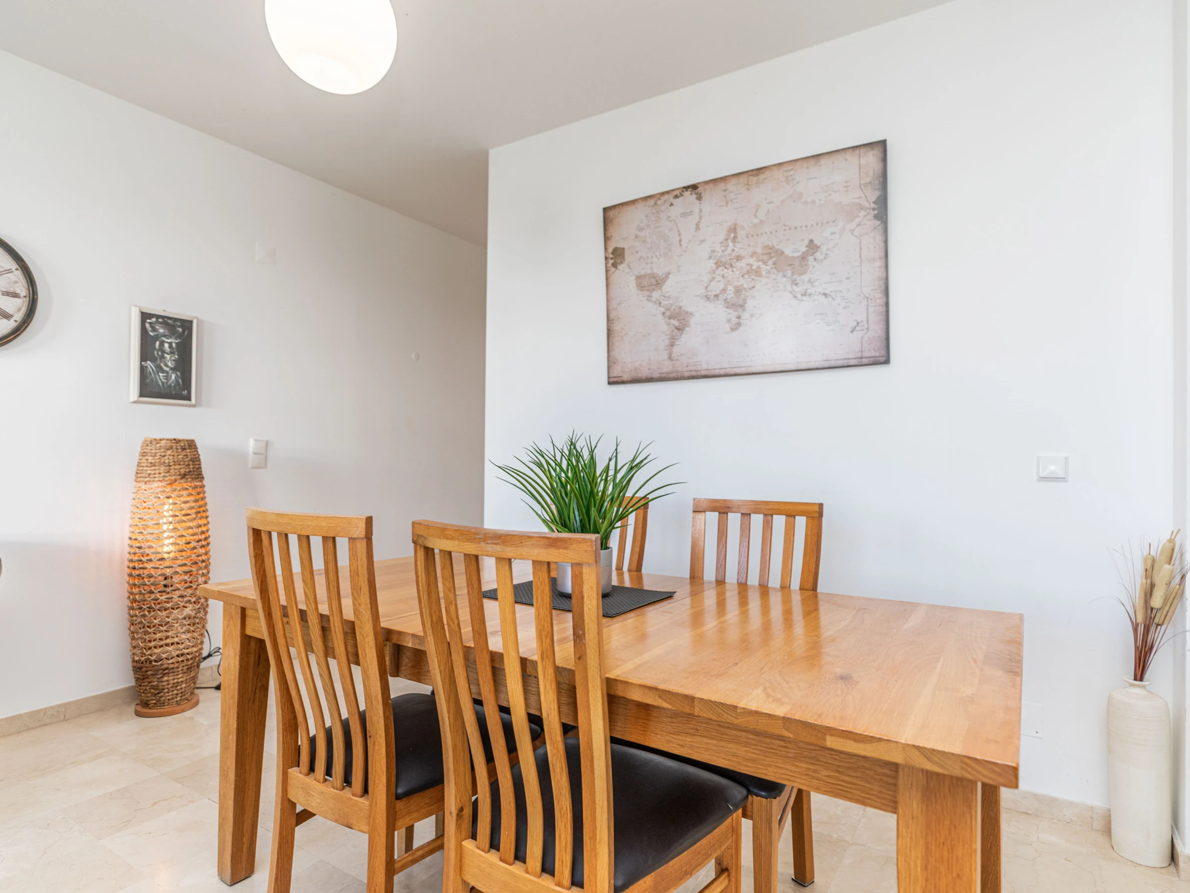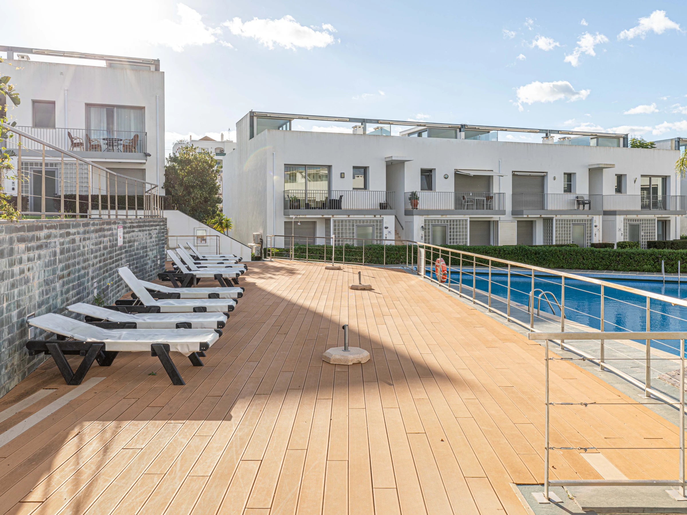 Fuera, el apartamento cuenta con una terraza sombreada con mesa y sillas, ideal para tomar un aperitivo al atardecer mientras se disfruta de las vistas de los hermosos jardines bien cuidados. Los jardines están rodeados de una terraza de madera, césped exuberante, arbustos maduros y olivos, todos rodeando una piscina azul reluciente. El área de la piscina incluye una piscina principal para adultos y una sección poco profunda para niños pequeños, lo que la hace perfecta para la diversión familiar. El condominio está cerrado de manera segura, ofreciendo un entorno seguro para los niños, y el apartamento está a solo unos pasos de la piscina. La ubicación en la ladera elevada proporciona impresionantes vistas sobre la ciudad de Tavira y hasta el océano.