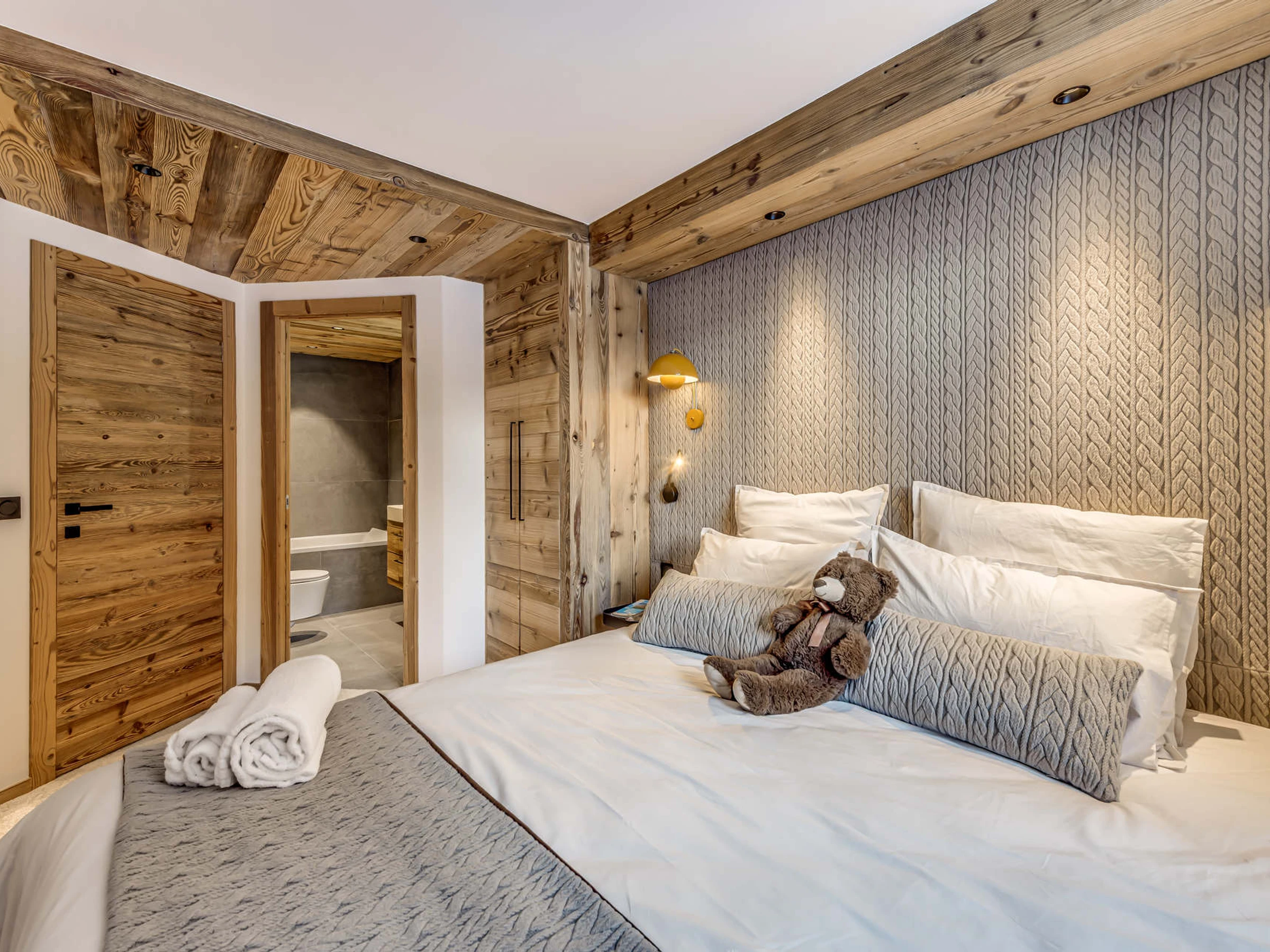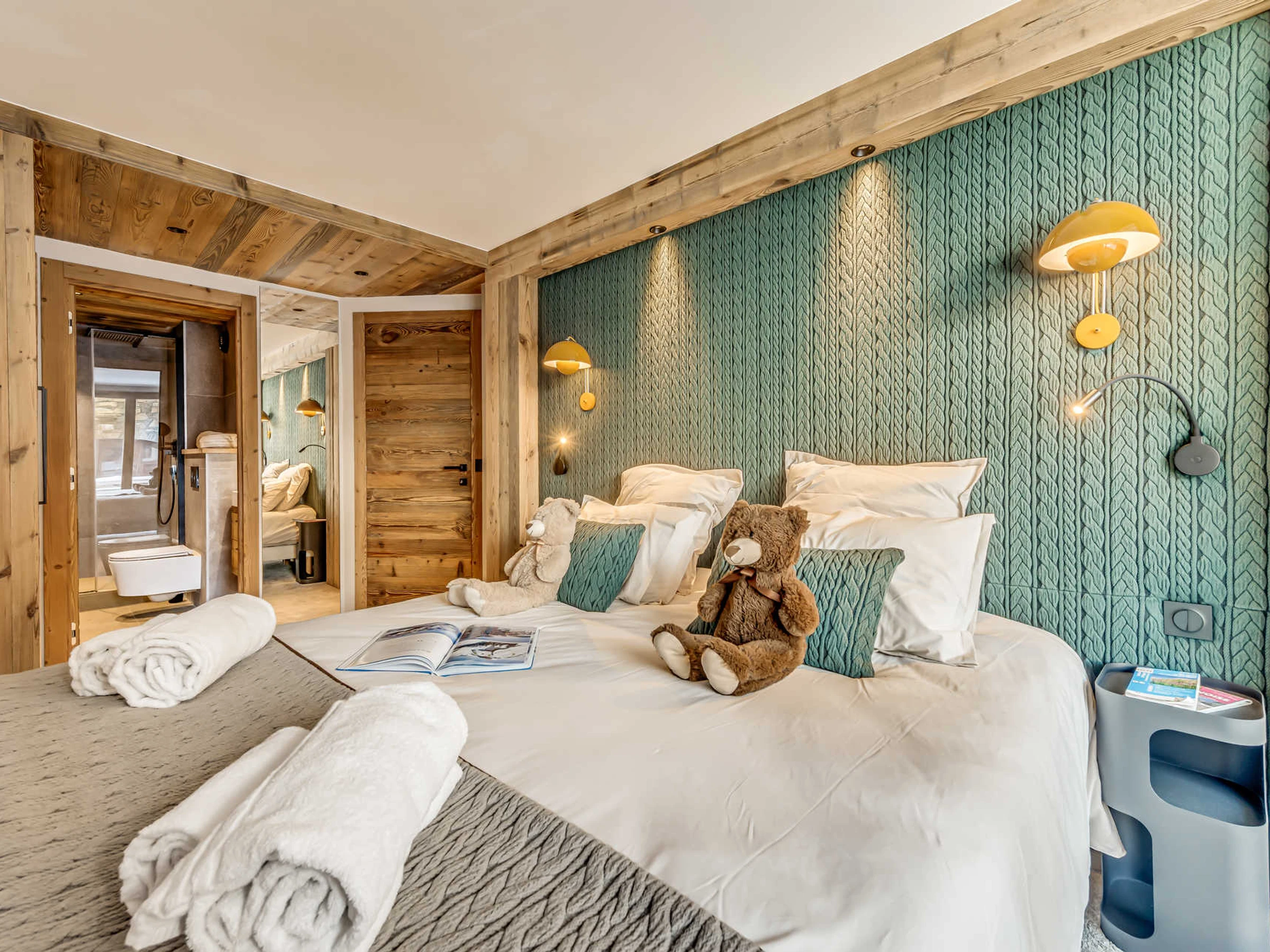 - 2 dormitorios orientados al sur, suite principal con 2 camas individuales que se pueden juntar para formar una cama doble, armario, baño con ducha, mueble de lavabo, secador de toallas y aseo