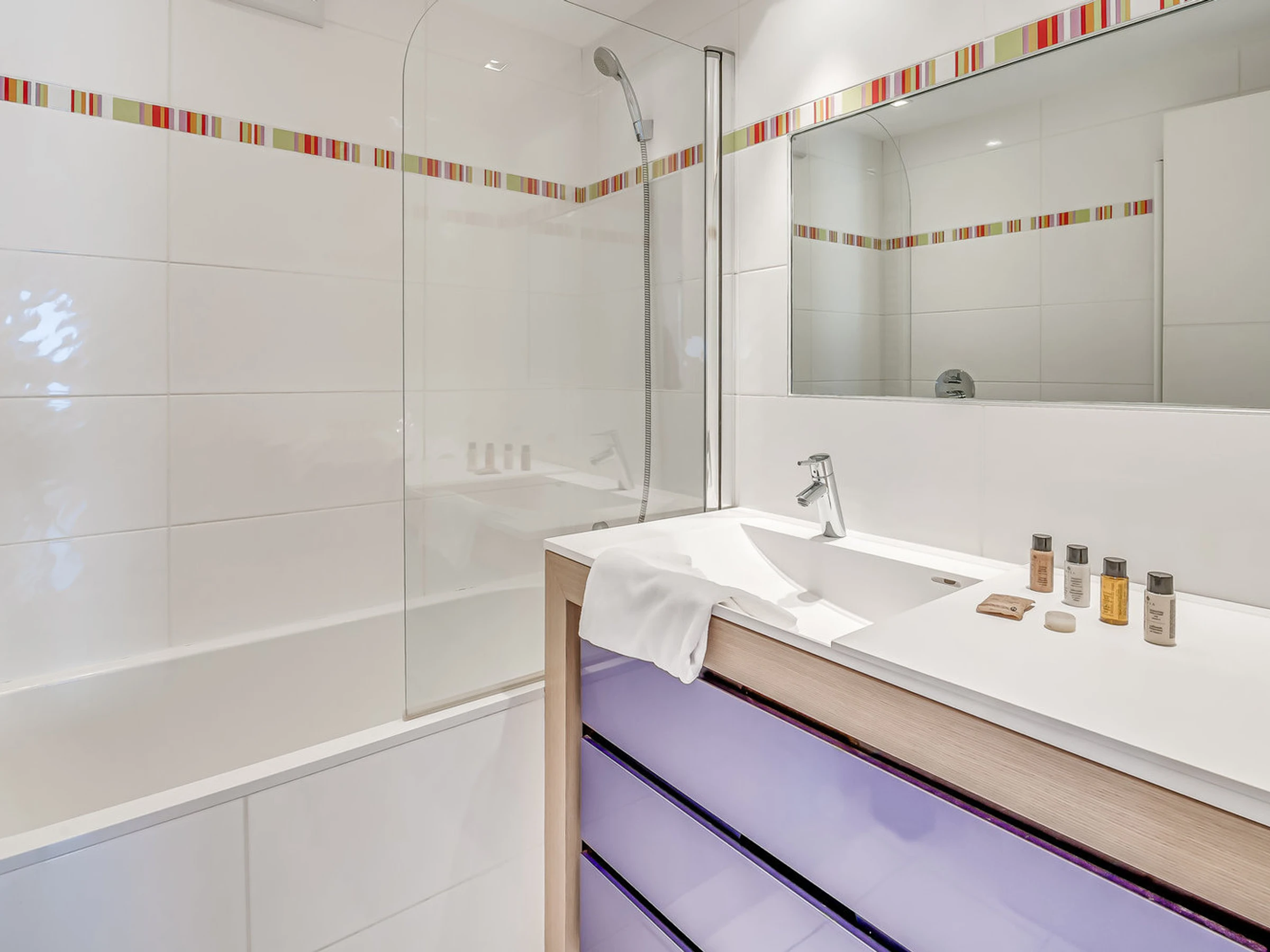 2 Baños con bañera, mampara de cristal y mueble bajo lavabo