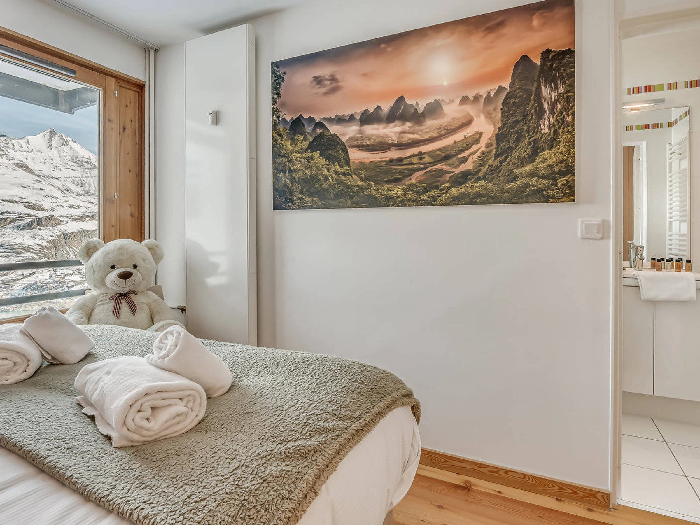 4 Dormitorio con orientación este y 1 cama doble y baño en suite con ducha y WC