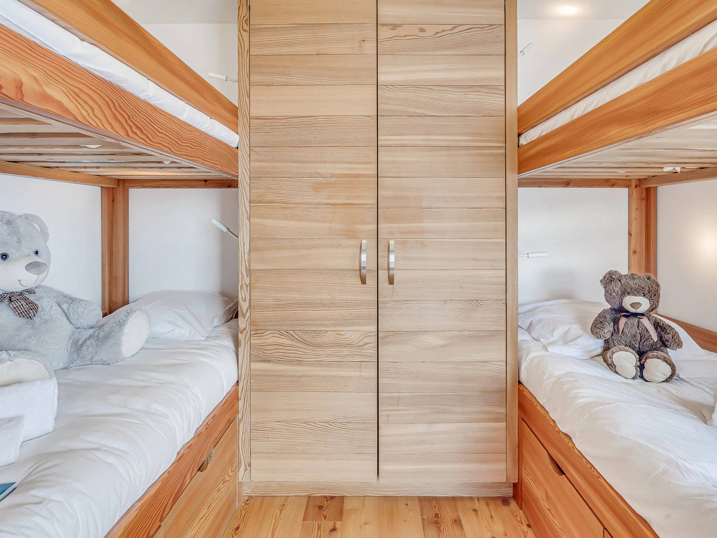 1 Dormitorio con orientación este-sur y acceso al balcón, con 2 literas y armarios