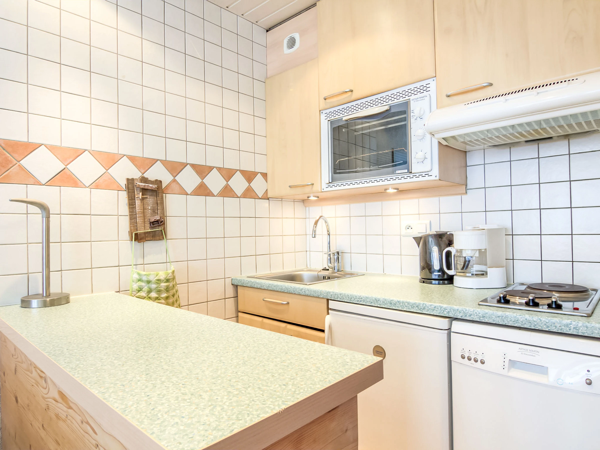 Estudio 25 m2 en el 2° piso. Con mobiliario funcional y confortable: salón-comedor con 1 sofá-cama doble (140 cm), TV (pantalla plana). Entrada con 2 camas abatibles (80 cm, 190 cm de longitud). Cocina abierta (2 fogones, horno pequeño, lavavajillas). Baño, WC separado. Balcón, orientación sur. Vista panorámica muy bonita a las montañas y a la pista de esquí. El alojamiento dispone de: Internet (Wifi, extra). A tener en cuenta: apartamento para no fumadores. Detector de humo.