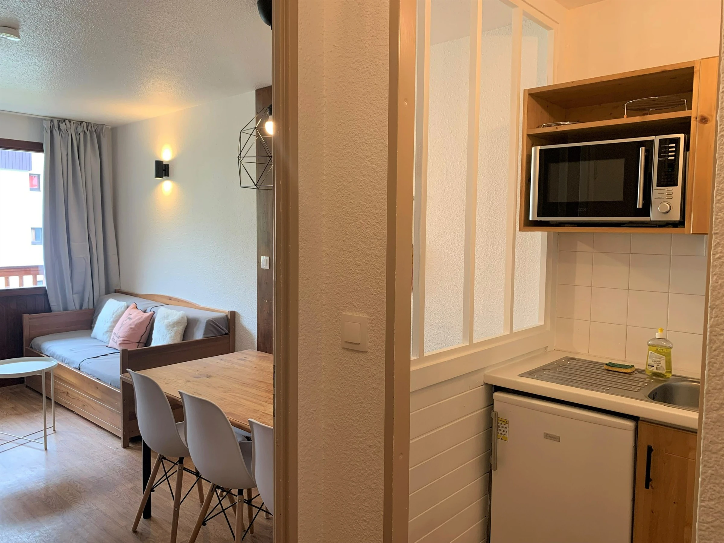 Estudio de 29 m² con cabina para 4 personas, ubicado en la 2.ª planta con ascensor de la residencia "Hameau du Borsat 3", con acceso directo a las pistas de esquí, en Tignes Val Claret.