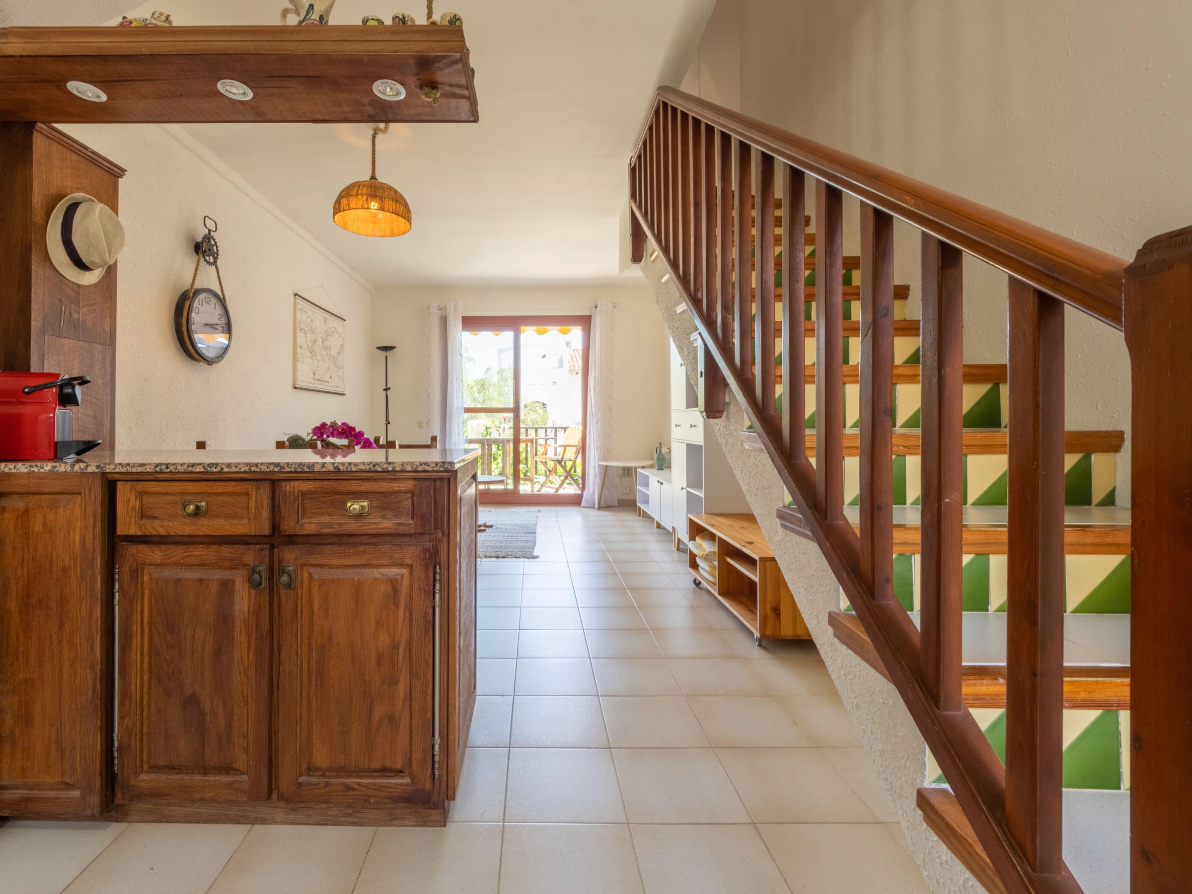 "Terra Alta", casa adosada 4 estancias 67 m2. Vivienda adecuada para 2 adultos + 2 niños. Con mobiliario funcional y agradable: salón-comedor. Salida a la terraza-jardín. Cocina abierta (4 fogones, tostadora, hervidor de agua eléctrico, microondas, cafetera eléctrica, Cápsulas de café (Nespresso) extra). Ningún tipo de calefacción. Planta superior: 1 dorm. doble con 1 cama de matrimonio (1 x 140 cm, 190 cm de longitud). 1 dorm. con 1 cama-nido (2 pers. 2 x 90 cm, 190 cm de longitud). Baño/WC. Planta superior 2: altillo con TV digital. Salida a la terraza. Terraza-jardín. Vista a la piscina y al jardín. El alojamiento dispone de: lavadora, plancha, secador de pelo. Internet (Wifi, gratis). A tener en cuenta: adecuado para familias. Casa para no fumadores. TV solamente ES. [hidden]