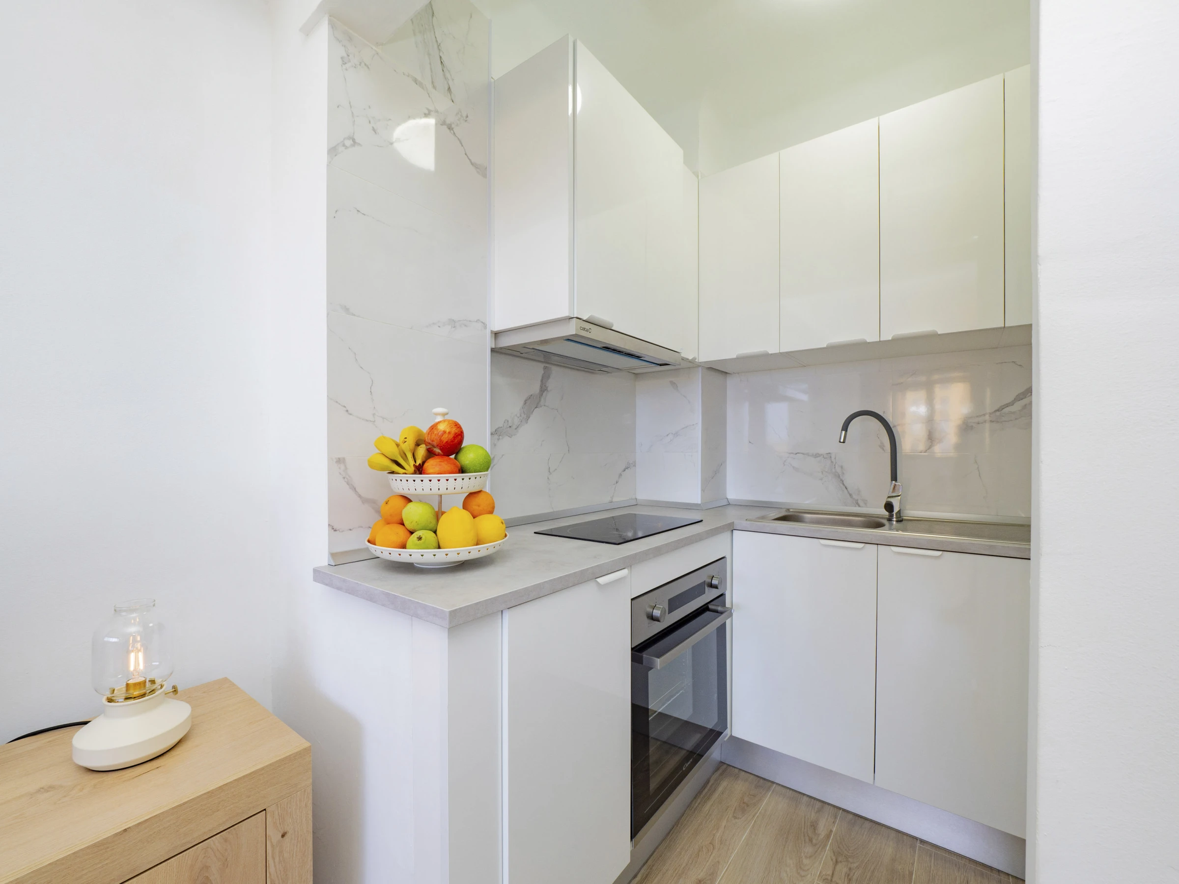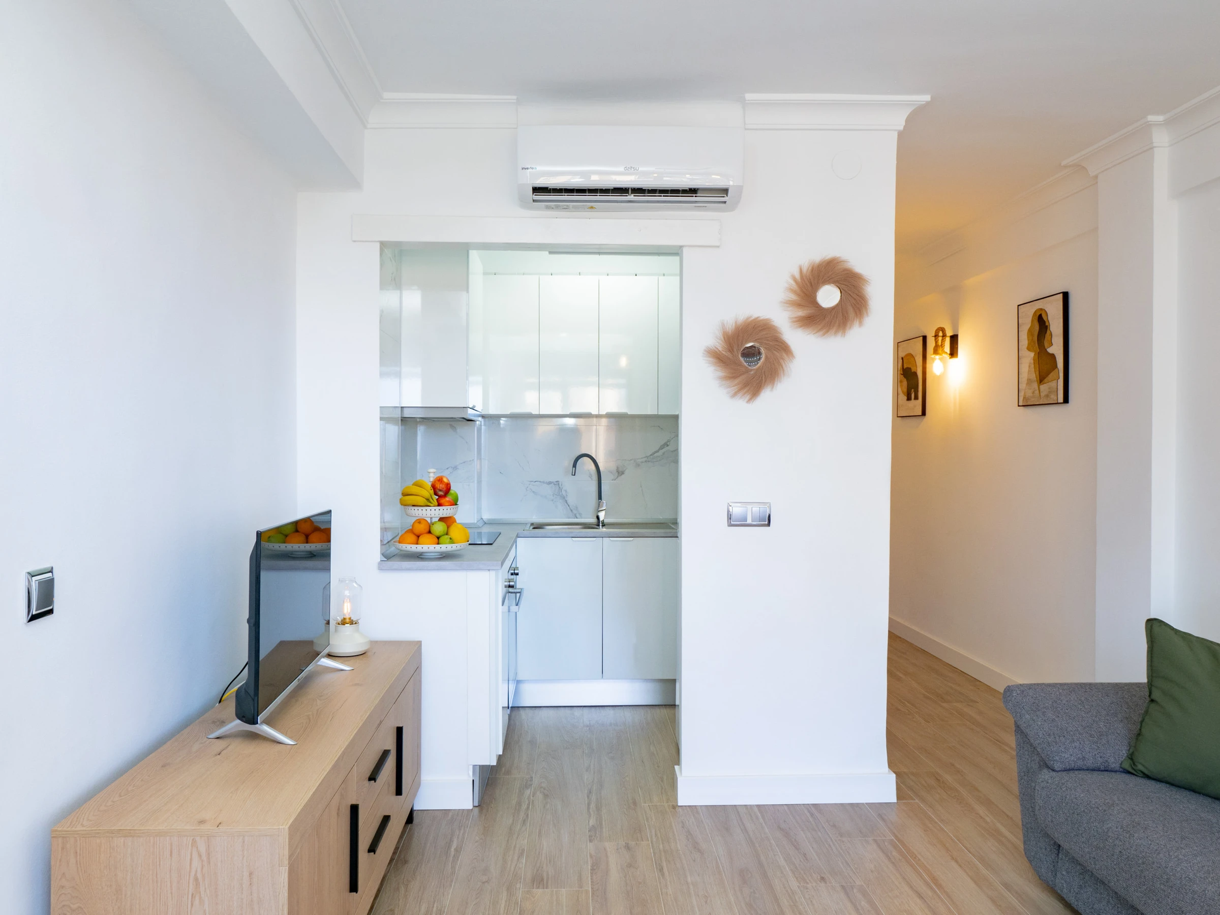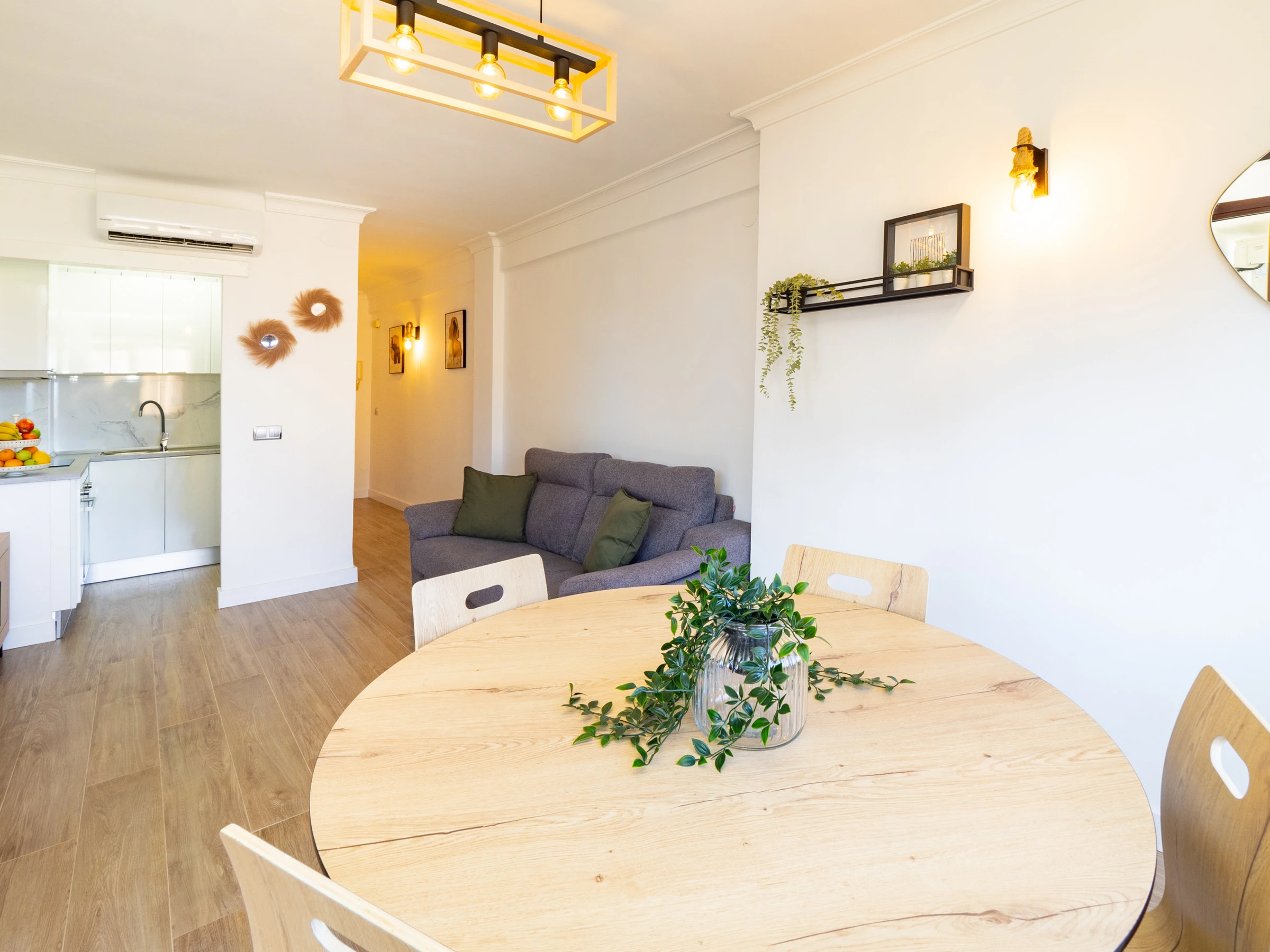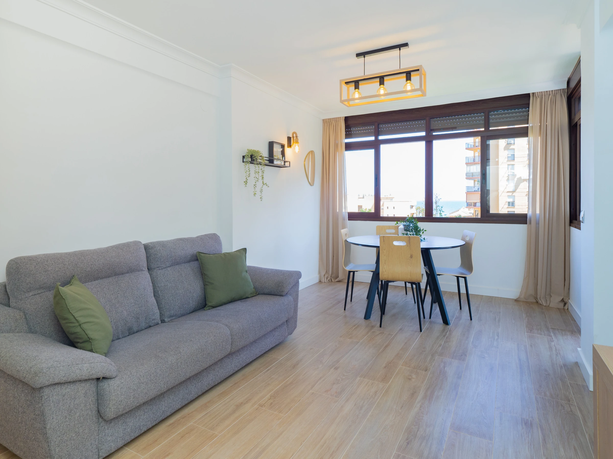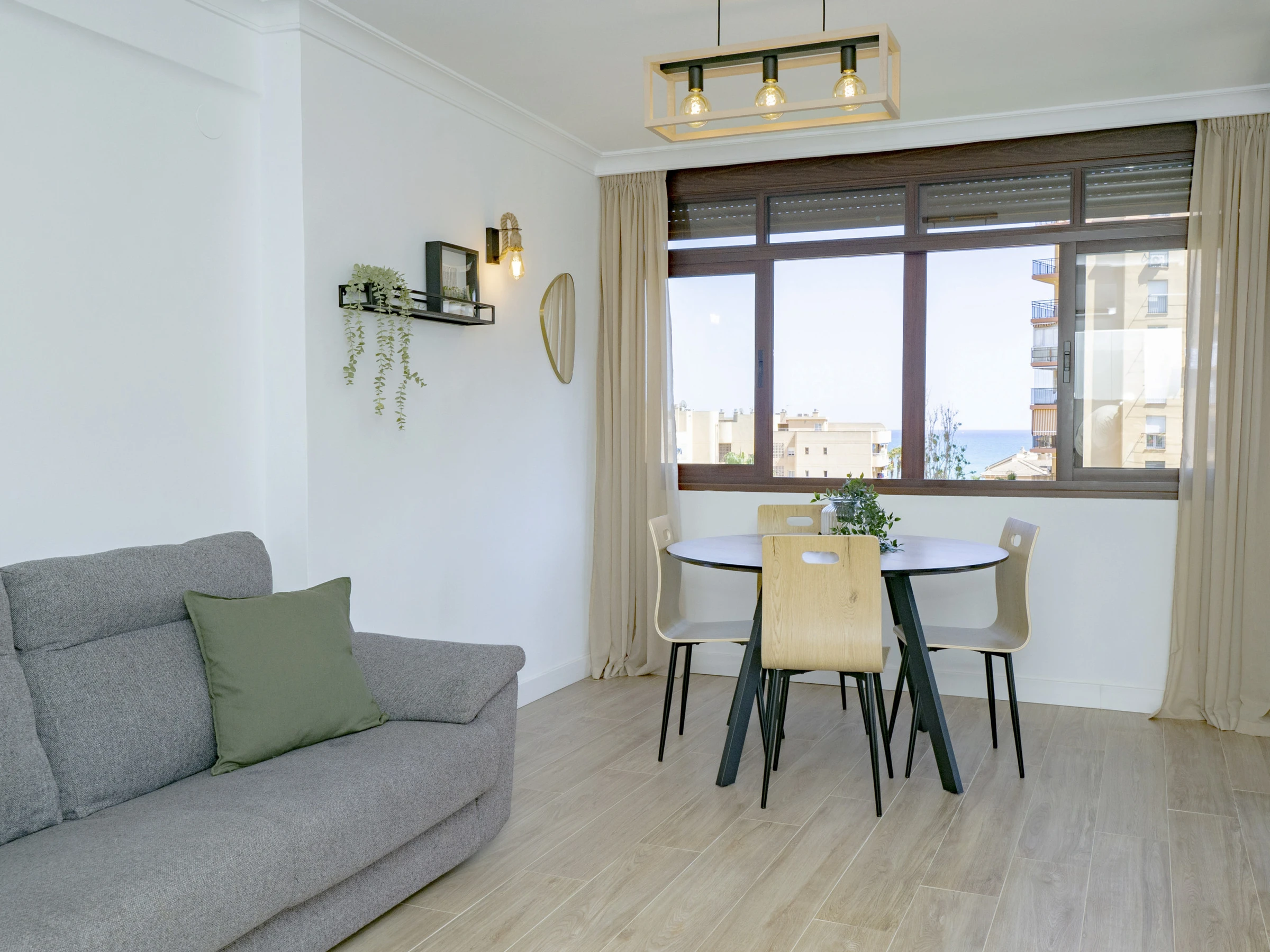El apartamento cuenta con una orientación sur que permite disfrutar del sol de la mañana y unas preciosas vistas al mar desde su terraza de 4 m², ideal para relajarte con un café o una copa al atardecer. Su interior es amplio y luminoso, con un salón comedor acogedor y una cocina independiente totalmente equipada con vitrocerámica, nevera, microondas, horno, congelador, cafetera, tostadora, exprimidor y todo lo necesario para preparar tus comidas con comodidad.