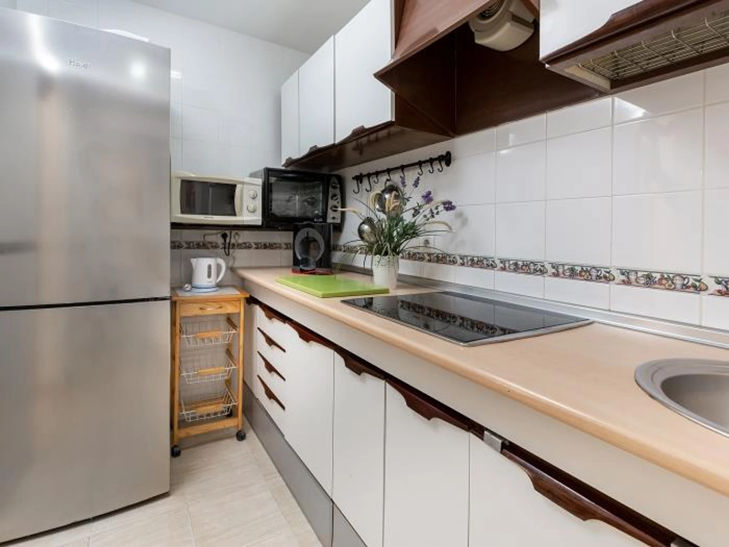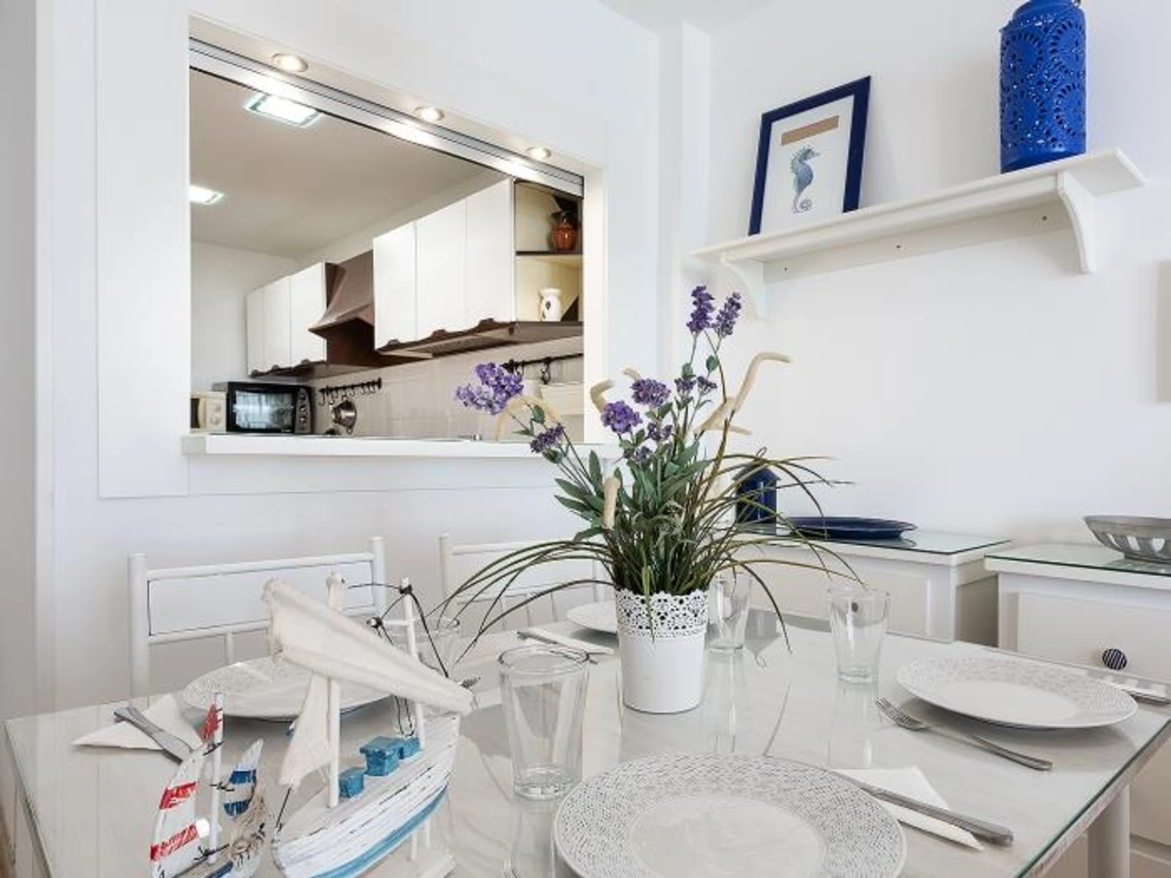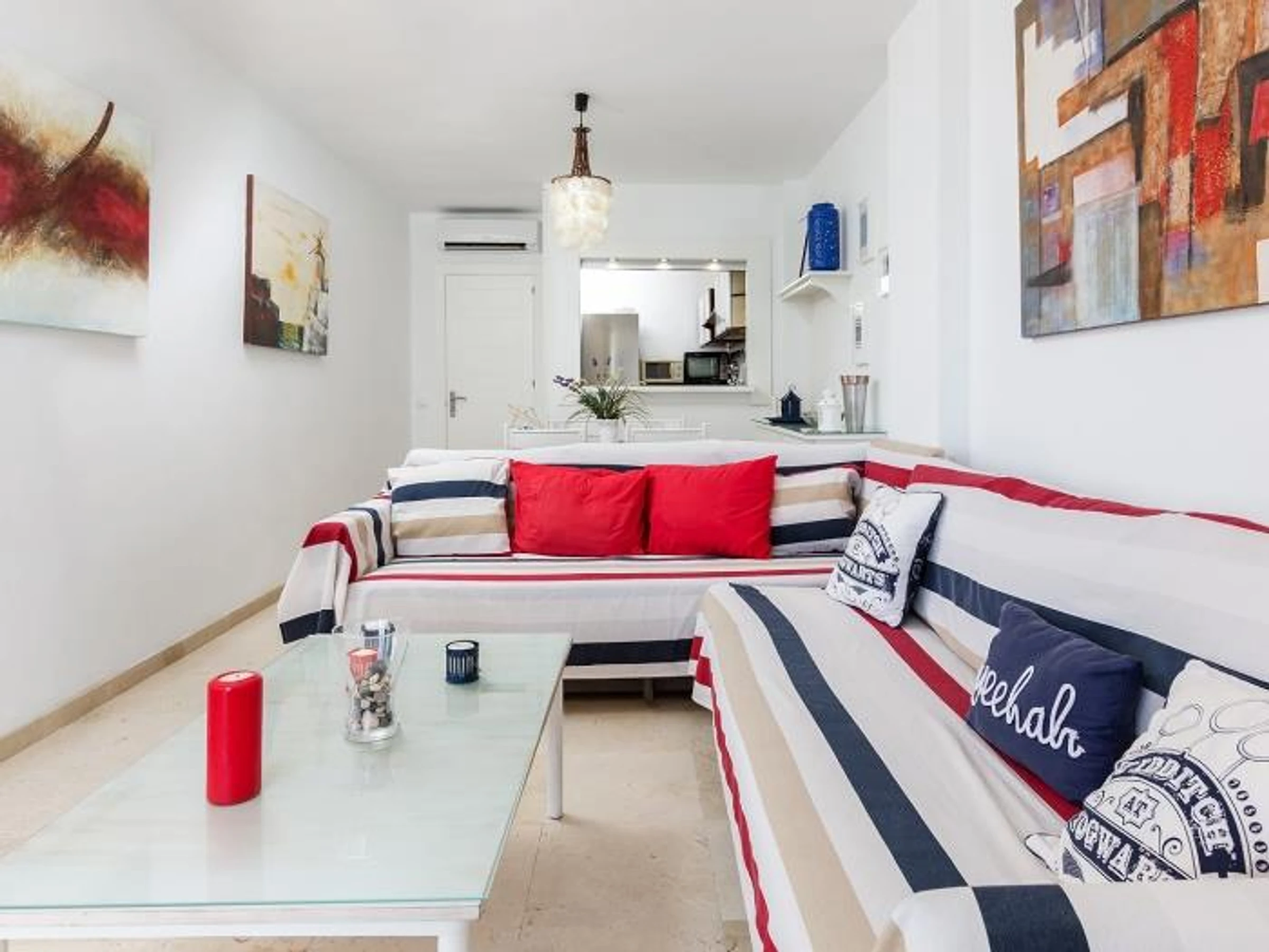 Ademas dispone de una cocina totalmente equipada y un amplio salón con sofá cama donde poder disfrutar de un descanso o una reunión familiar o de amigos.