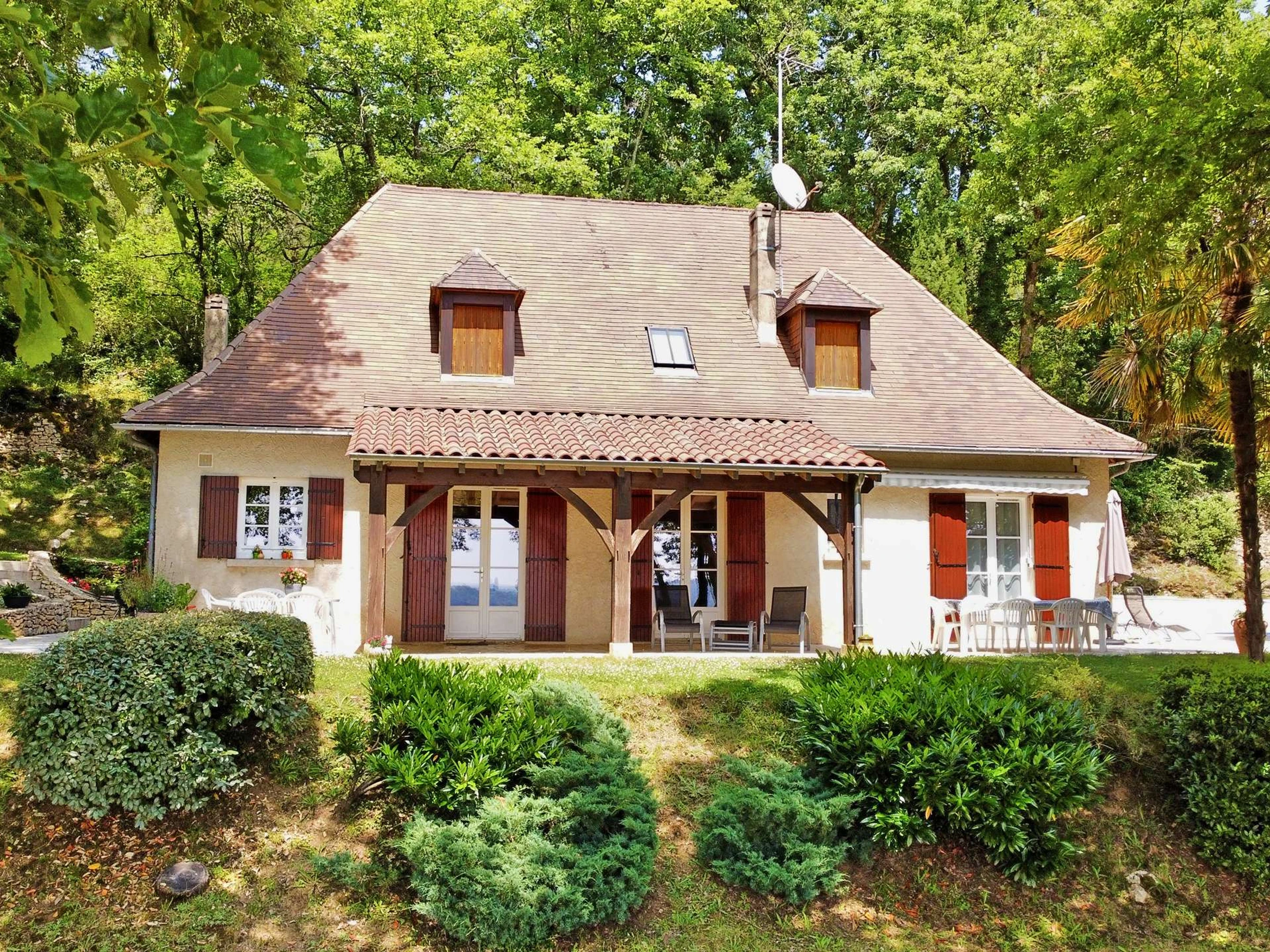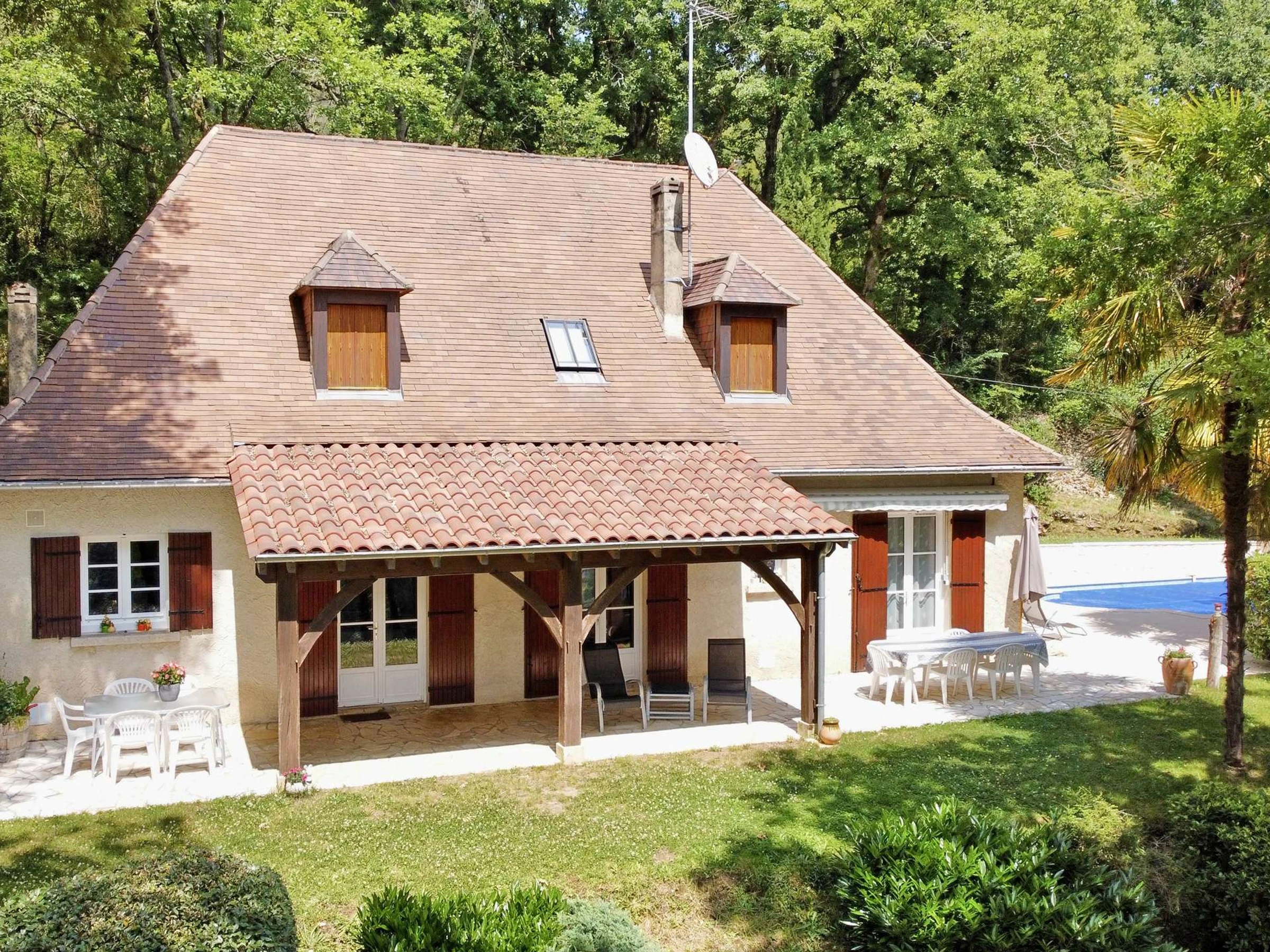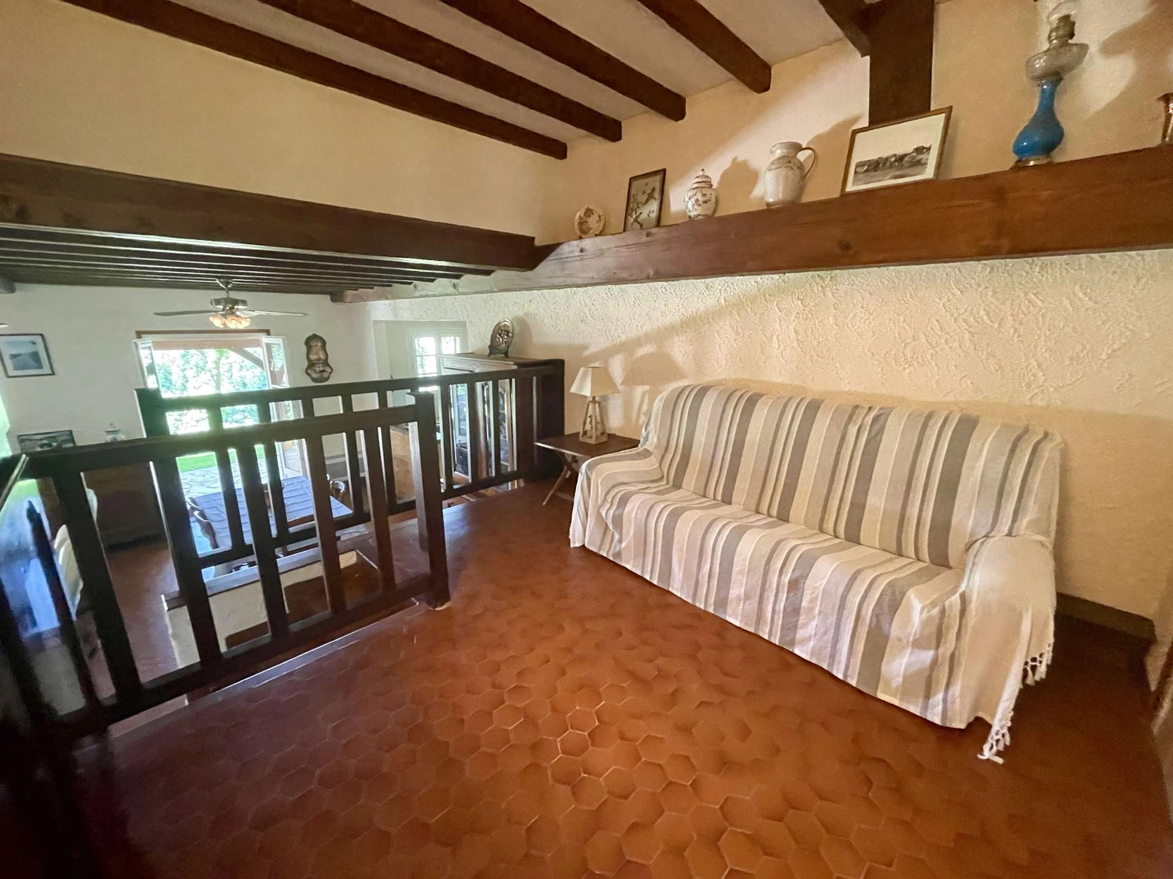 Al entrar en la casa, se accede a la cocina, que se abre al salón con una segunda zona de estar en el entresuelo. Unas puertas francesas dan a la terraza cubierta, con vistas al valle del Dordoña.