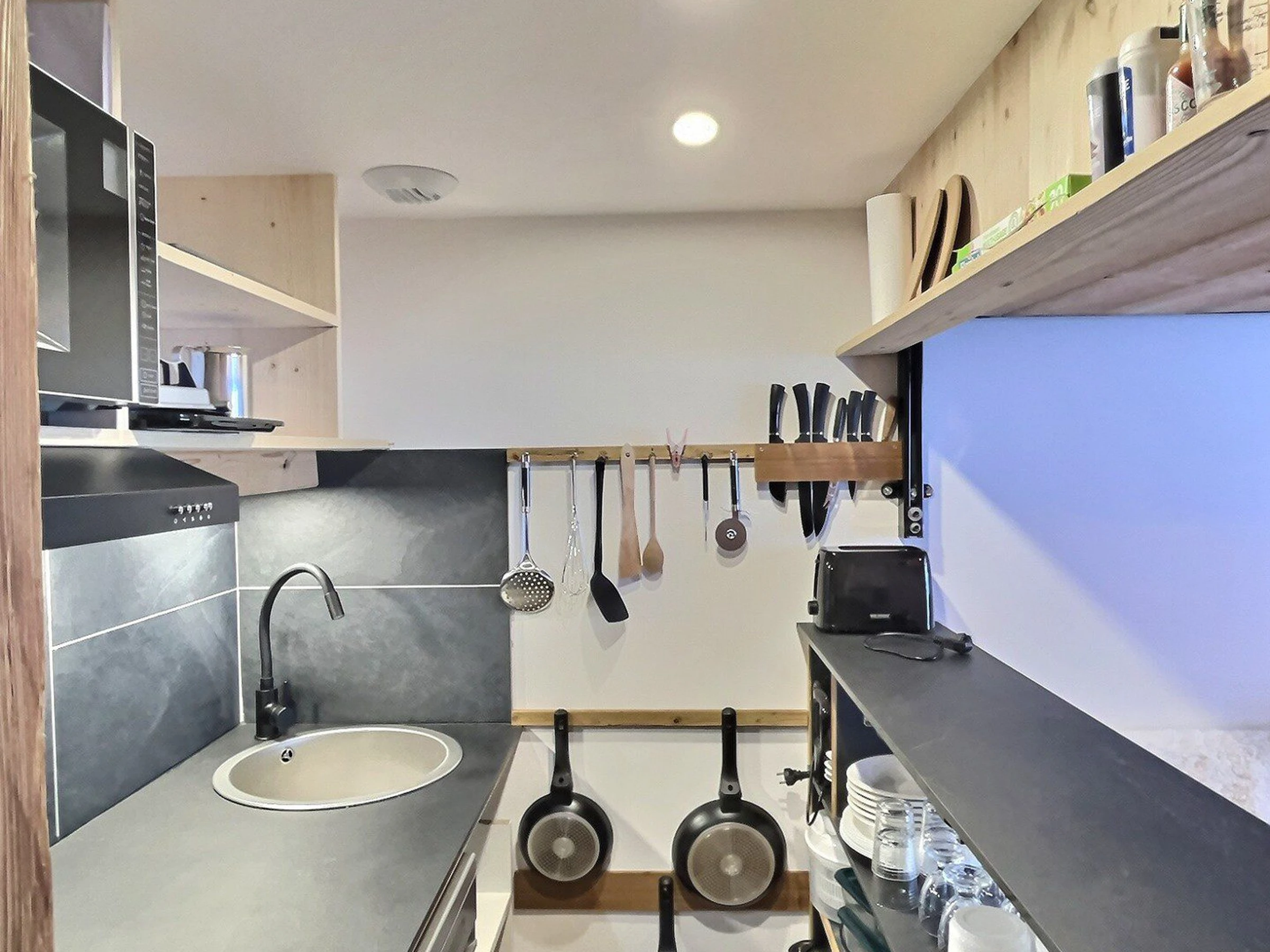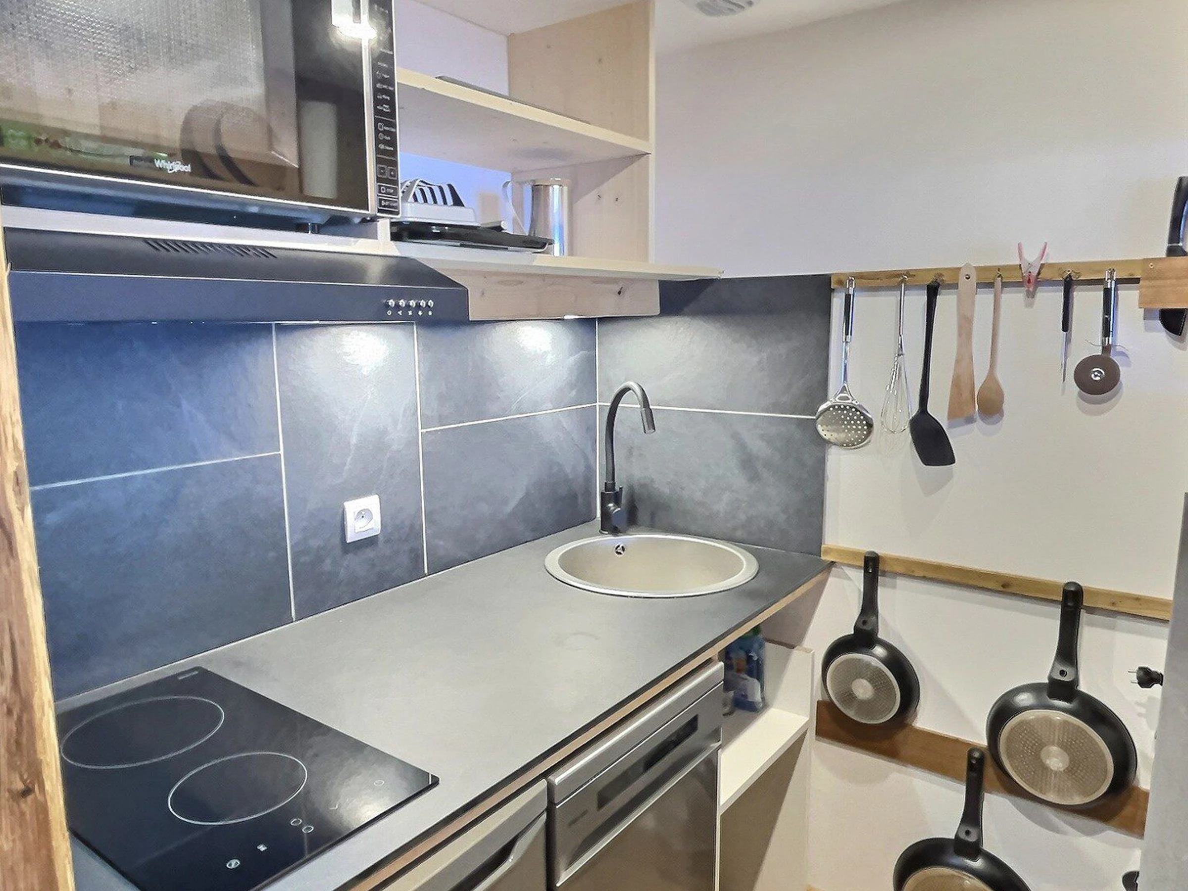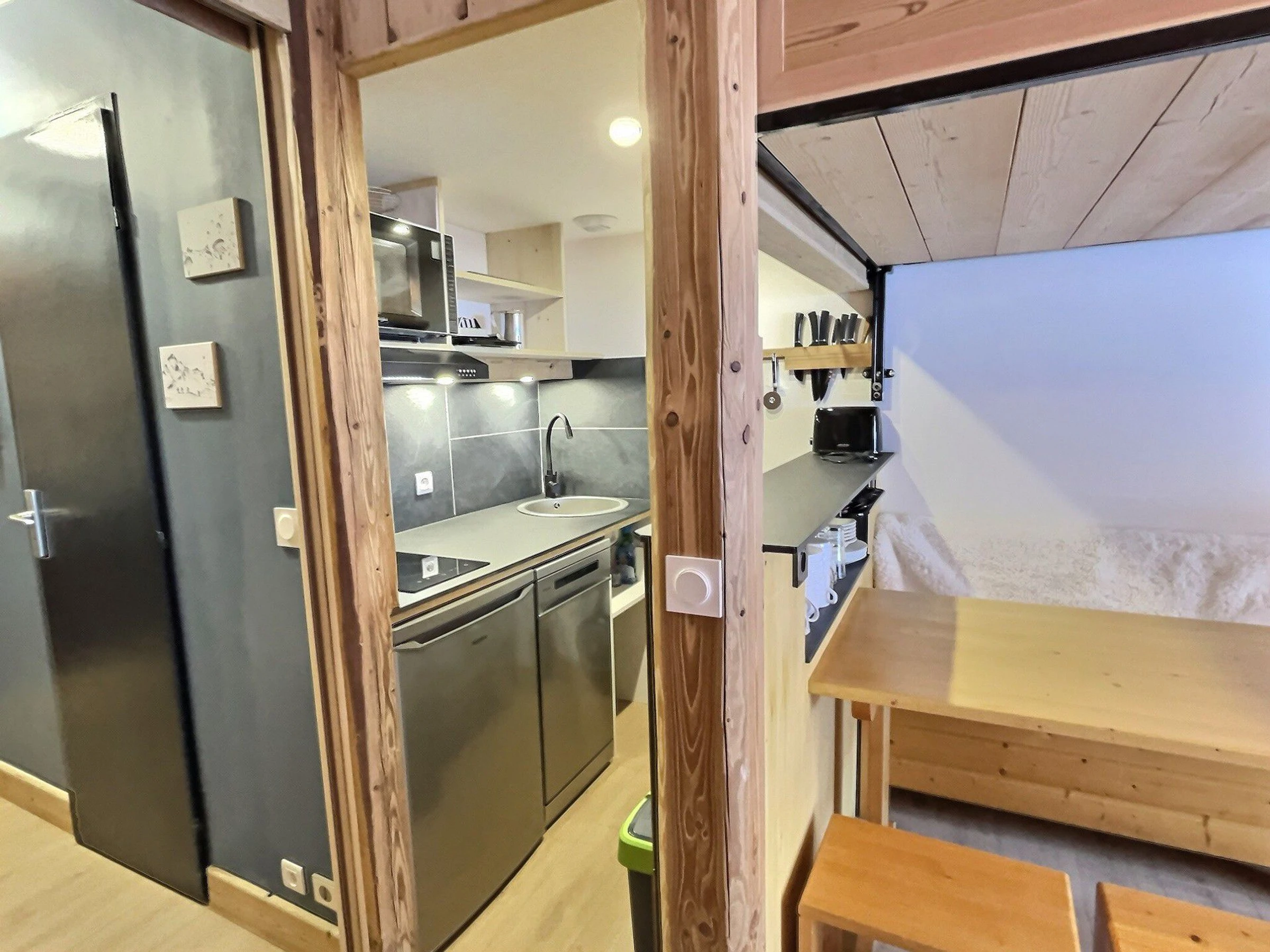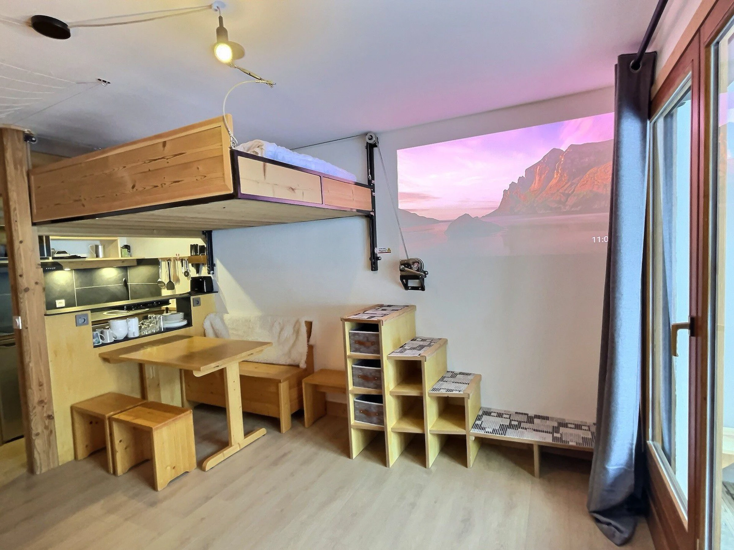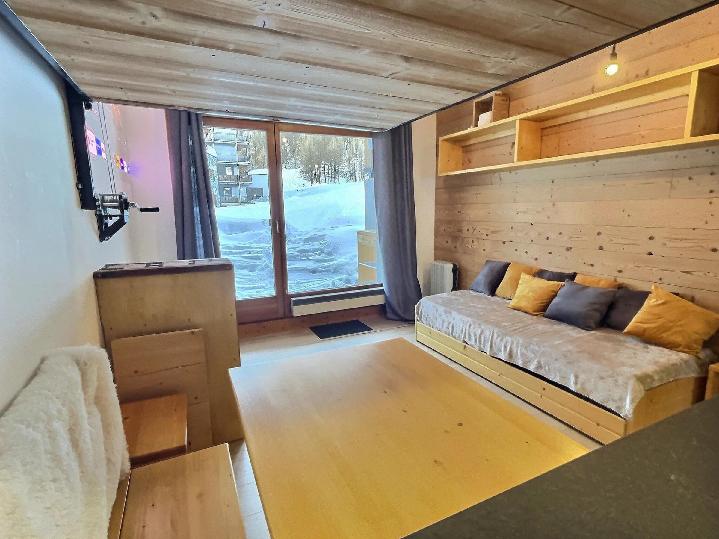 Para disfrutar de sus vacaciones de invierno o de verano en Val d’Isère, reserve este cómodo estudio con una zona de dormitorio adicional y un balcón orientado al este con vistas a las montañas.