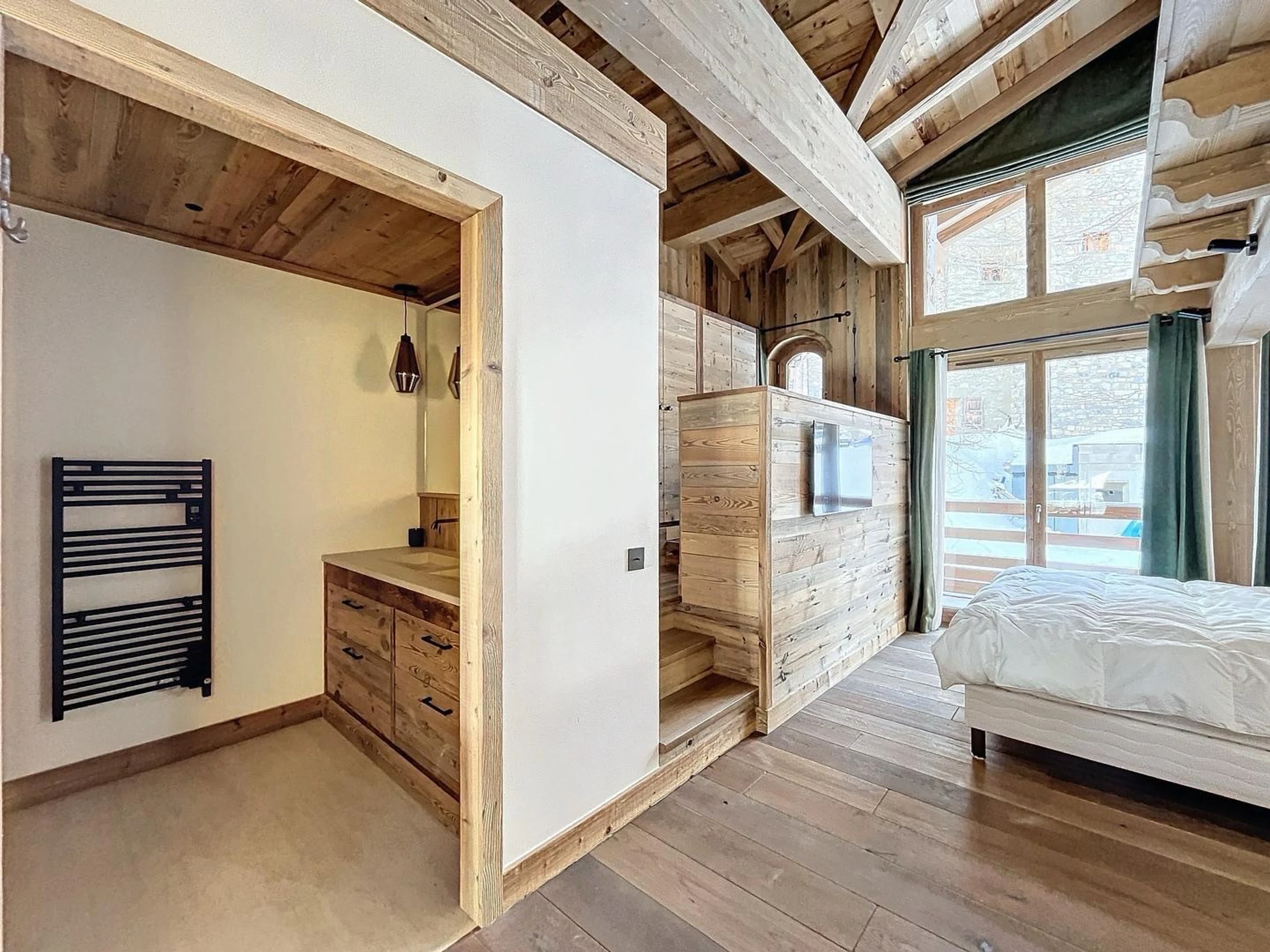 Situado a 900 m del centro del pueblo, cerca de la calle principal. El acceso a los remontes se realiza mediante el autobús lanzadera (Train Rouge) que para a unos 100 m. Se puede volver al chalet esquiando por el Chemin des Côves.