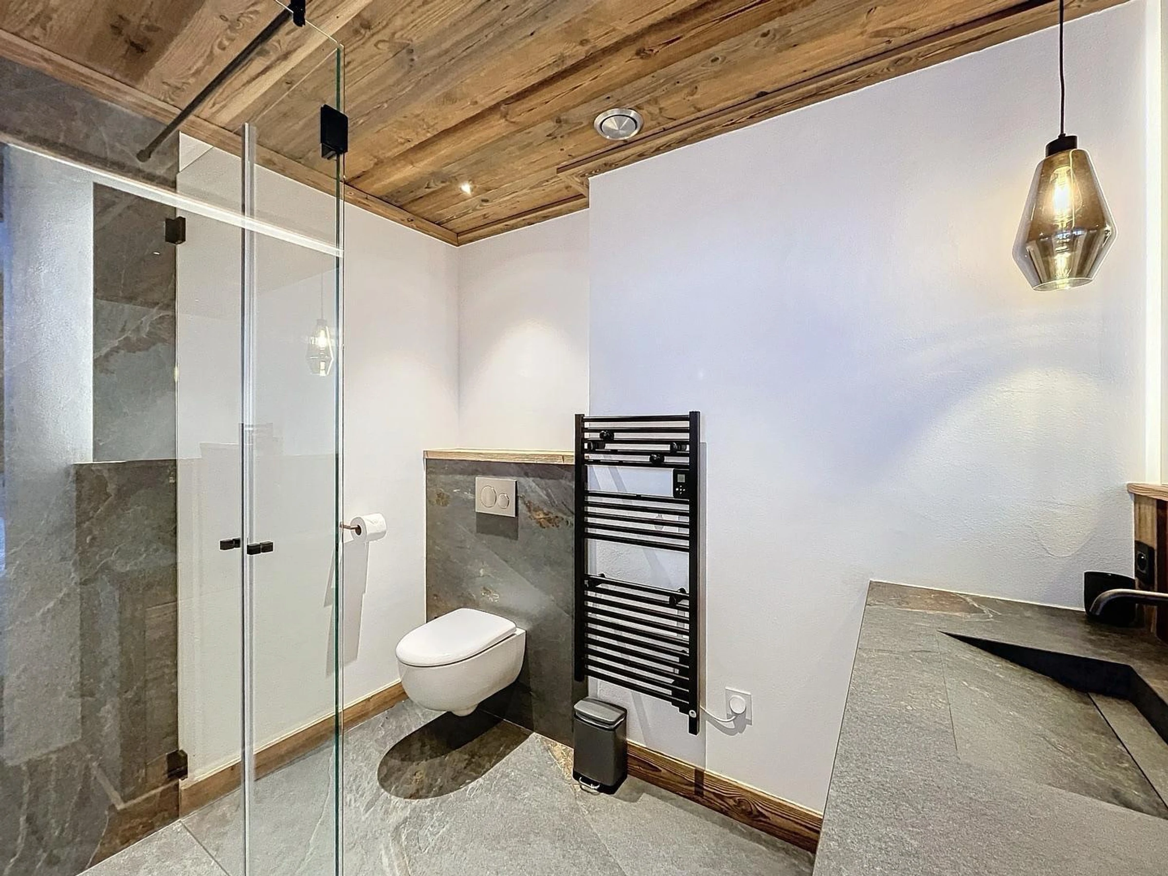 2 baños con ducha, WC, lavadora y secadora. 1 baño compartido con ducha. 1 aseo independiente.