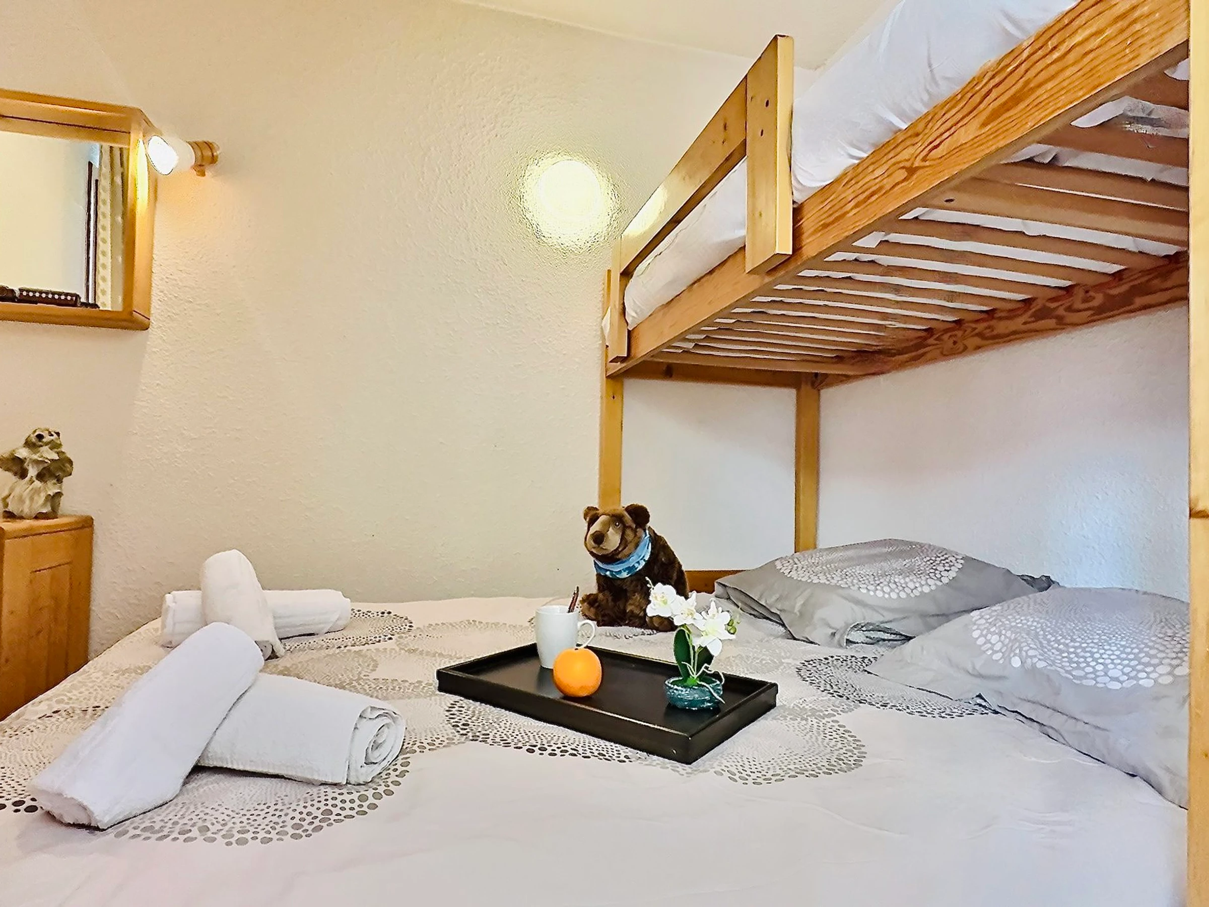 Para sus vacaciones de esquí o de verano en Val d'Isère, reserve este apartamento de 3 habitaciones con balcón orientado al oeste y hermosas vistas a la montaña, el valle y las pistas.