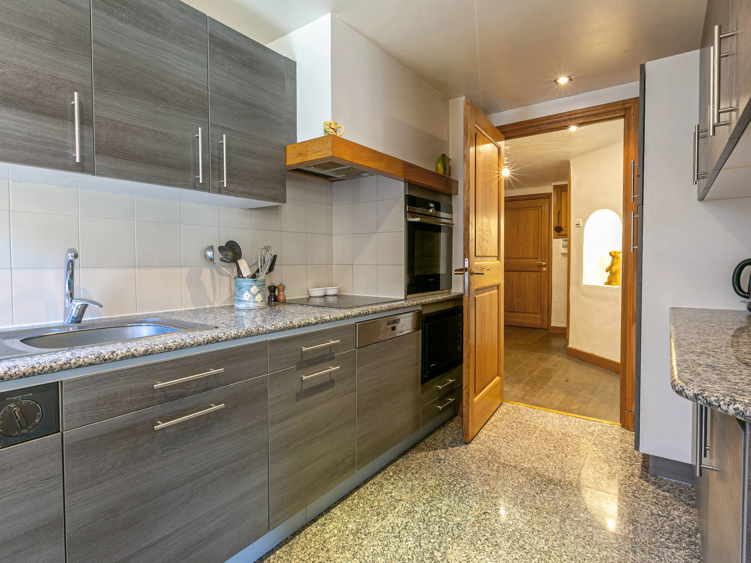 Totalmente equipada con lavavajillas, horno, microondas, placa de inducción, campana extractora, frigorífico con congelador, lavadora y secadora.