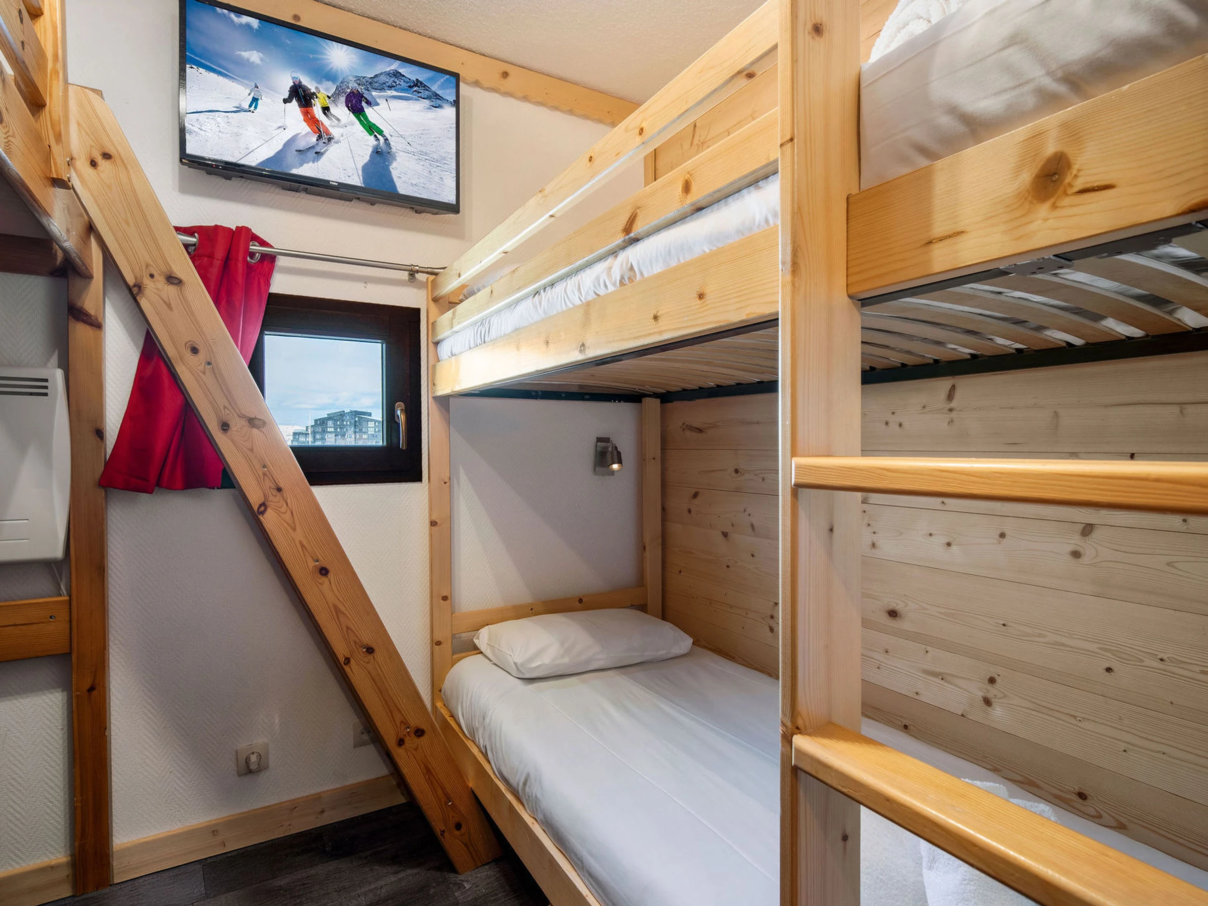 Apartamento con acceso directo a las pistas de esquí, situado en la primera línea de nieve de Val Thorens, en la 3.ª planta de una pequeña y tranquila residencia.
