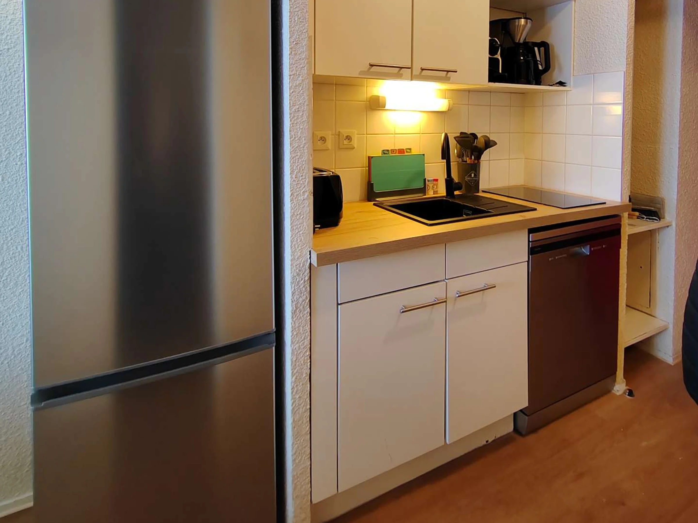 - Una cocina muy bien equipada con un amplio frigorífico con congelador, un armario alto con horno y microondas, tostadora, hervidor de agua, cafetera Nespresso y 6 sillas de madera resistentes + una mesa extensible.