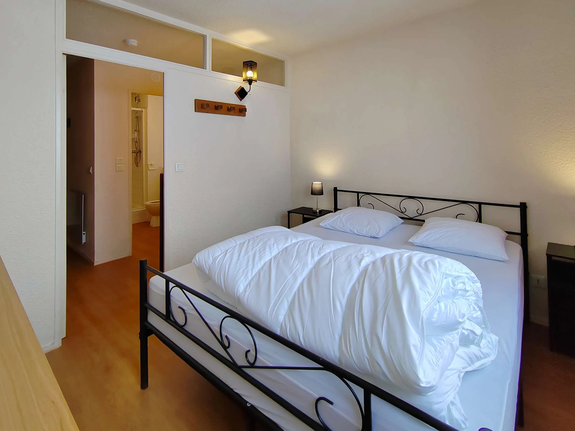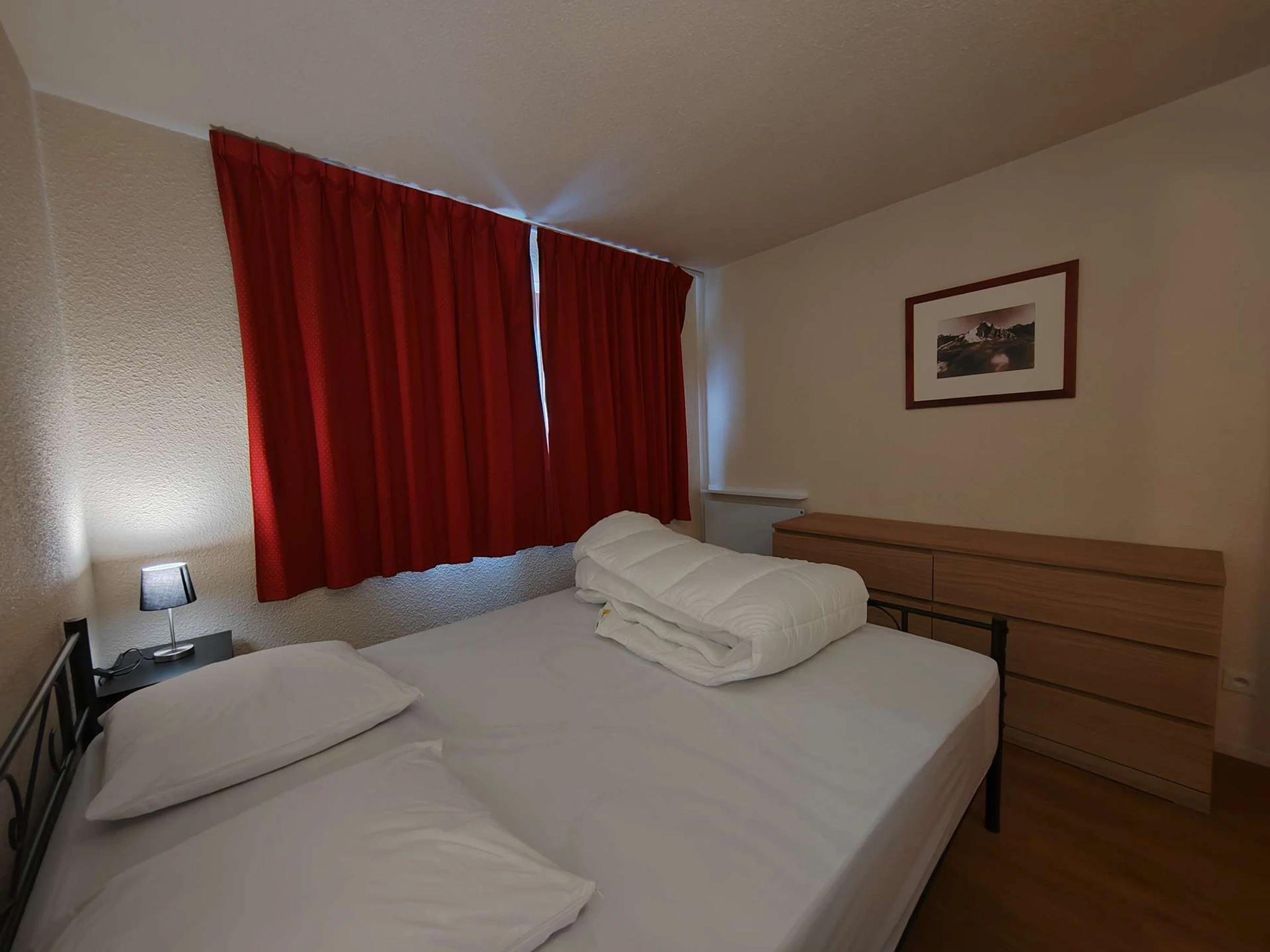 - Un amplio dormitorio con una cama de 160 x 200 cm, mesitas de noche con puertos USB y enchufes estándar, y una cómoda grande.