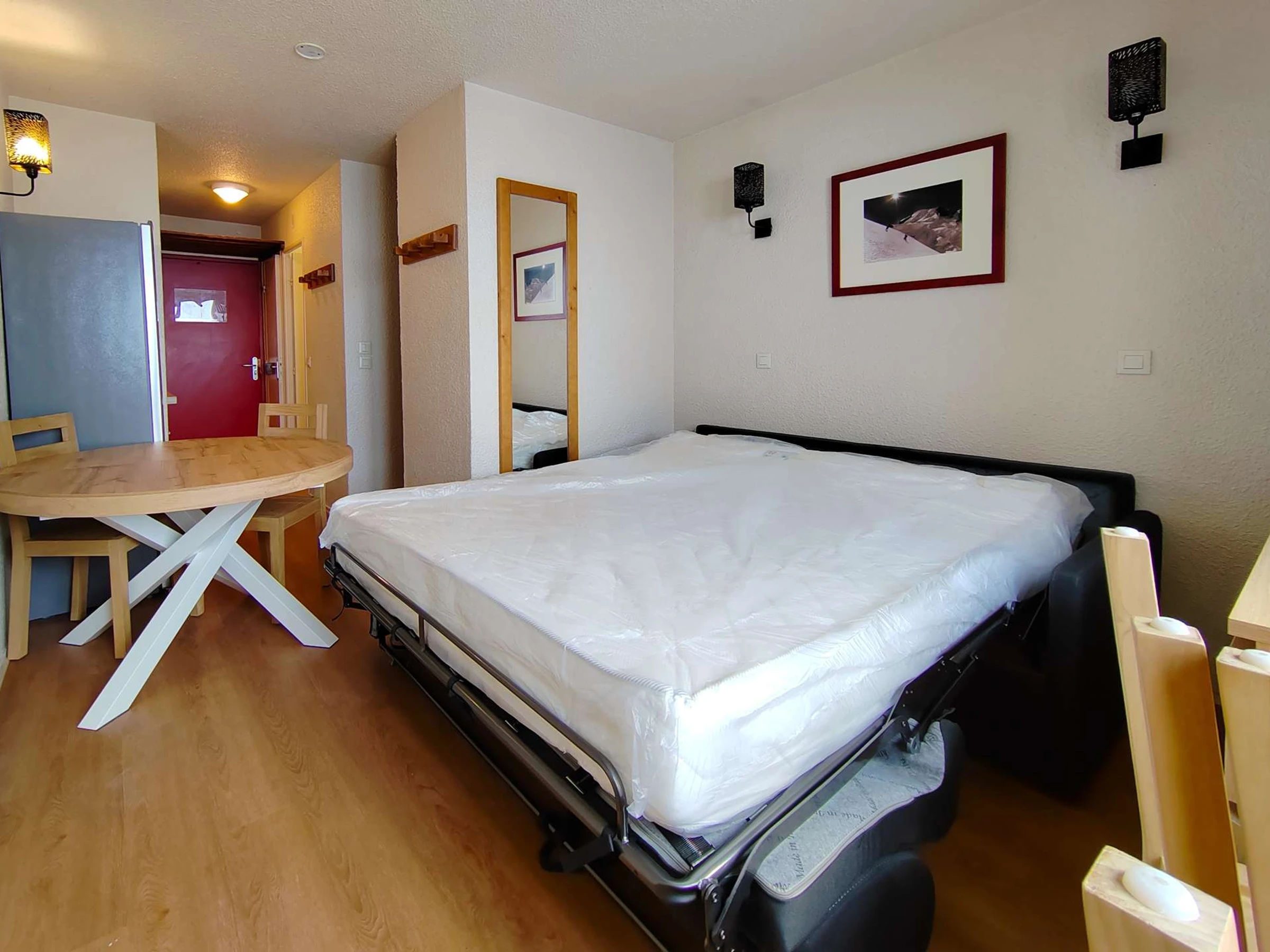 - Amplio salón con sofá cama convertible en cama de 160 x 190 cm y Smart TV.