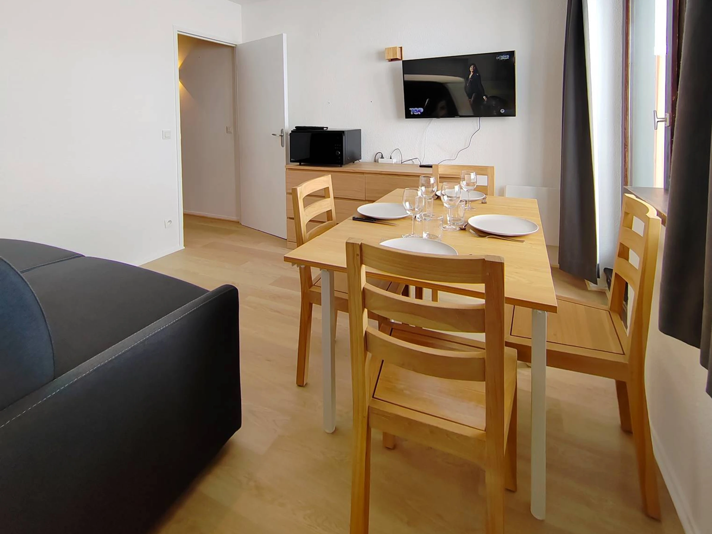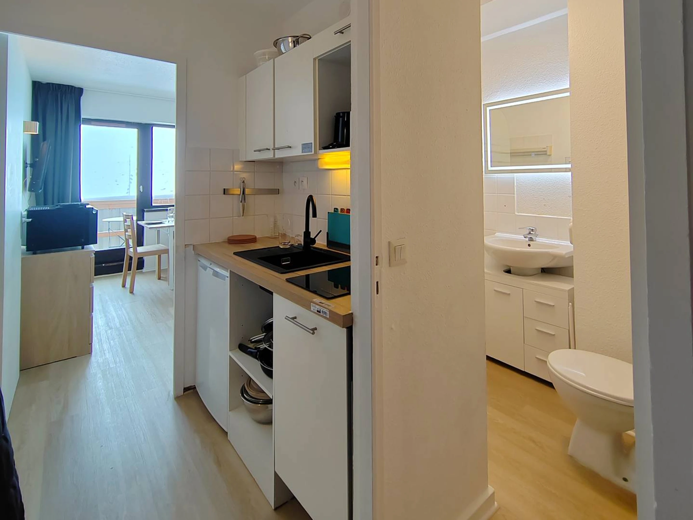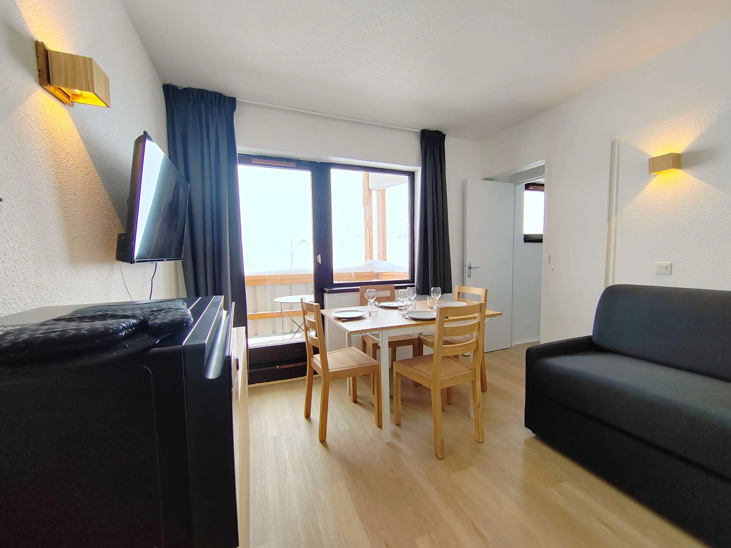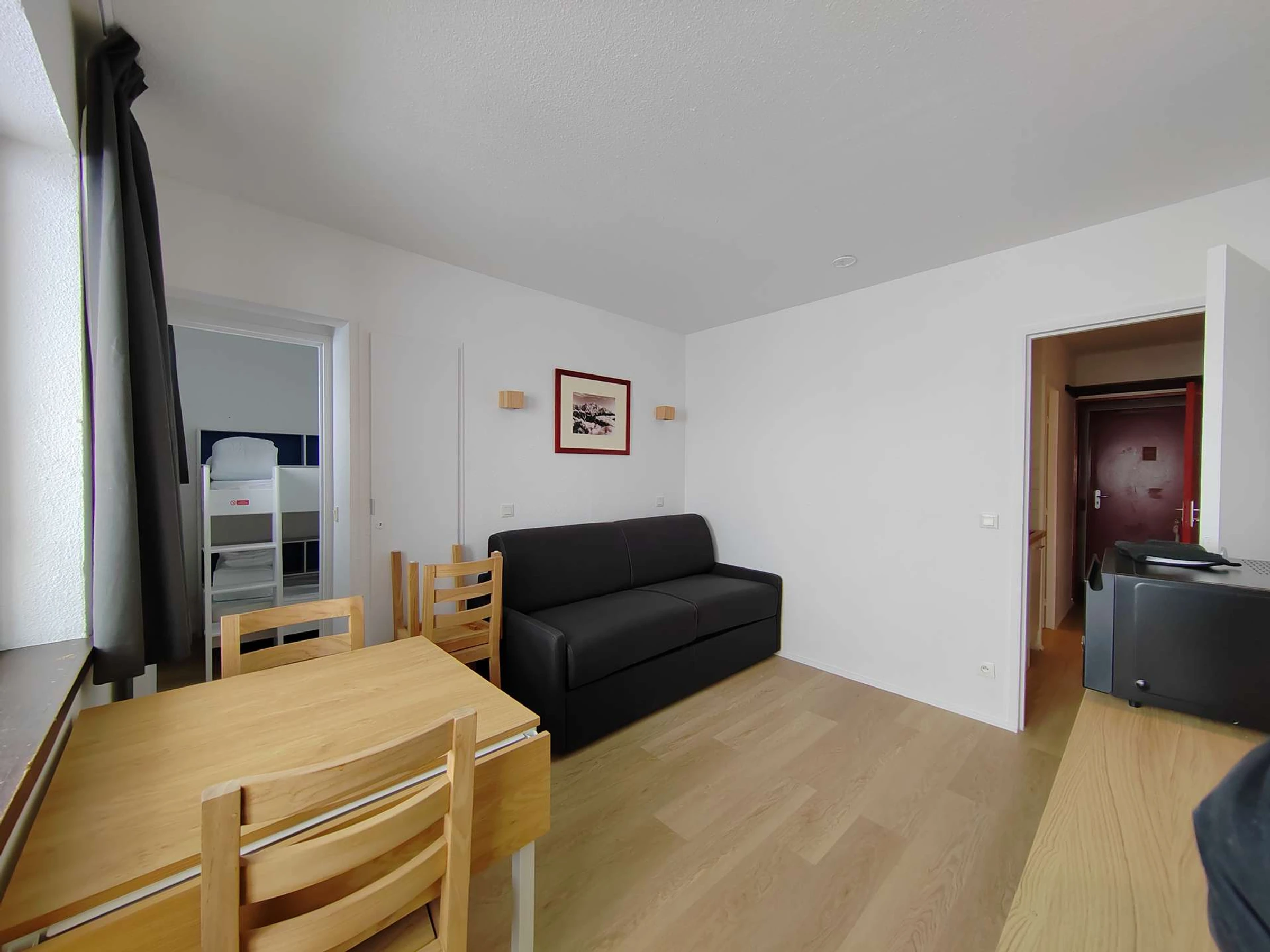 Encantador apartamento de 26 m² para 4 personas, bien equipado, con balcón y mobiliario de jardín, situado a pie de pistas y con acceso directo a las pistas. En la planta baja del edificio encontrará alquiler/venta de material de esquí, un minimercado, bares y restaurantes.