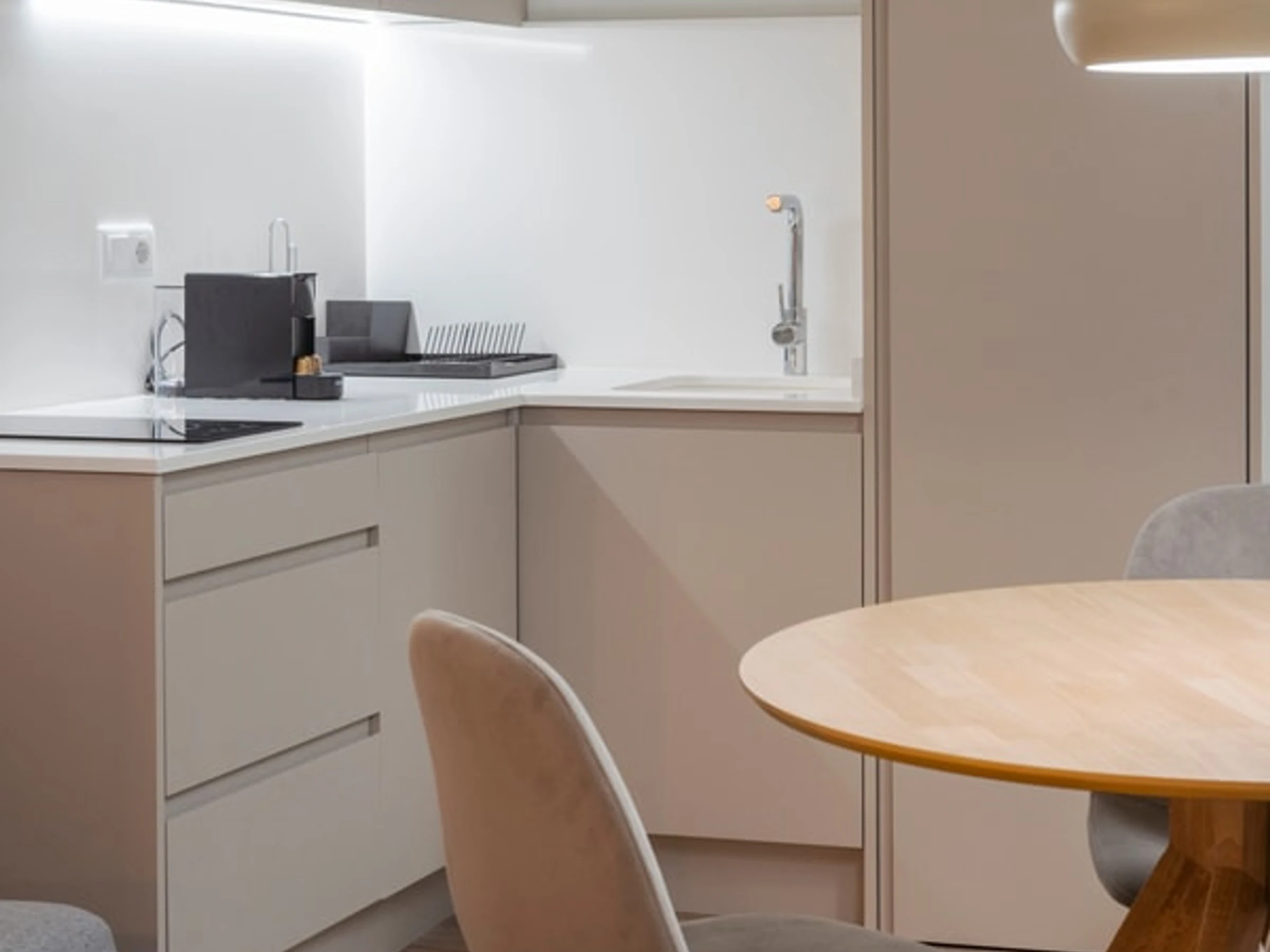 Este espacio de vida contemporáneo es un refugio urbano ideal para viajeros solos o parejas que buscan una estancia elegante y cómoda.
