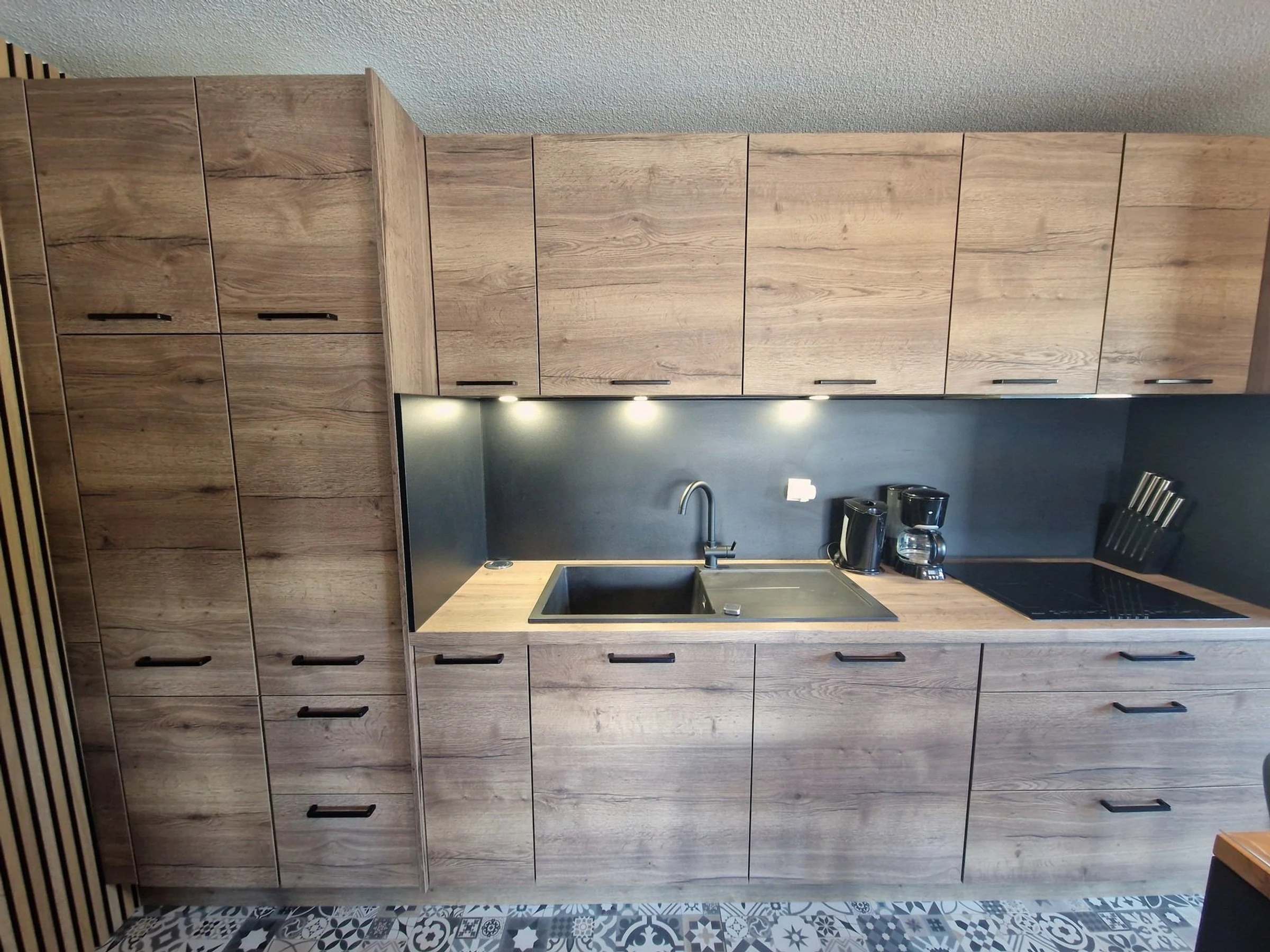 - Cocina con 4 placas eléctricas, frigorífico, horno, microondas, lavavajillas y amplios armarios.
