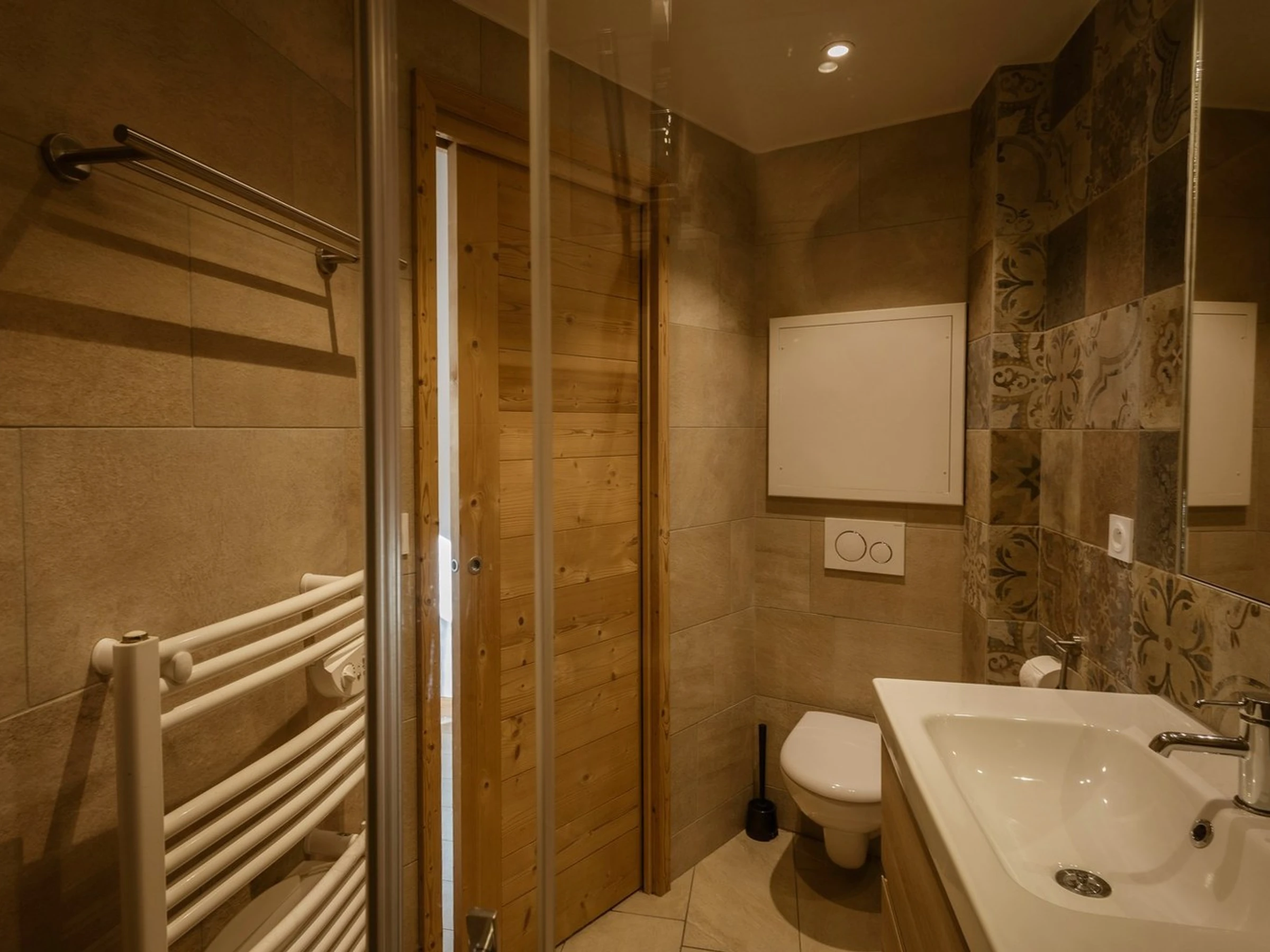 2 cuartos de baño privados (dormitorios 1 y 2): lavabo, ducha, secador de pelo e inodoro.