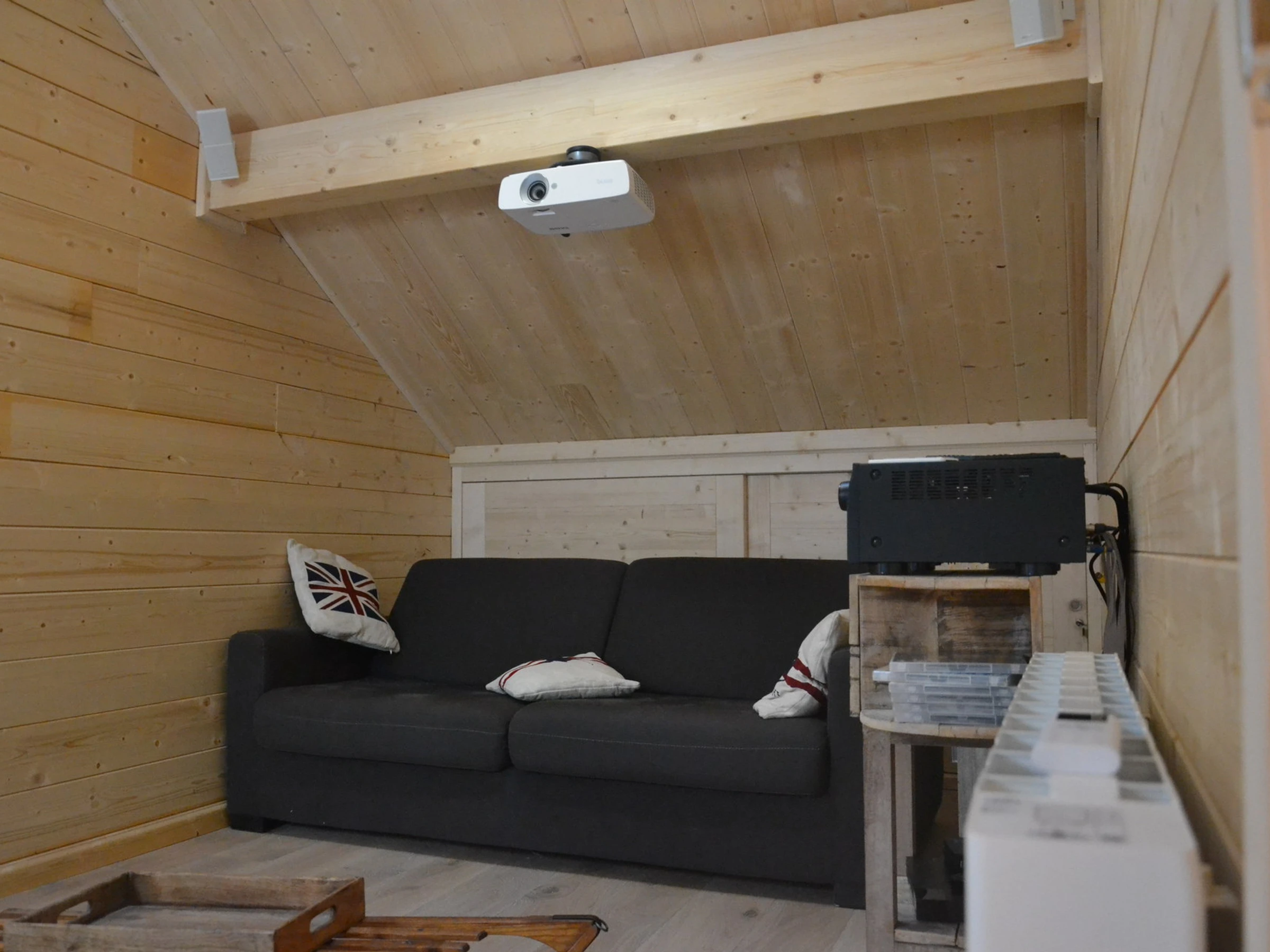 Dormitorio 3 (Planta +1/12 m²): 1 sofá cama doble (140 x 190 cm) + home cinema/videoproyector