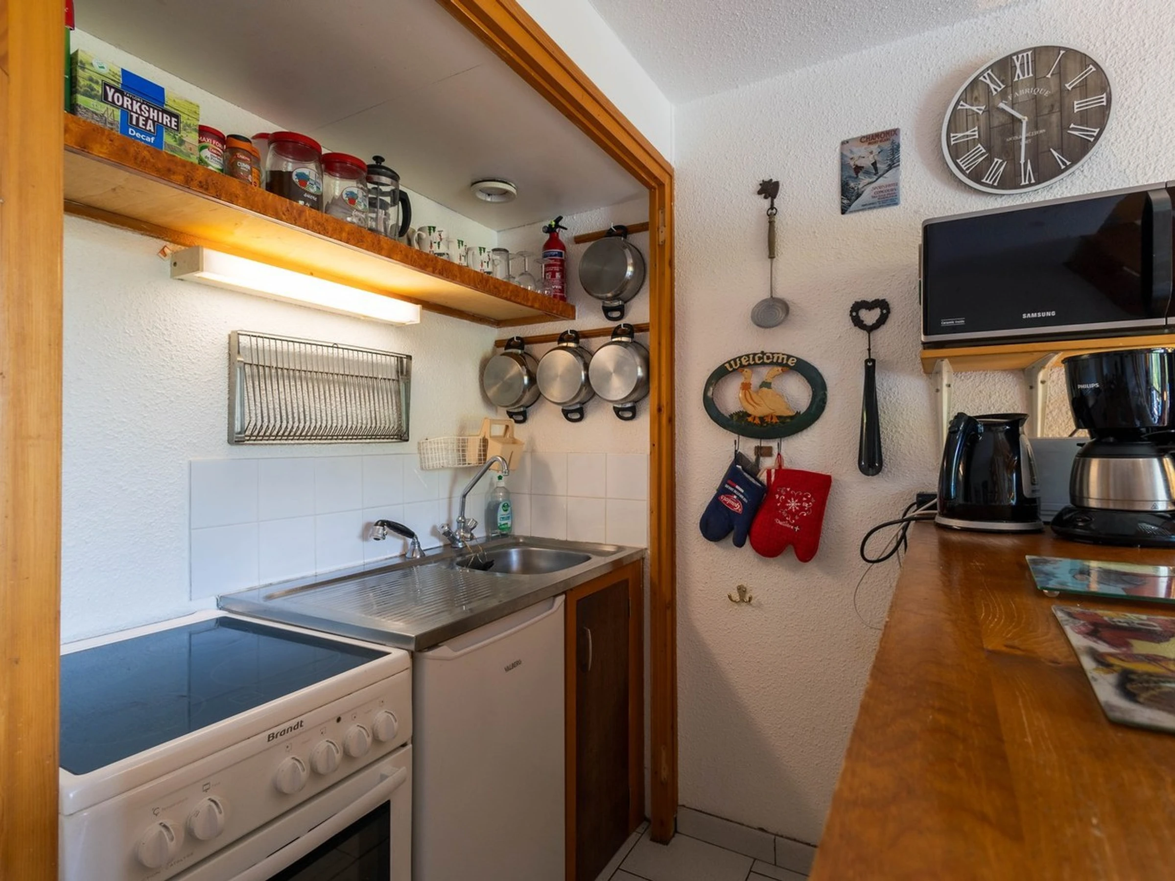 - Cocina: placa eléctrica (3 fuegos), horno, frigorífico (100 L), cafetera, tostadora, hervidor de agua y microondas.