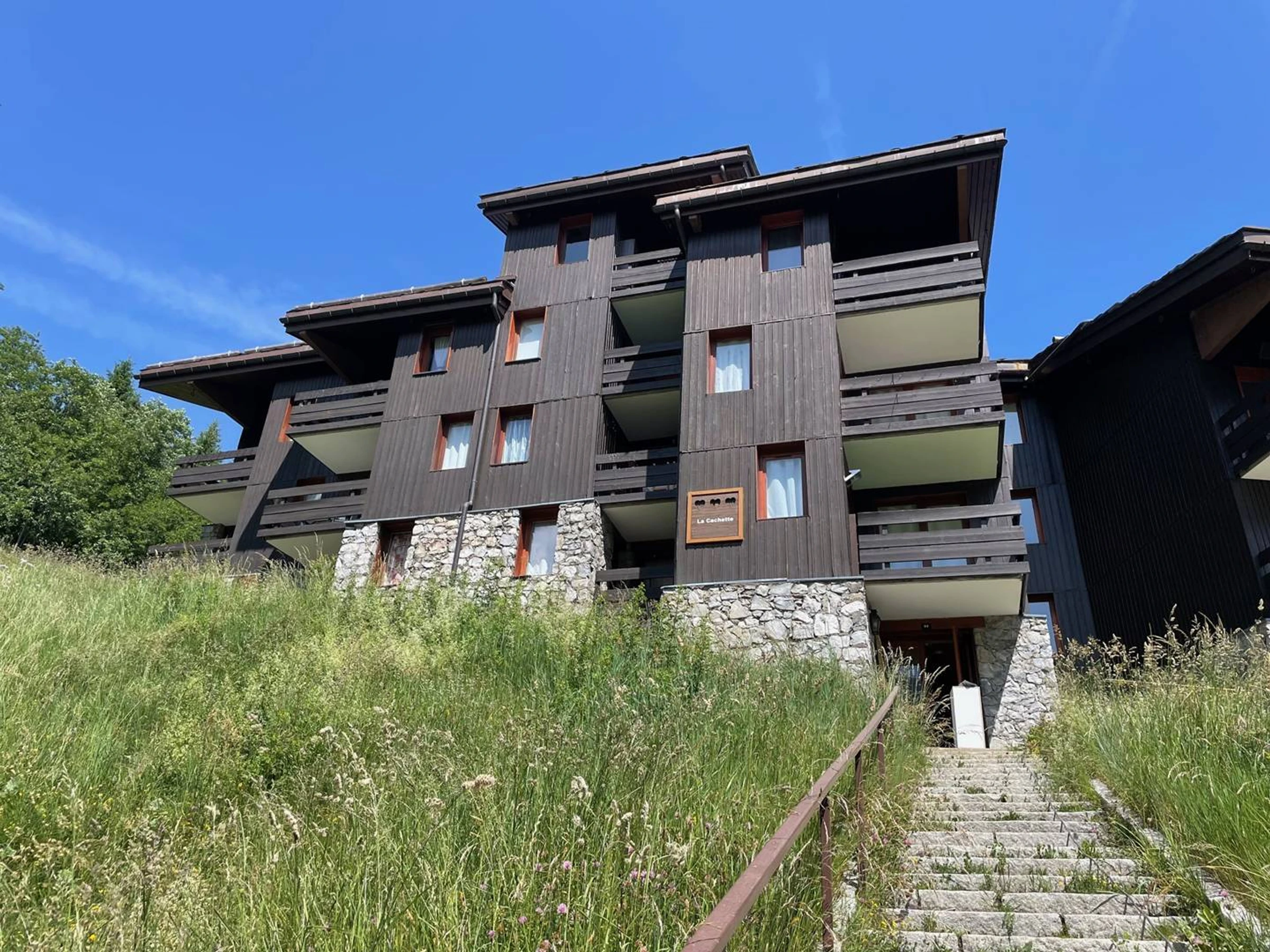 La residencia ''La cachette'' está situada en una zona tranquila de la estación de Valmorel, a 100 metros de las pistas y a 500 metros de los comercios y la guardería (menores de 6 años).