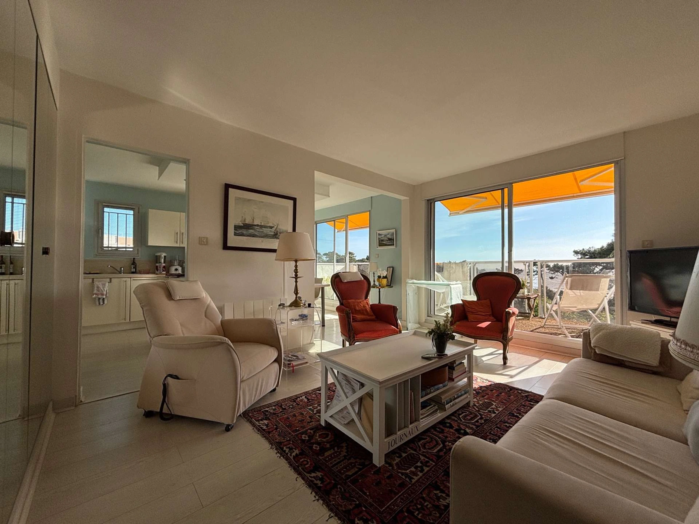 Este elegante apartamento ofrece una experiencia única con impresionantes vistas panorámicas al océano de 180°. Con una ubicación ideal en las afueras de la popular localidad costera de Saint Palais sur Mer, podrá disfrutar de la paz de Vaux sur Mer y sus atracciones turísticas a poca distancia.