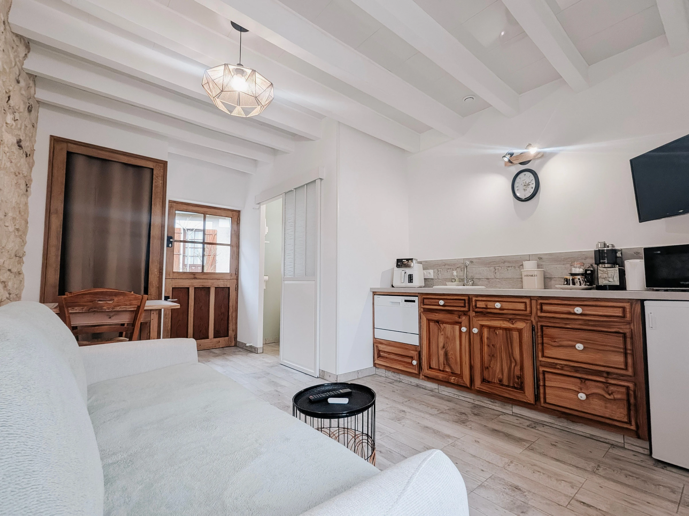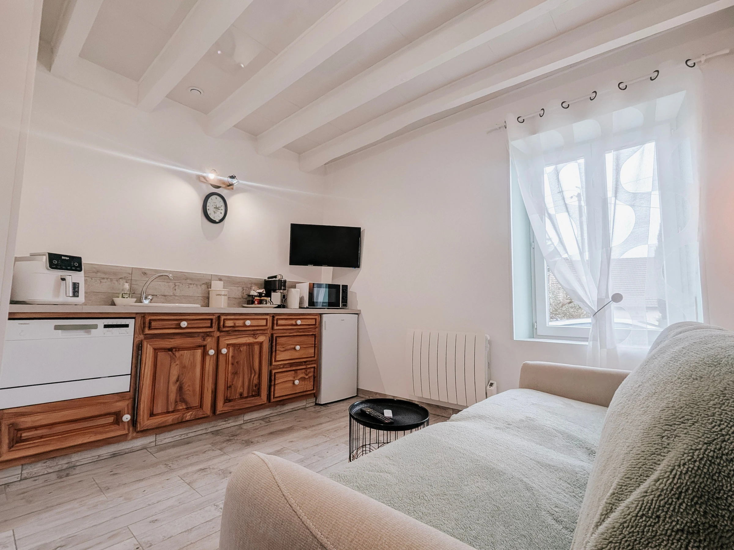 Cerca de allí, el Castillo de Valençay atrae a los amantes del patrimonio, mientras que el Zoológico/Safari de Beauval, uno de los zoológicos más grandes de Europa, es una visita obligada. Un lugar encantador para combinar naturaleza, exploración y una estancia relajante en el norte de Indre. Este estudio ofrece un espacio práctico y cómodo para una estancia independiente. Consta de una sala principal con sofá cama, comedor y utensilios básicos para preparar comidas, además de un baño independiente con ducha e inodoro.