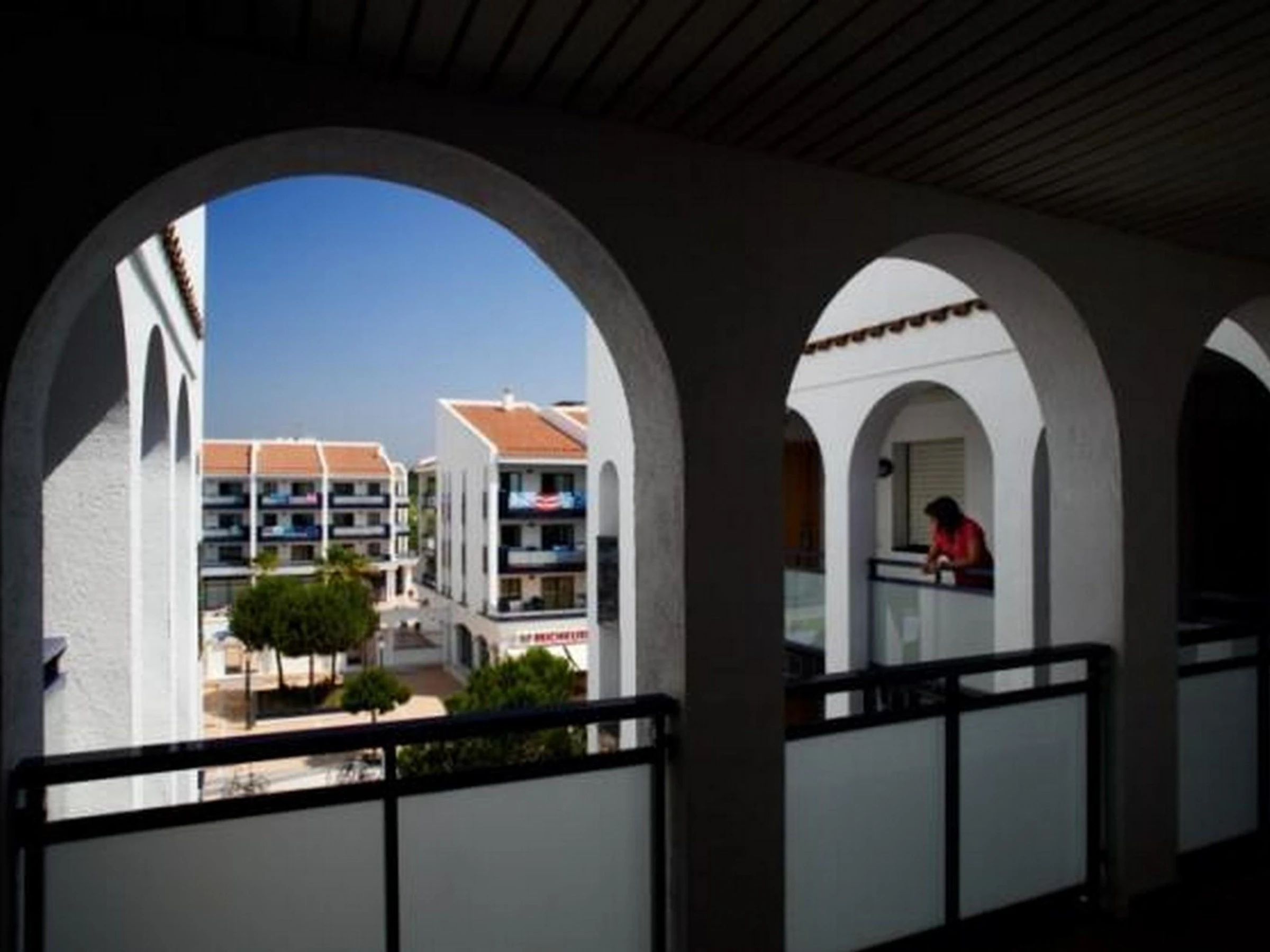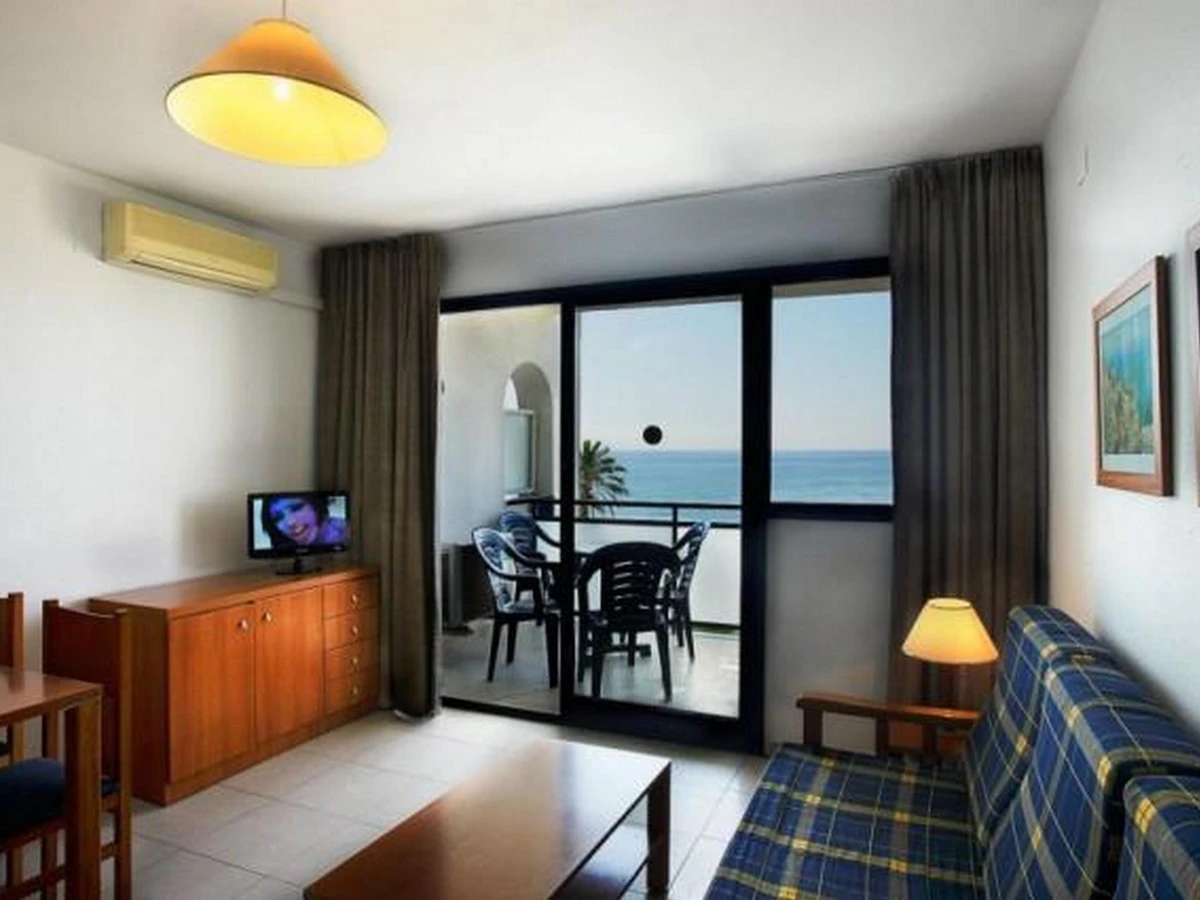 Residencial compuesto por varios edificios. Tiene: Salón-comedor con sofá-cama (2 camas individuales), 1 dormitorio doble con 2 camas individuales, rincón cocina abierta con microondas, baño y terraza.