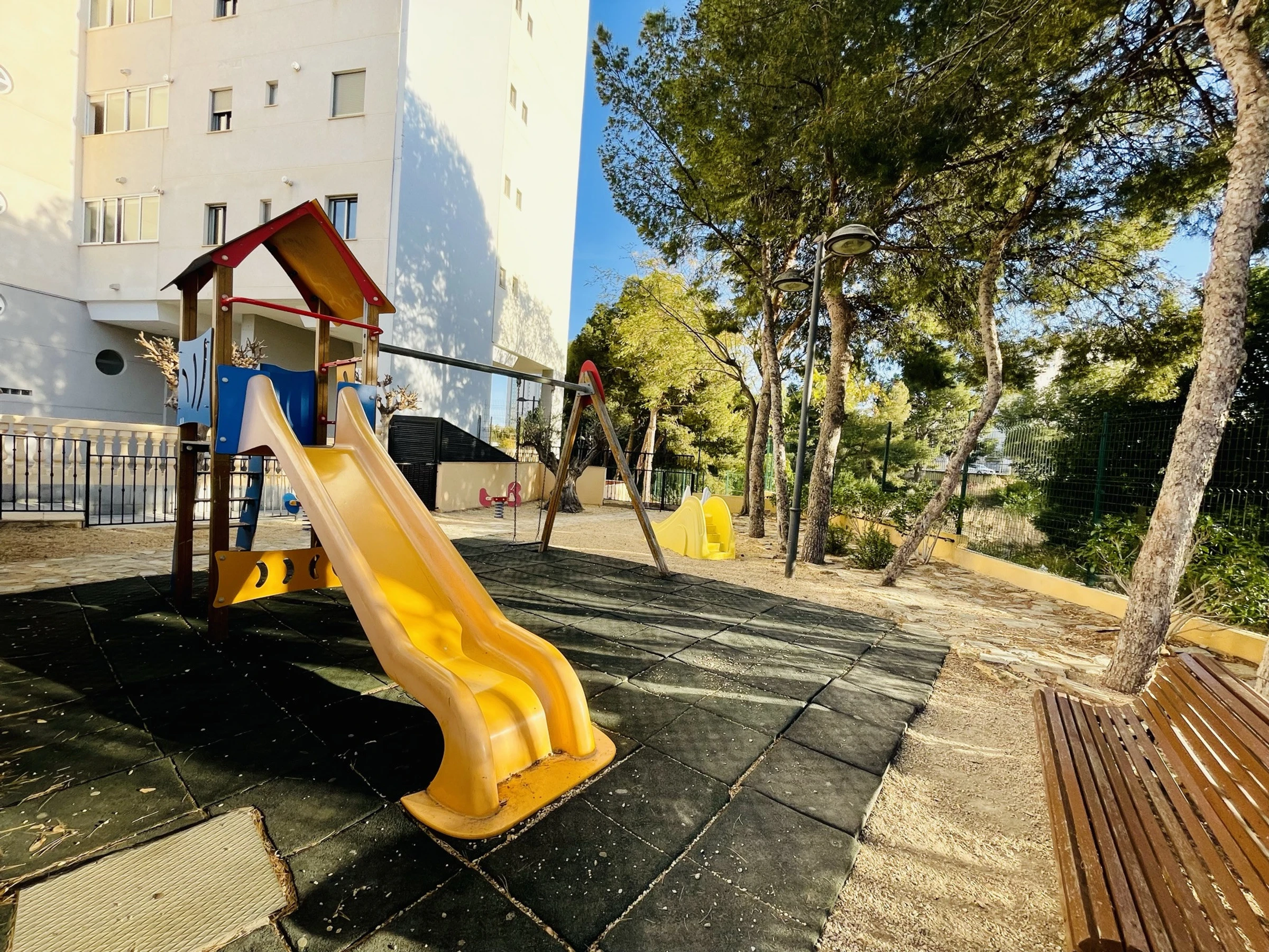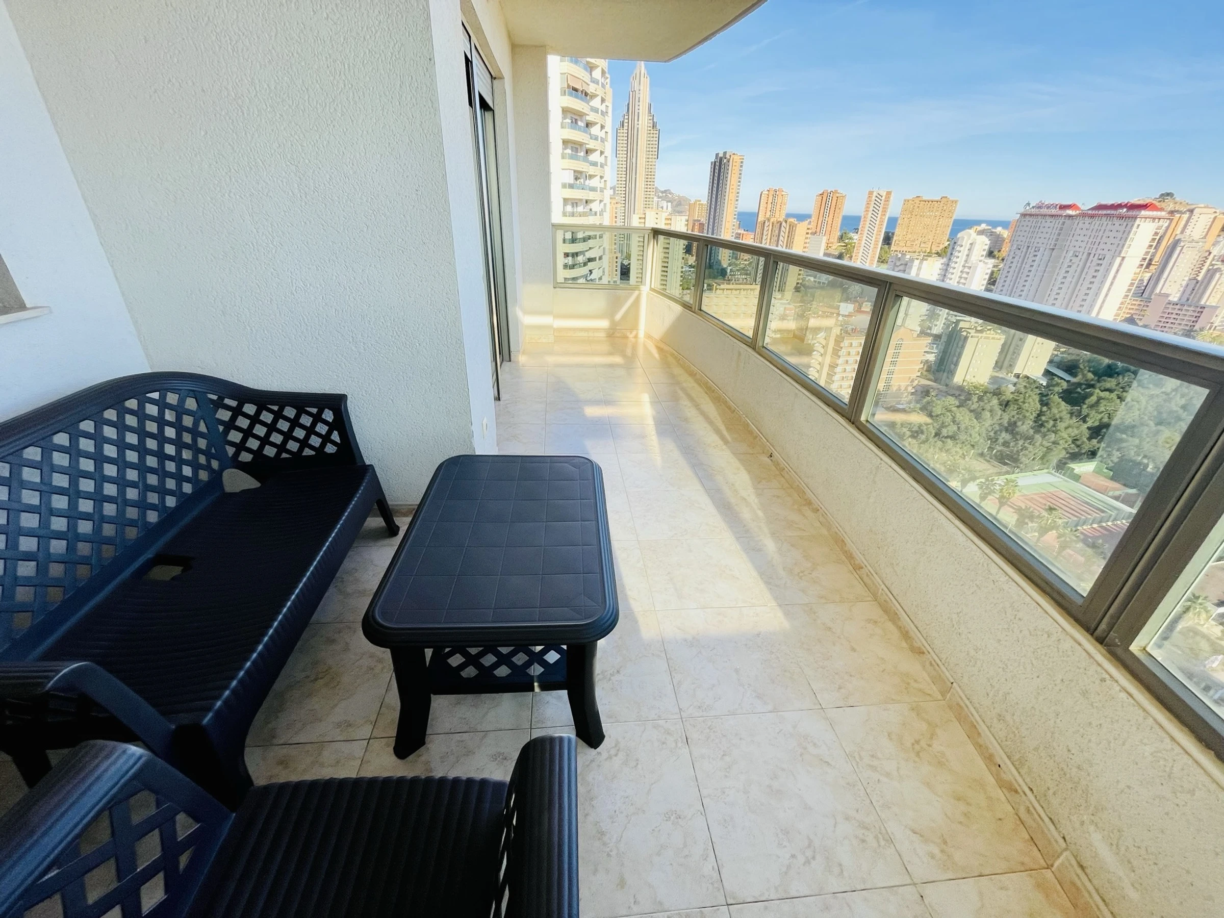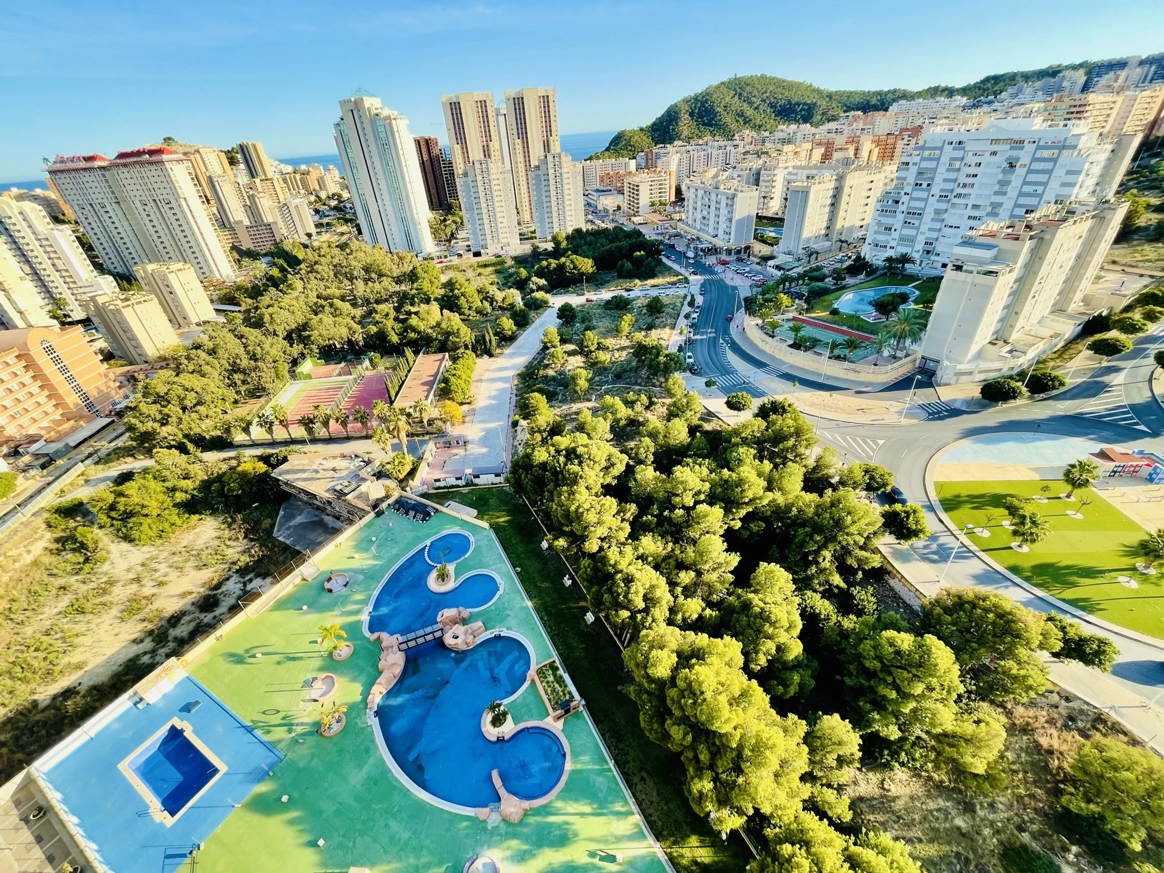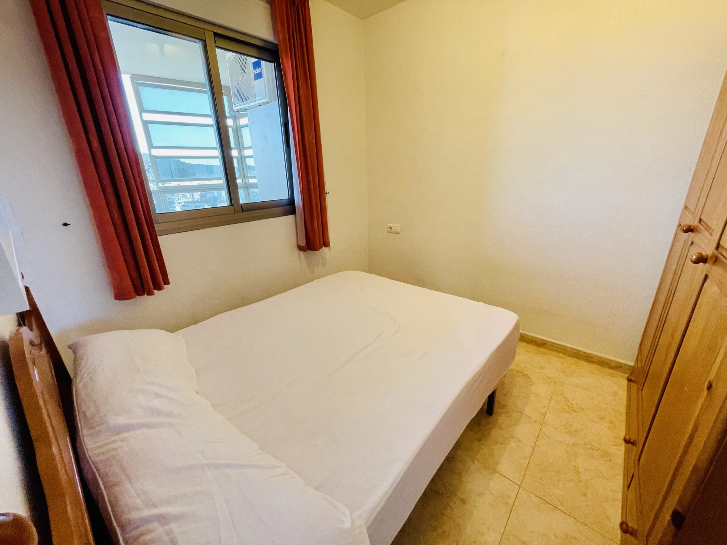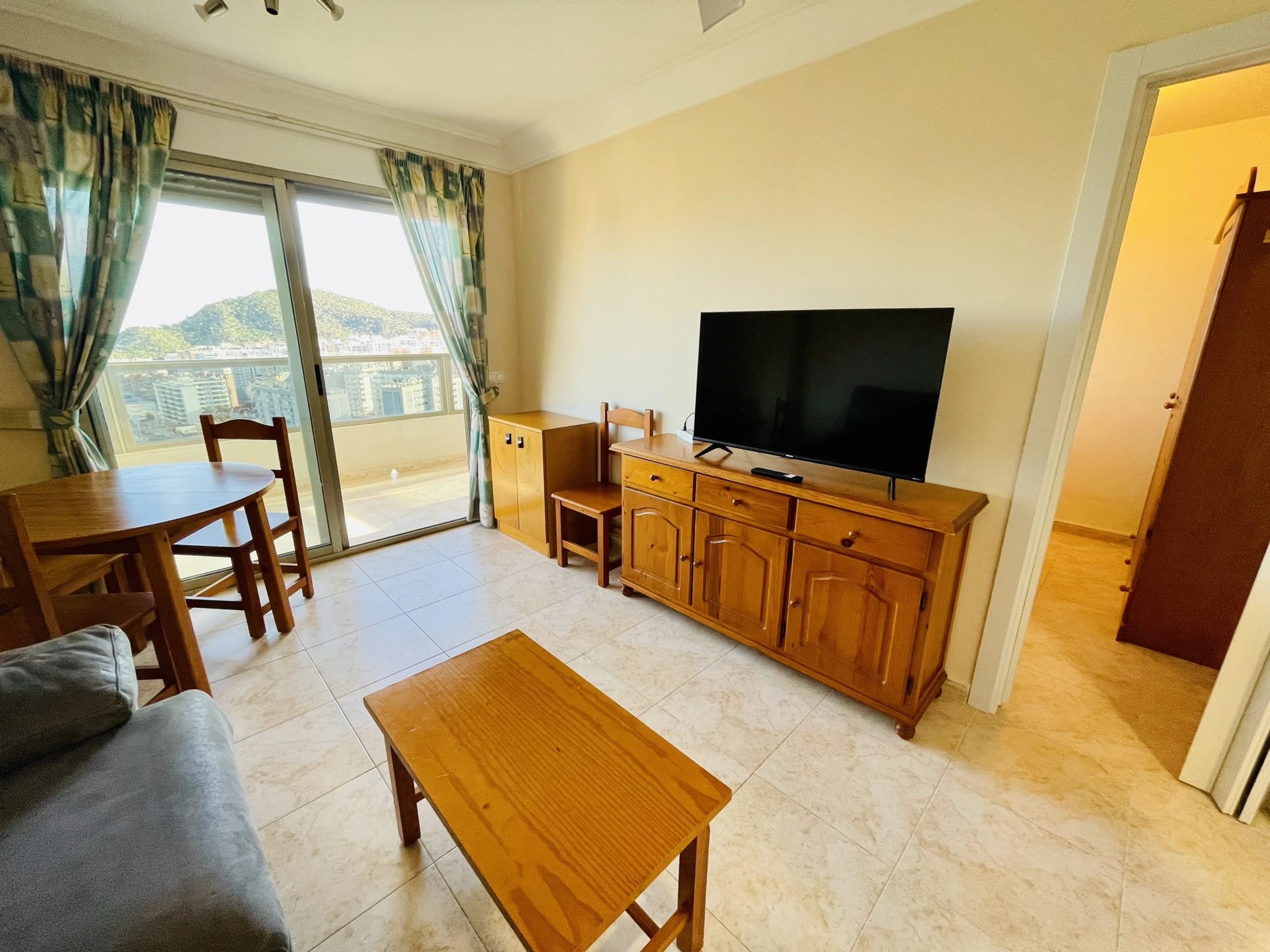 Coqueto apartamento con terraza en el edificio La Cala, en la Cala de Villajoyosa, Benidorm. Situado en la planta 18, cuenta con 57 m² y capacidad para 4 personas. Dispone de un dormitorio con cama de matrimonio y un cómodo sofá cama doble en el salón. Baño equipado con bañera. Cocina americana completamente equipada con vitrocerámica, lavadora, nevera, congelador, microondas, hervidor de agua, exprimidor, cafetera, tostadora, vajilla y utensilios de cocina. Además, plancha, TV, WIFI, detector de humos y un ventilador. Aire acondicionado en el salón y calefacción con bomba de calor para tu confort en cualquier época del año. Plaza de garaje privada en el mismo edificio incluida en el precio. Se admiten mascotas de hasta 20 kg. El edificio cuenta con zona infantil y piscina comunitaria + infantil. A solo 950 metros de la playa Cala de Finestrat, 50 metros del supermercado y con parada de autobús justo en la puerta.