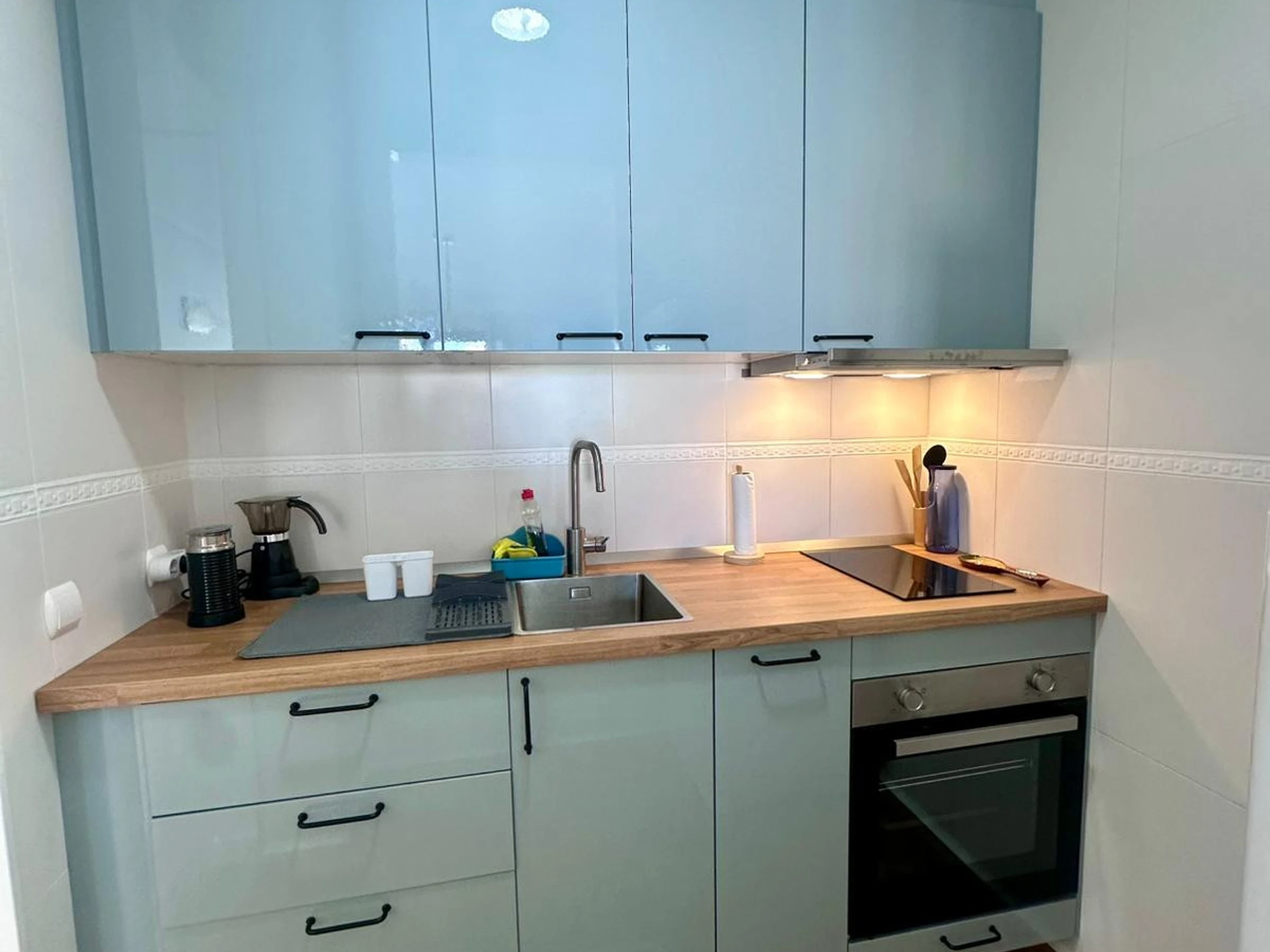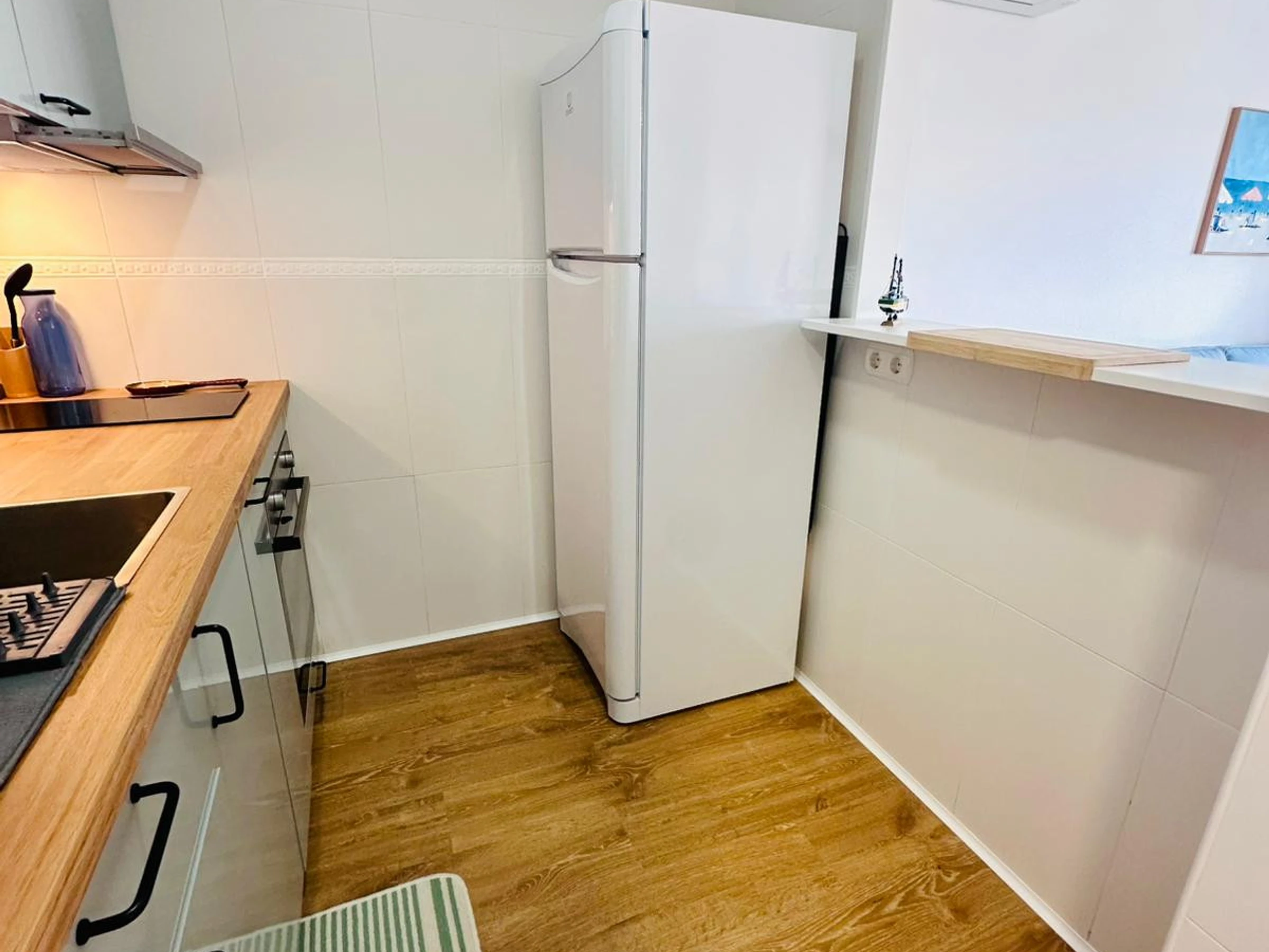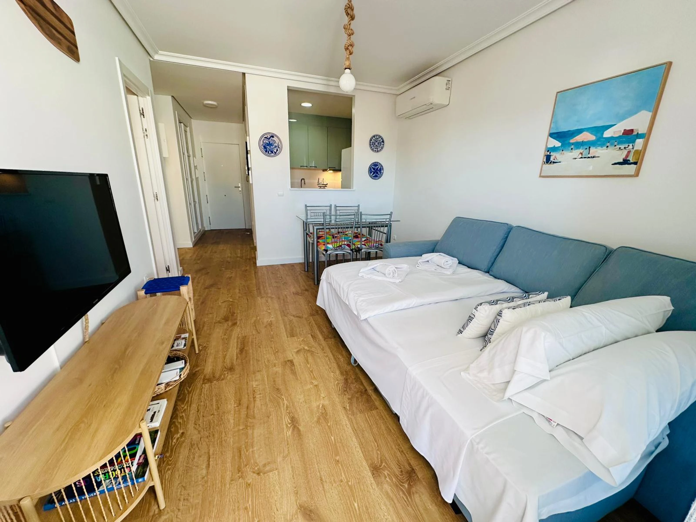 La cocina americana, equipada con vitrocerámica, ofrece todo lo necesario: nevera, horno, microondas, congelador, cafetera, tostadora, hervidor de agua, exprimidor y completo menaje de cocina. También cuenta con lavadora, plancha, secador de pelo y televisión.