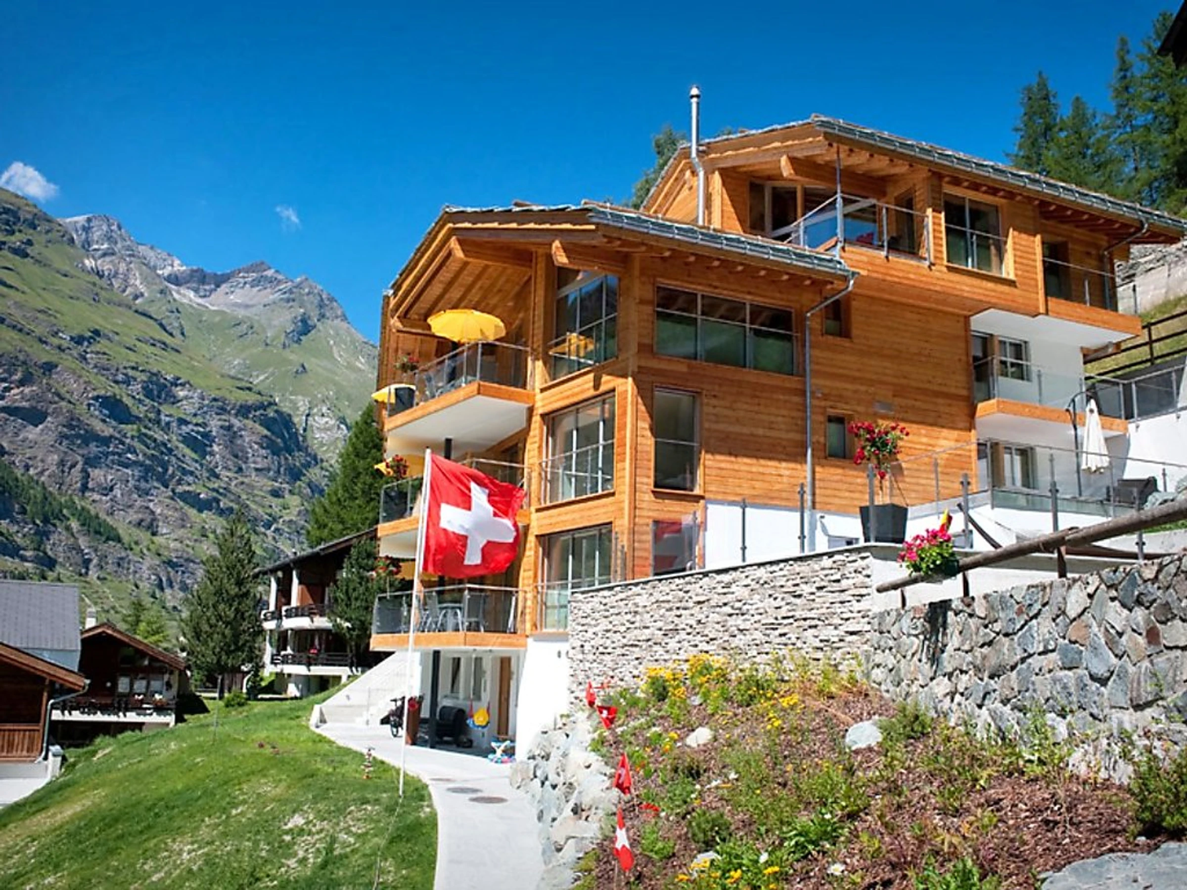 Chalet, amplio, confortable, lujoso "Nepomuk" del año 2009. Equipamiento de la vivienda: whirlpool, masaje, servicio de guardería, sala guardaesquís, sauna (comunitario), lavadora (comunitario, extra), secadora (comunitario, extra). Sendero en pendiente 200 m. Situación: en la periferia, en el barrio de Winkelmatten, lugar tranquilo, elevado, soleado. Vista desde la vivienda a las montañas. Infraestructura y distancias: tienda de comestibles 400 m, supermercado 700 m, restaurante 400 m, parque infantil 400 m, teleférico 600 m, tren de montaña 600 m, parada de autobús 150 m.