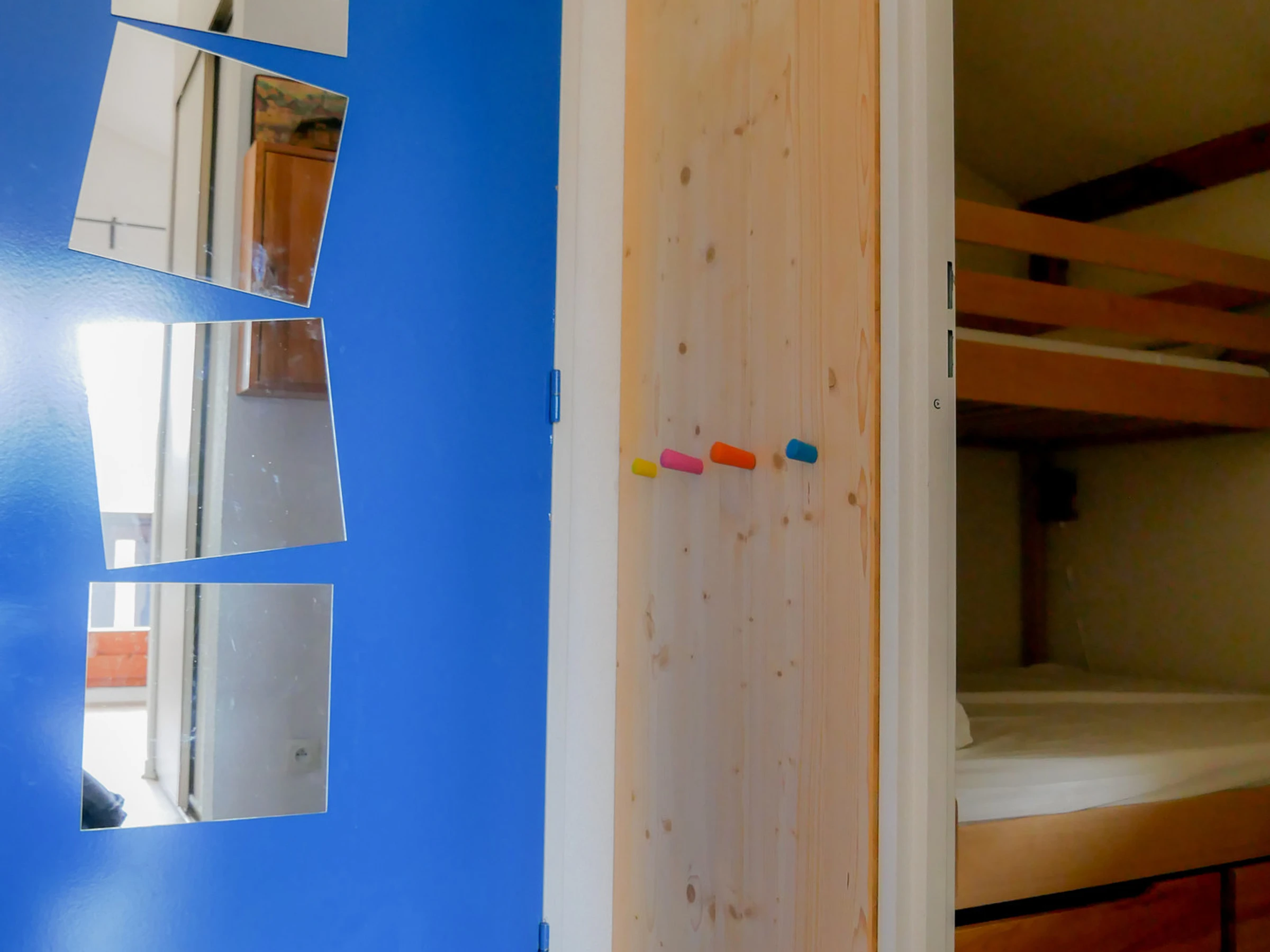 Studio de 28 m², situé au 2ème étage comprenant une entrée, une cabine avec un lit superposé double (140x190) et simple (90x190), une salle de bains avec baignoire et lavabo, des toilettes indépendantes, un séjour avec un canapé convertible 2 personnes (130x190), une cuisine équipée.