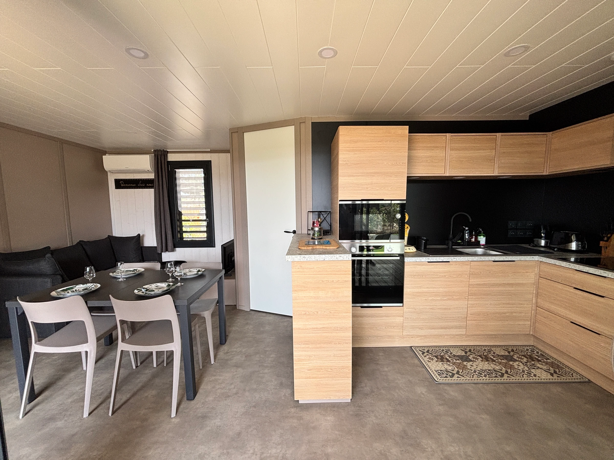 1 Cuisine aménagée et équipée lave-vaisselle, four, plaque vitrocéramique, frigo-congélateur, cafetière SENSEO, micro-ondes, bouilloire, grille-pain.