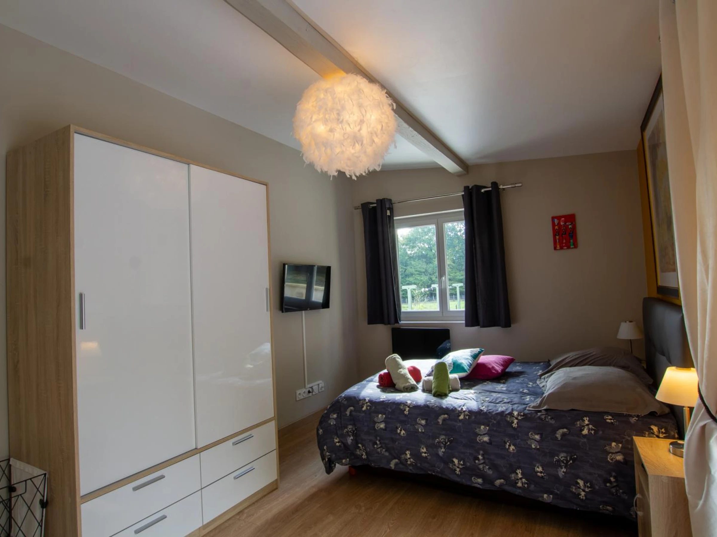 L'heure de la retraite a sonné et j'ai enfin pu réaliser mon projet de restauration de cette petite masure lumineuse et spacieuse à "l'Orée du bois dormant" devenue aujourd'hui un grand gite confortable, aménagé et décoré avec soin afin de vous y accueillir pour vos vacances ou week-end en toute quiétude. Bois et prairies vous permettront d'y observer des lamas, quelques moutons et avec un peu de chance, au petit matin ou au coucher du soleil, vous pourrez apercevoir les daims qui se rapprochent pour se désaltérer. Et, à quelques pas, vous pourrez vous procurer des légumes bio et des œufs frais et profiter d'une petite balade pour dénicher des champignons. Venez profiter de l'air frais de la campagne pour des vacances reposantes en famille ou entre amis.