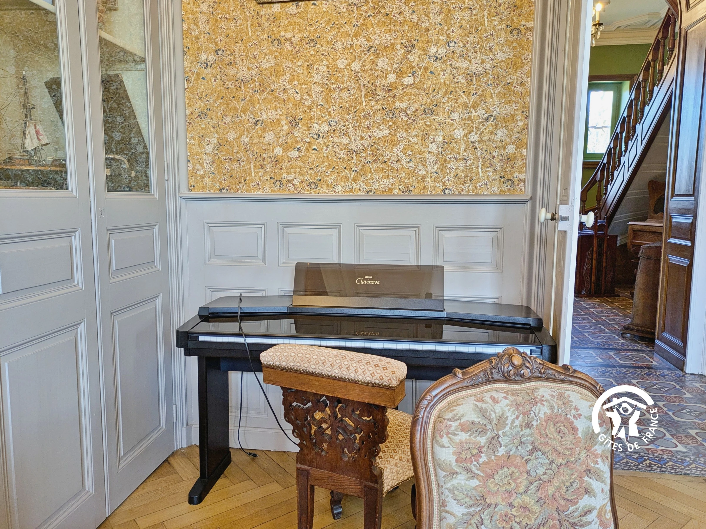 En rez-de-chaussée, profitez des vastes pièces de vie : une cuisine équipée, une grande salle à manger et un superbe salon de 62m² où un piano numérique Yamaha (petite touche de modernité !) est à votre disposition.