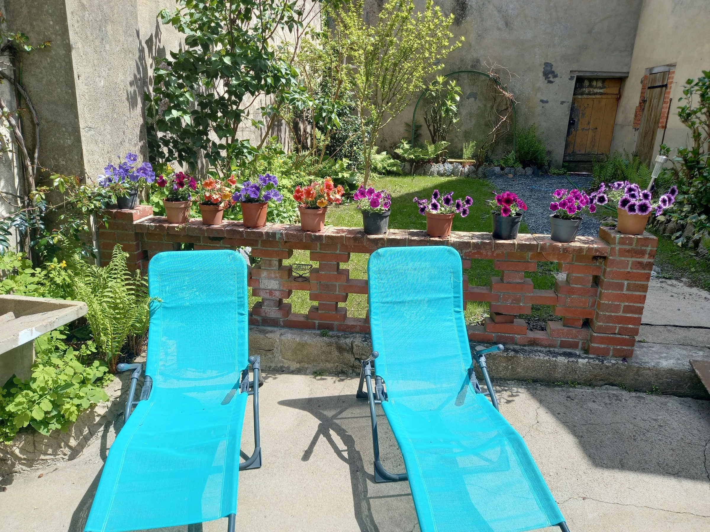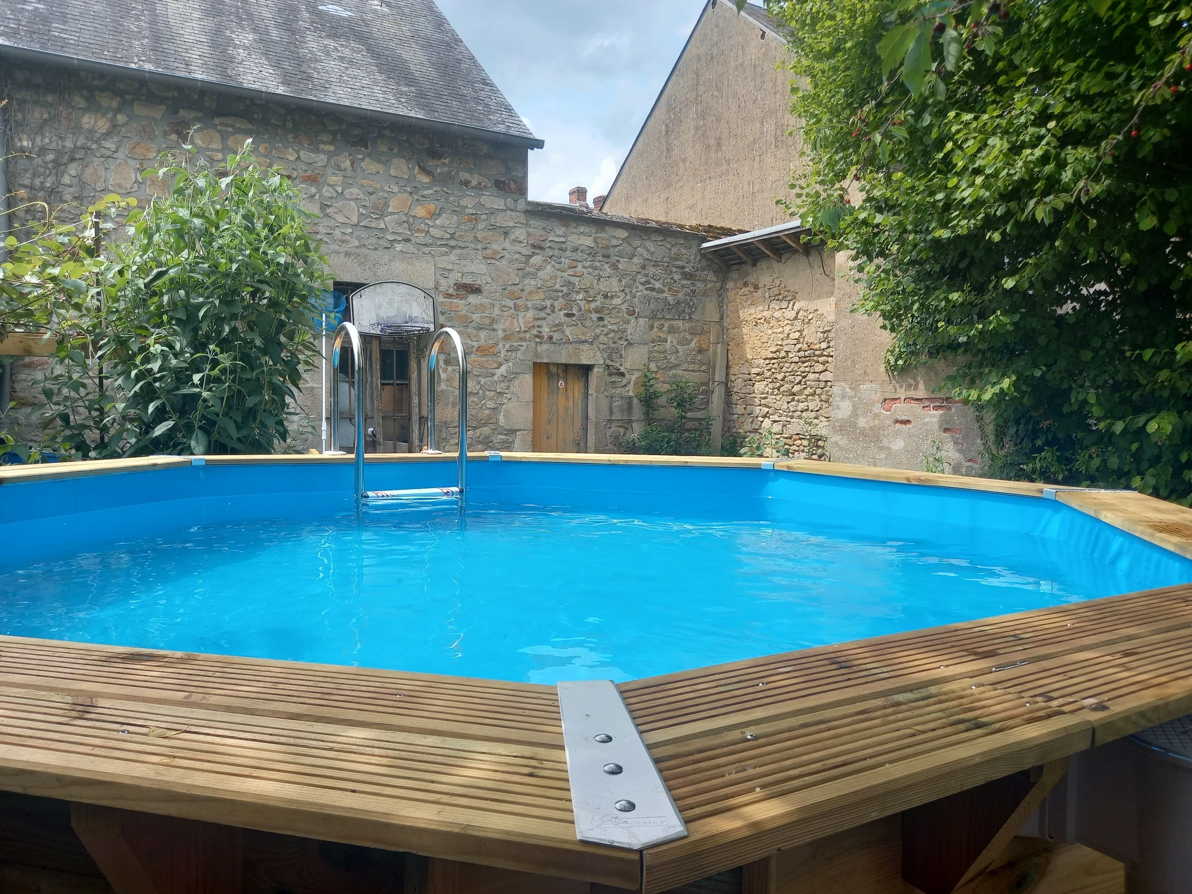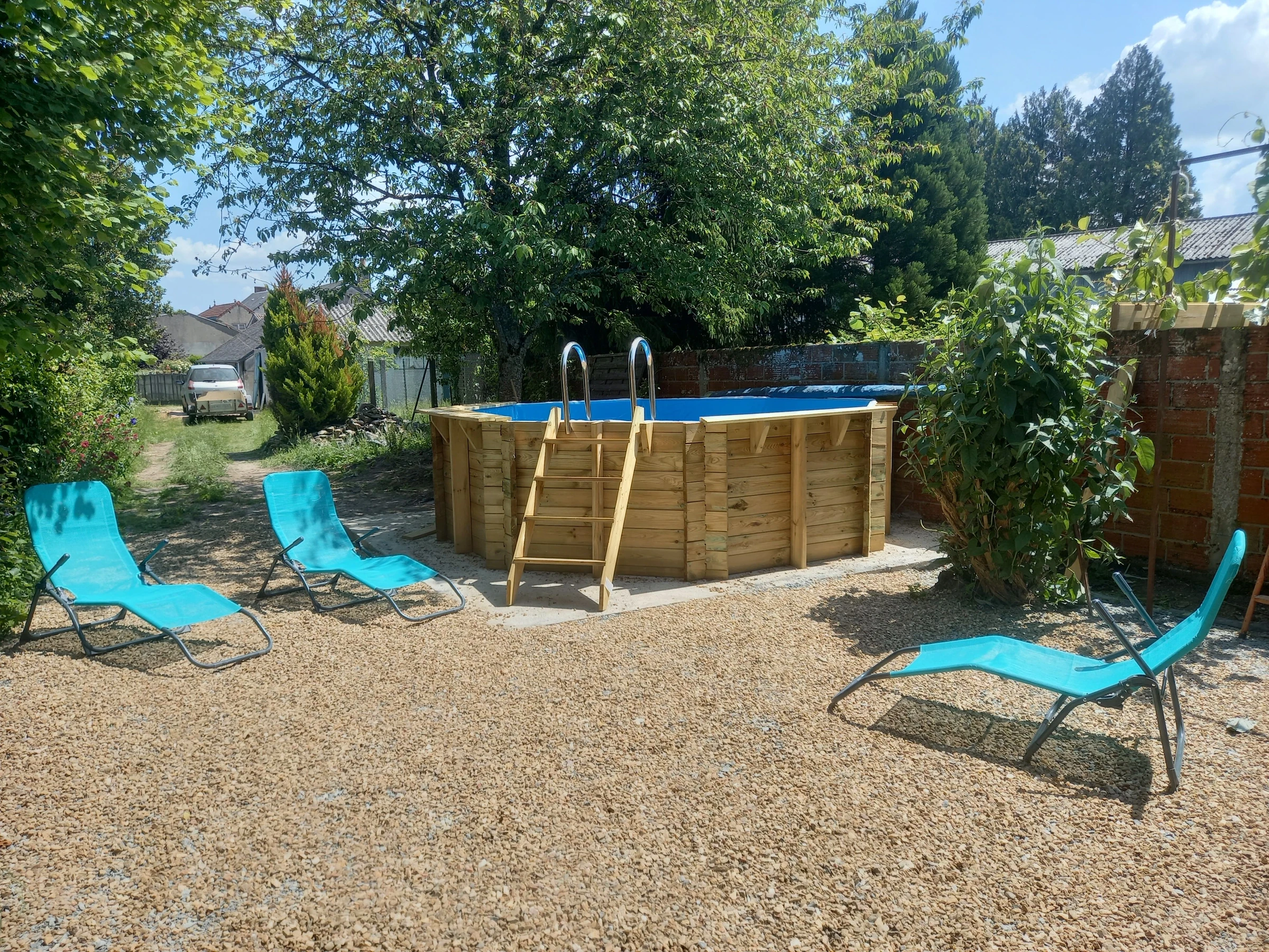 A l'extérieur : une cour privative et accès à un jardin de 500 m² clos avec une piscine hors-sol non chauffée. Parking public devant le gîte.