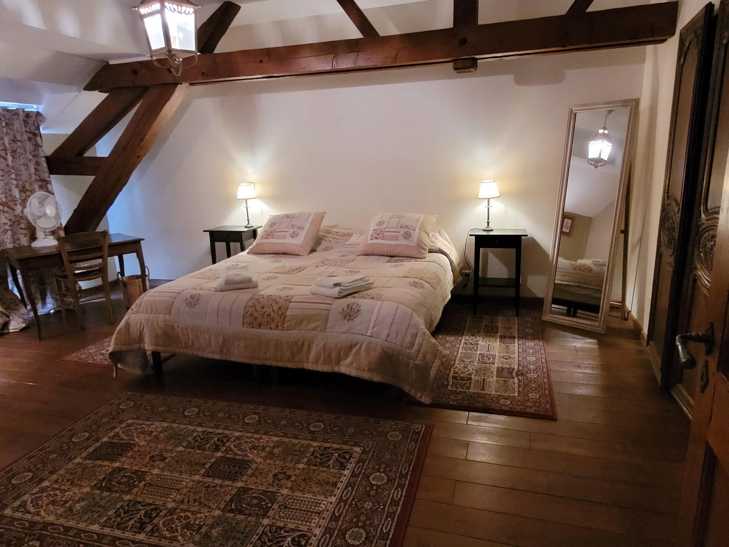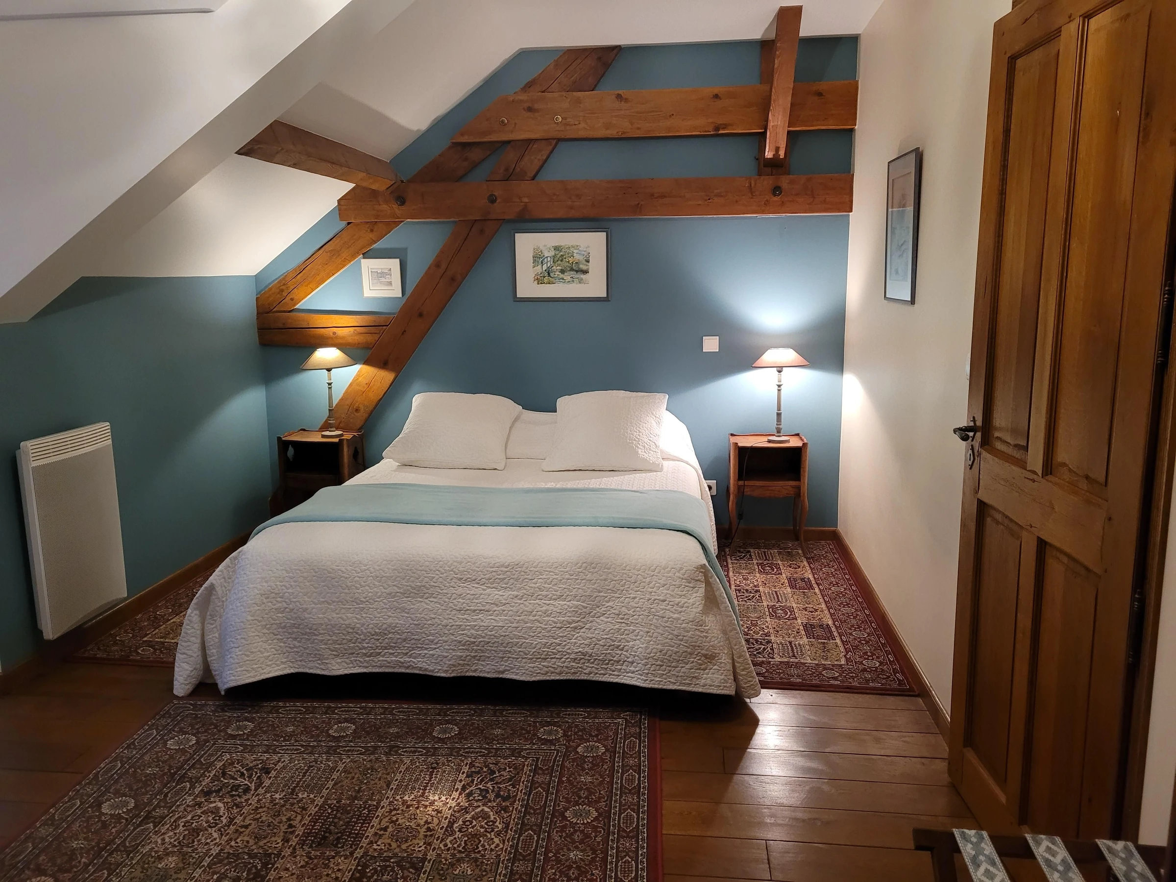 Etage : 5 belles chambres offrant des lits grande largeur (1 lit 160x200, 5 lits 90x200 et 6 lits 80x200 jumelables par 2) avec chacune sa salle de bains et WC privatifs (3 douches et 2 baignoires). 2 lits d'appoint.